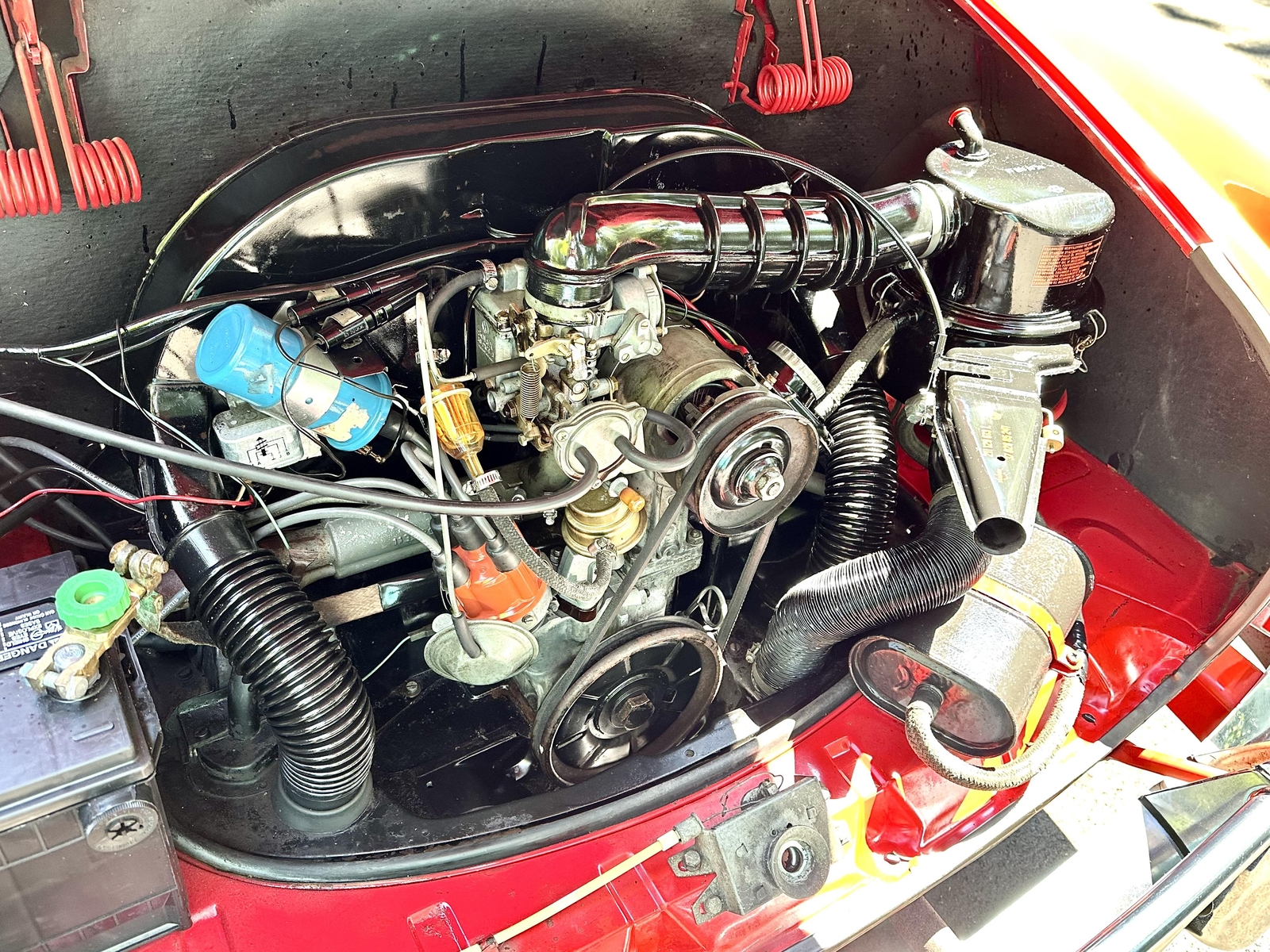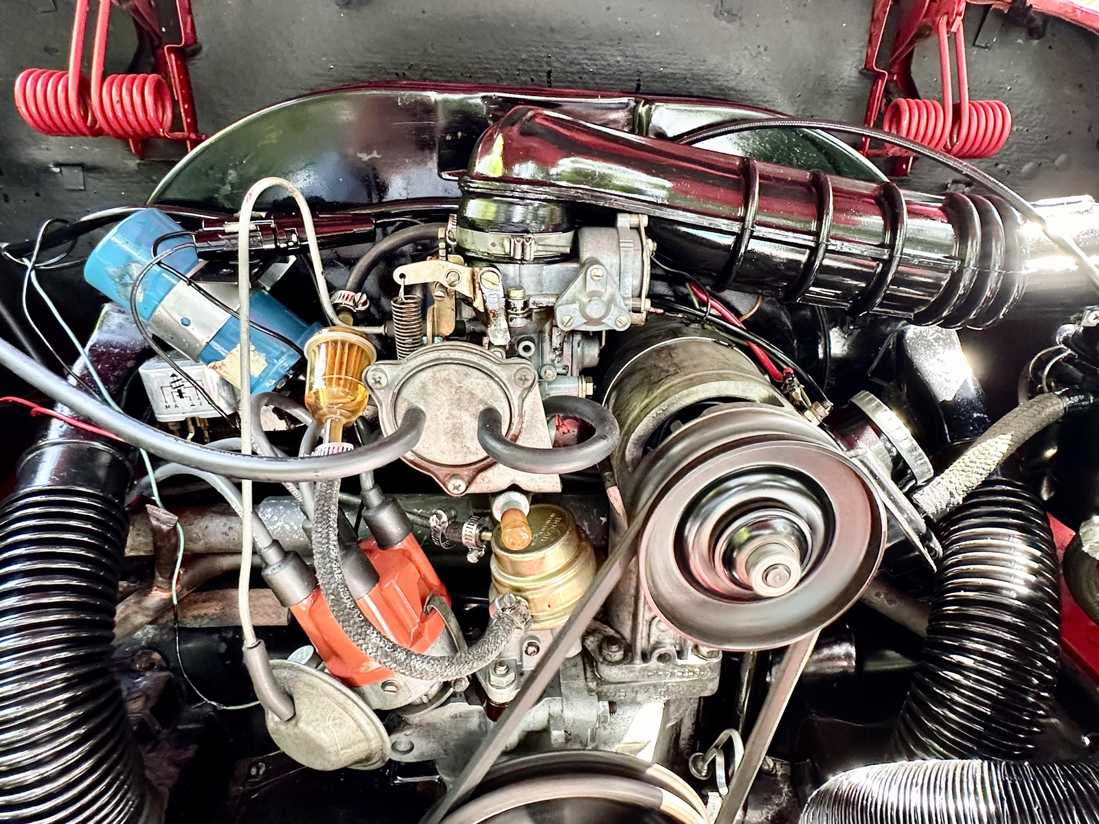 In conclusion, this 1970 Karmann Ghia Coupe embodies both charm and reliability, steeped in a rich history of meticulous ownership and careful maintenance. From its origins in California to its adventures abroad in Italy, this car has been lovingly preserved and thoughtfully enjoyed. With a beautifully maintained exterior showcasing its Italian repaint and minimal blemishes, to an interior that retains its originality and comfort, every detail speaks to its quality. Under the hood, its engine bay reveals a commitment to OEM parts and smooth performance, complemented by a solid suspension and confident driving dynamics. Whether cruising the streets or navigating highways, this Ghia offers a driving experience that's as exhilarating as it is reliable—an iconic classic ready to delight its next fortunate owner.