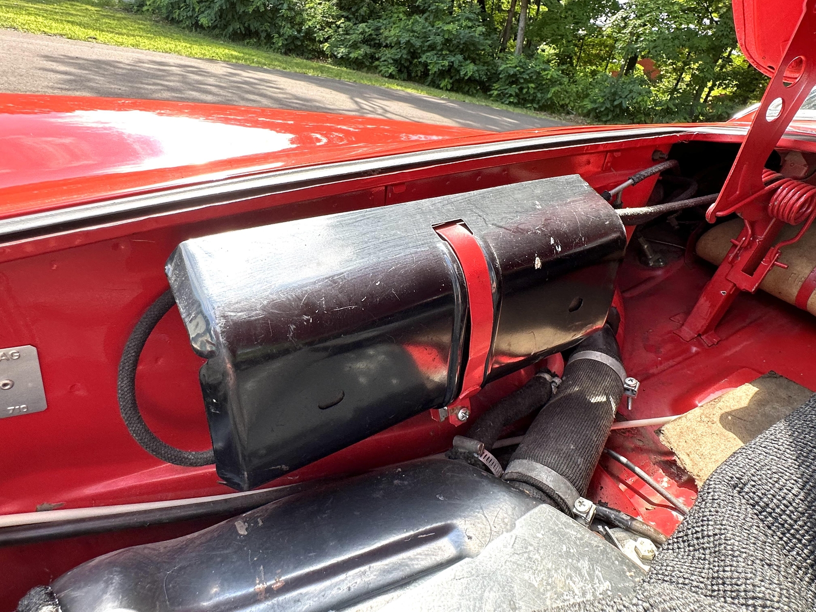 Under the hood, the engine bay displays abundant originality with OEM parts throughout. The engine runs beautifully, maintaining a smooth idle. A new battery was installed in 2024. The engine appears well-sealed, and there have been no signs of fluid leaks during our ownership.