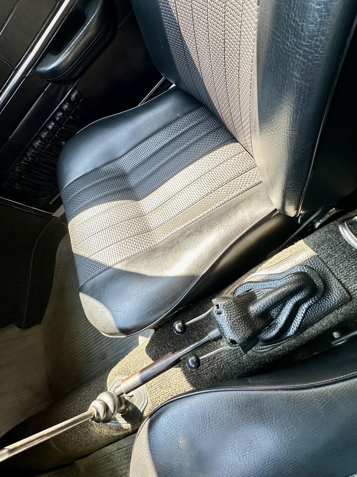 The interior of this car is everything you could hope for. It remains largely original and fully intact, showcasing its authenticity. The dash pad has been recently replaced, and the rear window panel has also been refreshed. While the original radio powers up, it currently does not produce sound. All original gauges and switches are in excellent condition, and the seats and vinyl upholstery appear fantastic and retain their original charm. Despite their age, the original carpets still look well-maintained. The headliner is taut and well-kept. Overall, the interior is in fantastic shape throughout.