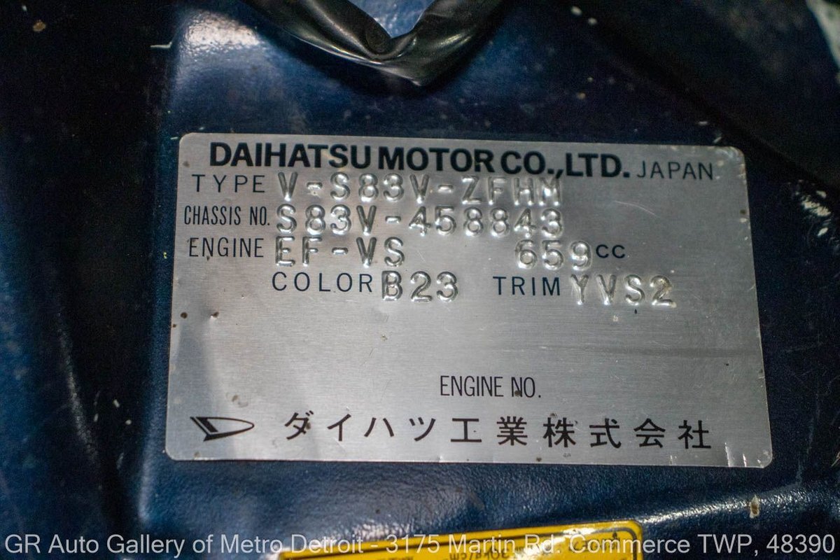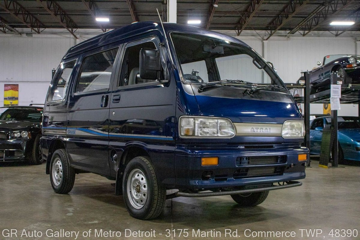 GR Auto Gallery is pleased to present this unique 1994 Daihatsu Atrai Van for your consideration. This camper kei van comes in a vibrant color and is powered by a 660 CC inline 3 cylinder engine producing 61 horsepower, paired with a 5-speed manual transmission. Meticulously maintained and imported from Japan in 2023, this van is ready to hit the road and provide endless adventures. Equipped with fresh oil change, spark plugs, and functional air conditioning, this Daihatsu Atrai is in exceptional condition. The interior features Panasonic speakers, functional AM/FM stereo, aftermarket charger ports, cooler volume, climate control, high and low gears, sliding doors, crank windows, and much more. The engine is accessible under the front seats, allowing for easy maintenance and access. Drive this unique Kei truck out of our showroom or have us assist with shipping it to you anywhere in the United States! Don't hesitate to call us with any questions or for more information.
