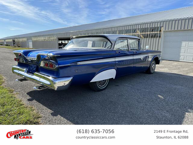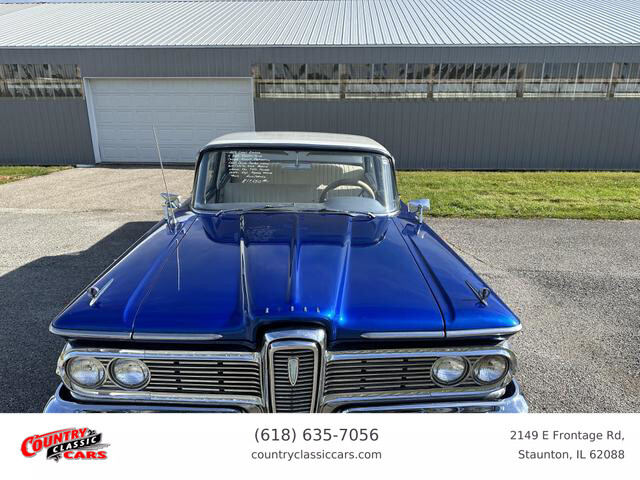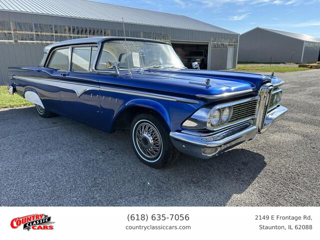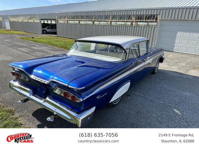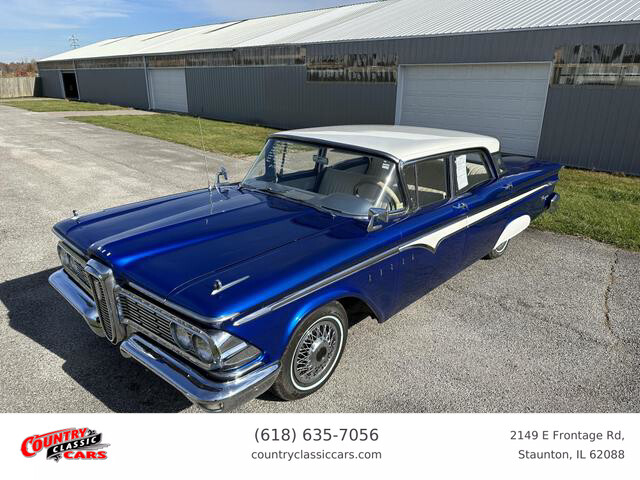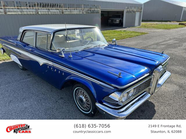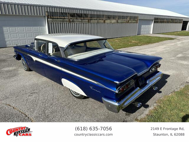 1959 Edsel Ranger 4dr sedan, nice cruiser, recent restoration, great color combo, indigo blue/ white, nice redone interior, new tires, cruiser skirts, 6cyl 3 speed manual trans, runs and drives