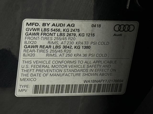Power Door Locks, Air Conditioning, Dual Air Bags, Panoramic Sun Roof, Collision Warning, Electromechanical Power Steering, Heated Seats, Cruise Control, Air Conditioning, Rear, AWD, Side Air Bags, Bang & Olufsen Sound, Daytime Running Lights, AM/FM/HD Stereo, Parking System Plus, Dual Power Seats, F&R Parking Sensors, Hill Descent Control, Tilt & Telescoping Wheel, F&R Head Curtain Air Bags, Alarm System, LED Headlamps, Power Tailgate Release, Traction Control, Blind-Spot Alert, Convenience Pkg, Rollover Mitigation, Keyless Entry, CD/MP3 (Single Disc), SiriusXM Satellite, Electronic Stability Control, Fog Lights, Backup Camera, Power Windows, Alloy Wheels, Automatic, 7-Spd S tronic Dual-Clutch, Navigation System, Push Button Start, Leather, ABS (4-Wheel), 4-Cyl, Turbo, 2.0 Liter, Bluetooth Wireless, Audi connect, Navigation System
