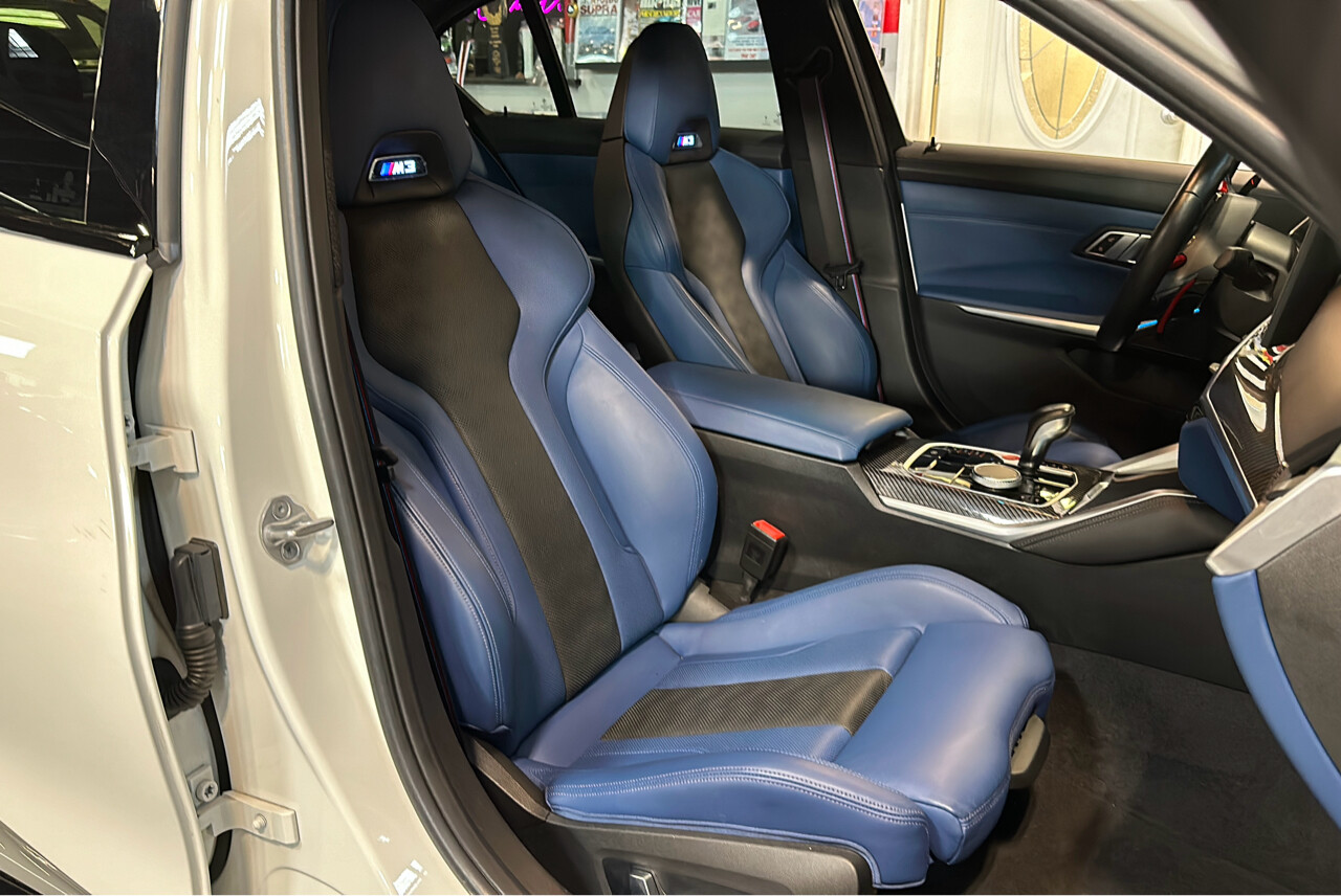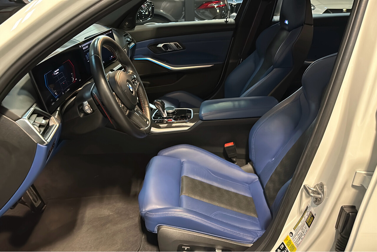 Call : 718-825-4678For Sale is this beautiful 2023 BMW M3 Competition Alpine White on Fjord Blue Parking Assistance Package M Shadowline LightsExecutive Package Carbon Fiber Trim Led Headlights W/Laserlights13K Miles, Clean Title & Carfax!Runs and Drives GREAT! Financing is Available - Trade-Ins Accepted! Call : 718-825-4678 PLEASE BE SURE TO VISIT OUR LOCATION @ 161 Marion St Staten Island NY 10310 or call for an appointment 718-825-4678