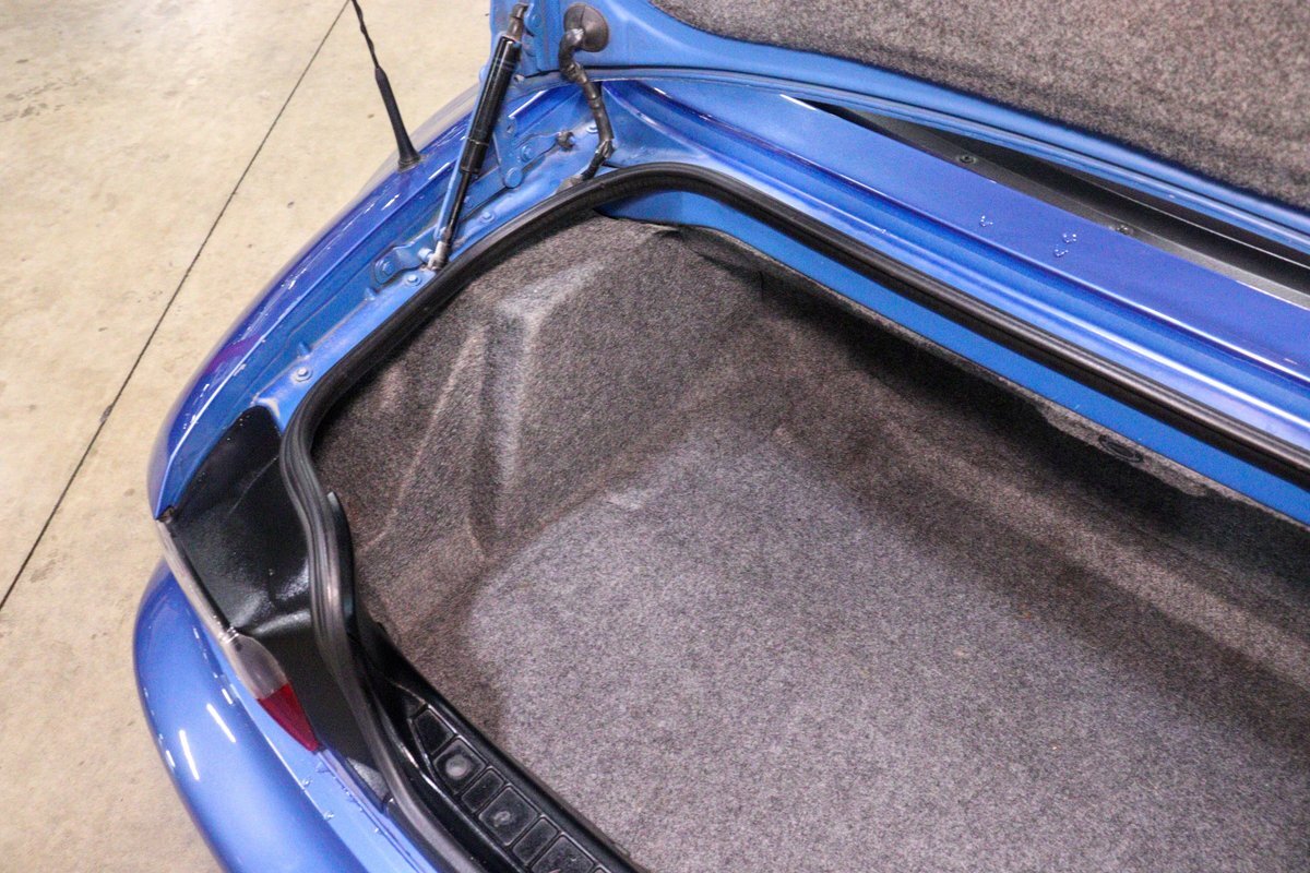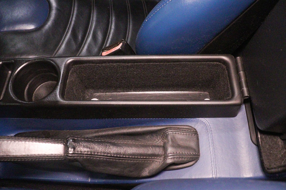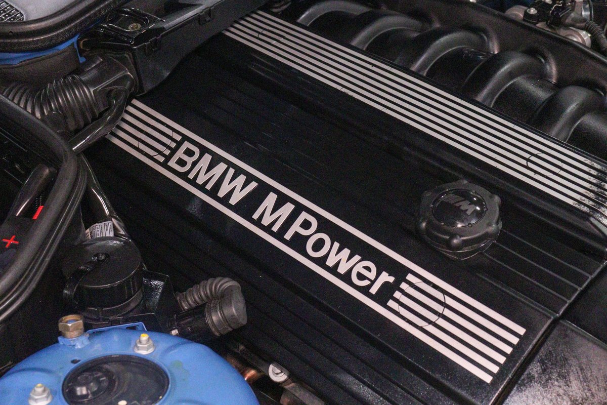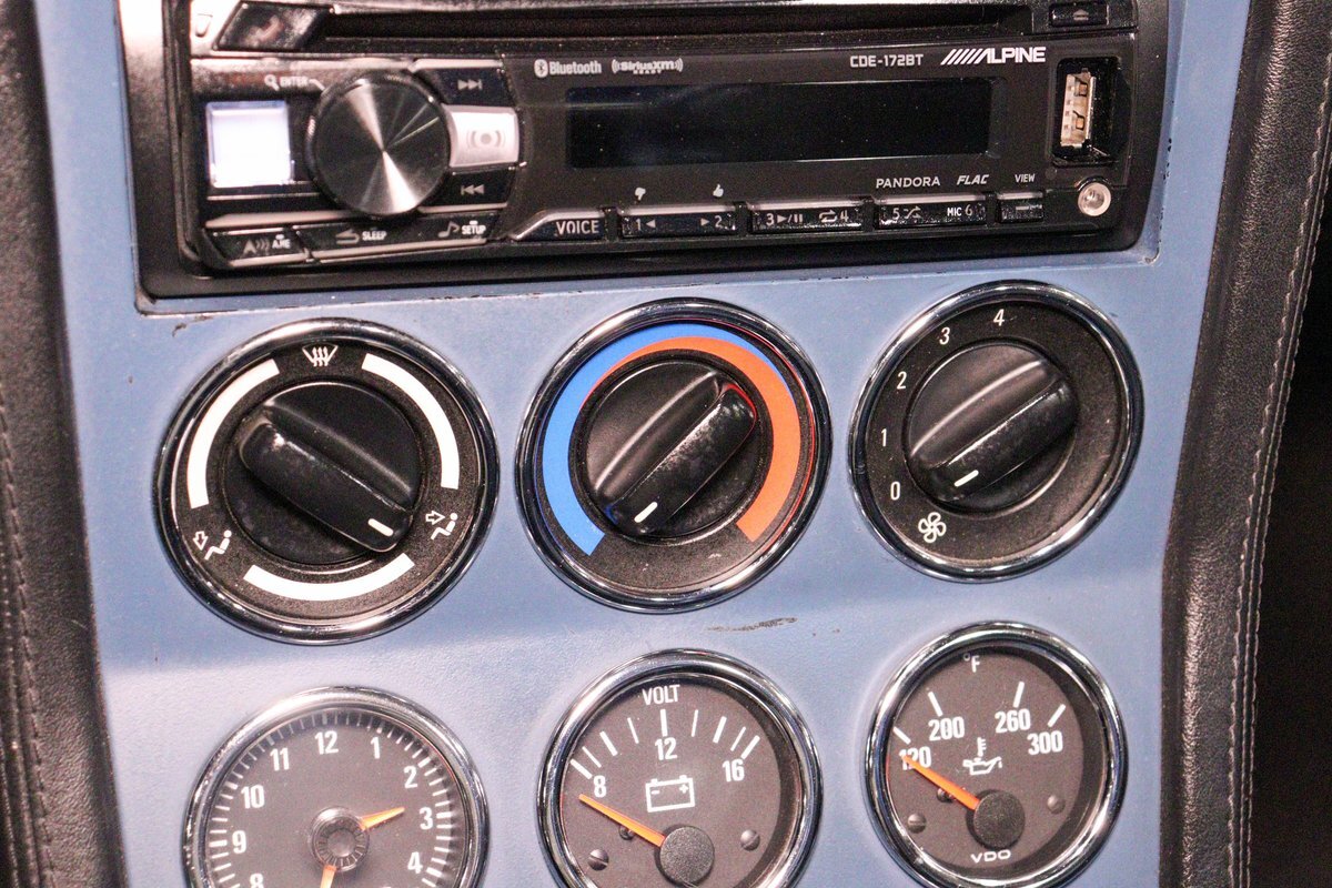 Inside, the M Roadster features a unique blue/black two-tone leather interior that perfectly complements the exterior paint. The heated seats add a touch of comfort for those cooler drives, while the power soft top allows for effortless open-air motoring. The cabin is further enhanced by the aftermarket Alpine single DIN radio with AM/FM and Bluetooth compatibility, ensuring you stay connected and entertained on the go.