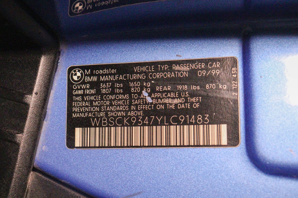 The exterior design is highlighted by the striking 17-inch 5-spoke M-Sport wheels, adding to the car's athletic appearance. The BMW M Roadster, introduced in 1997, was designed to combine the compact dimensions and open-air pleasure of the Z3 with the performance pedigree of BMW's M division. The 2000 model continues this tradition with its robust S52 engine and refined mechanicals. Known for its aggressive styling and superior performance, the M Roadster has become a beloved model among BMW enthusiasts. Its distinctive design, characterized by wider rear fenders, unique front and rear bumpers, and quad exhaust tips, sets it apart from the standard Z3.