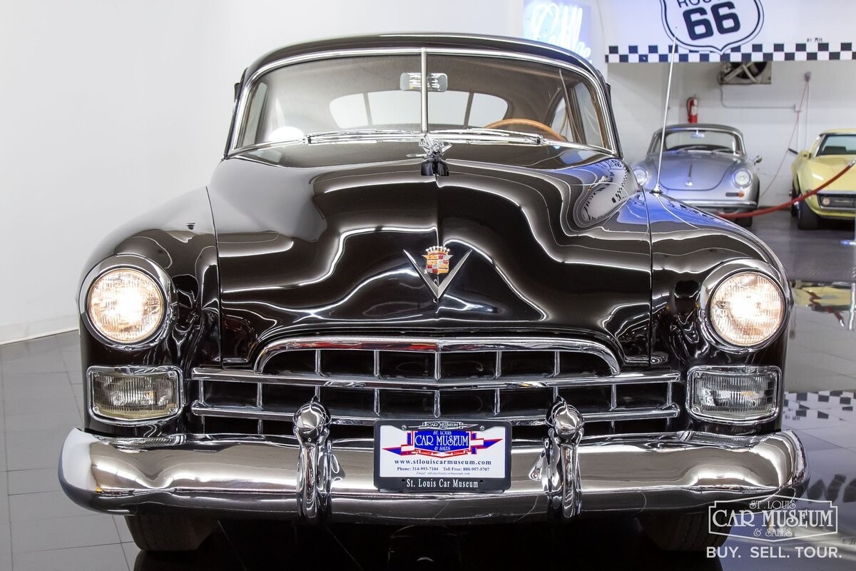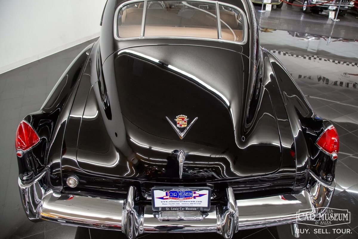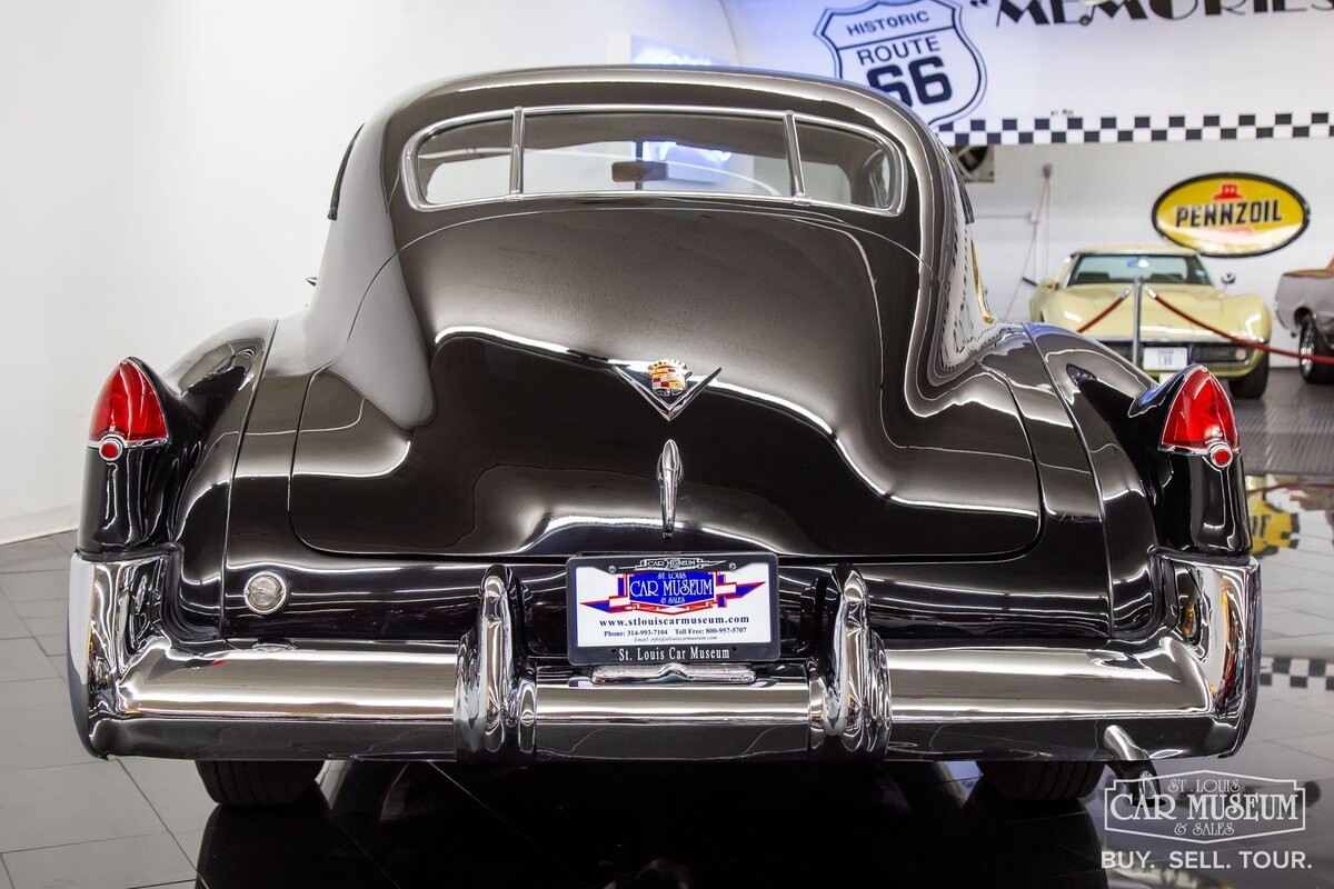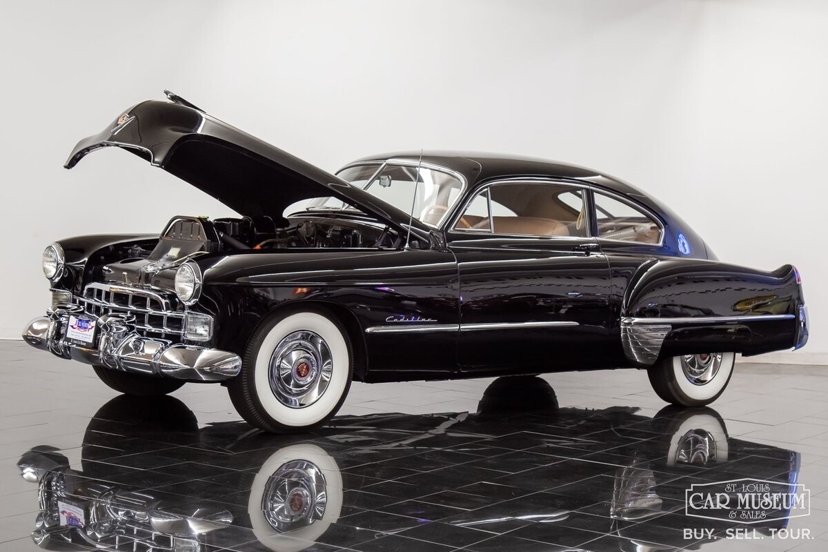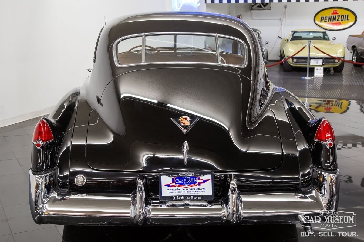 We are delighted to offer this beautifully restored 1948 Cadillac Series 61 Club Coupe, also referred to as the Sedanette Fastback by enthusiasts, finished in gorgeous high gloss Black over Tan dual cord broadcloth! Still powered by its original, factory issued 346ci V8 producing 150 horsepower and 283 ft lobs of torque through a Hydra-Matic transmission and 3.77:1 rear axle gearing. Features and accessories include working AM pushbutton radio, heater/defrost, working electric dash clock, rear assist handles, courtesy map light, carpeted front floor mats, cigar lighter, day/night Glareproof mirror, windshield washer system, locking glovebox, reverse light, fender skirts, stainless fender guards, full chrome wheel covers, Auburn Deluxe 8.20R15 tubeless radial wide whitewall tires, and engine oil filtration system.