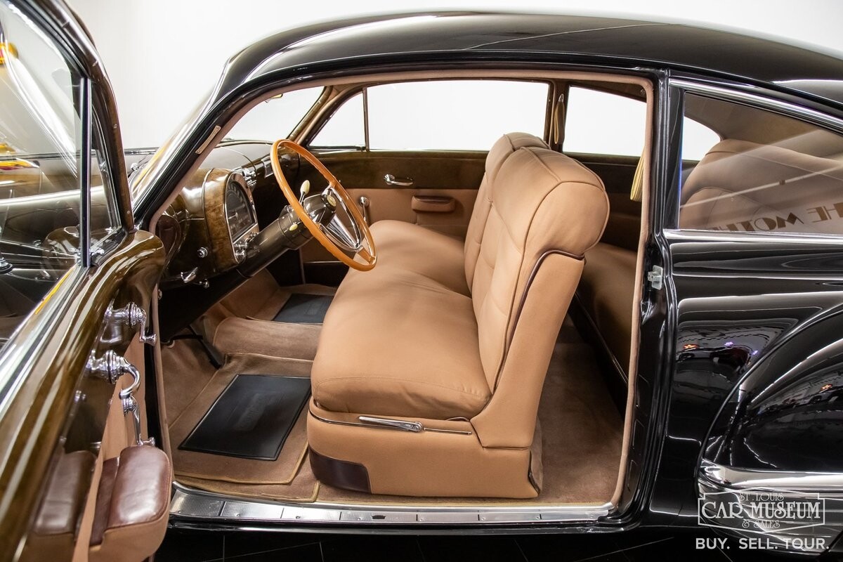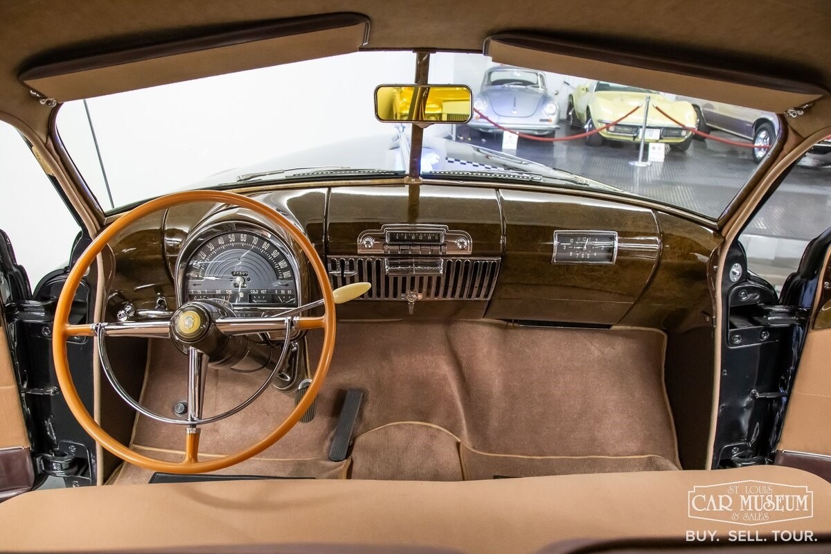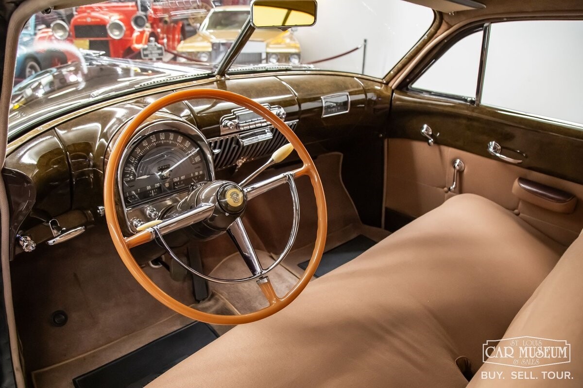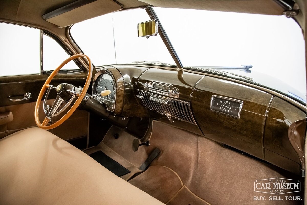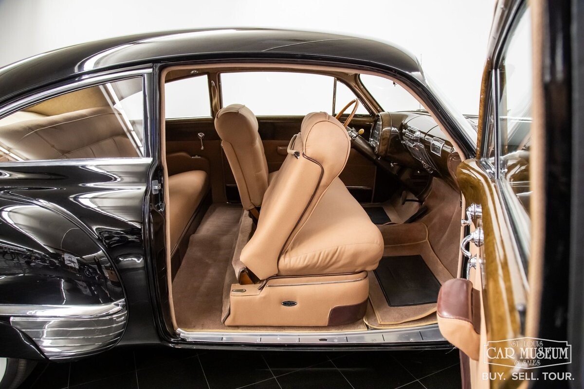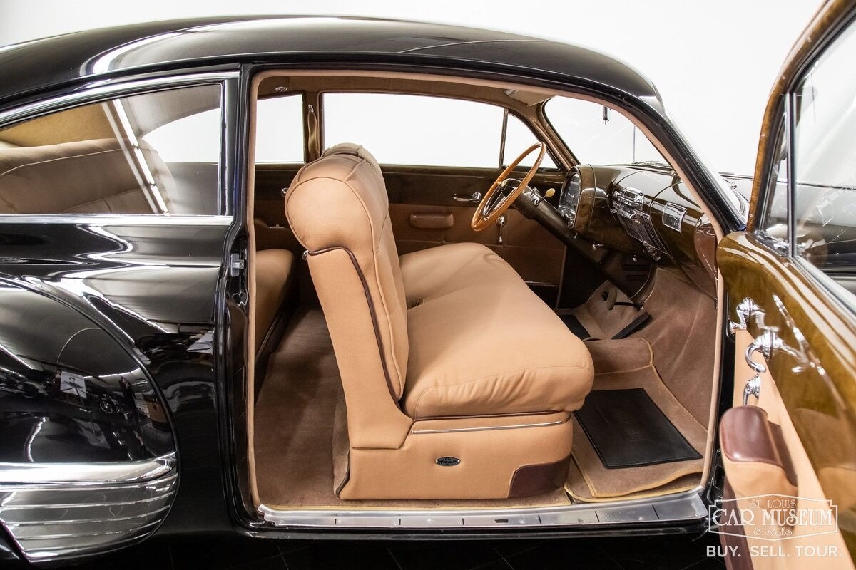 We are delighted to offer this beautifully restored 1948 Cadillac Series 61 Club Coupe, also referred to as the Sedanette Fastback by enthusiasts, finished in gorgeous high gloss Black over Tan dual cord broadcloth! Still powered by its original, factory issued 346ci V8 producing 150 horsepower and 283 ft lobs of torque through a Hydra-Matic transmission and 3.77:1 rear axle gearing. Features and accessories include working AM pushbutton radio, heater/defrost, working electric dash clock, rear assist handles, courtesy map light, carpeted front floor mats, cigar lighter, day/night Glareproof mirror, windshield washer system, locking glovebox, reverse light, fender skirts, stainless fender guards, full chrome wheel covers, Auburn Deluxe 8.20R15 tubeless radial wide whitewall tires, and engine oil filtration system.