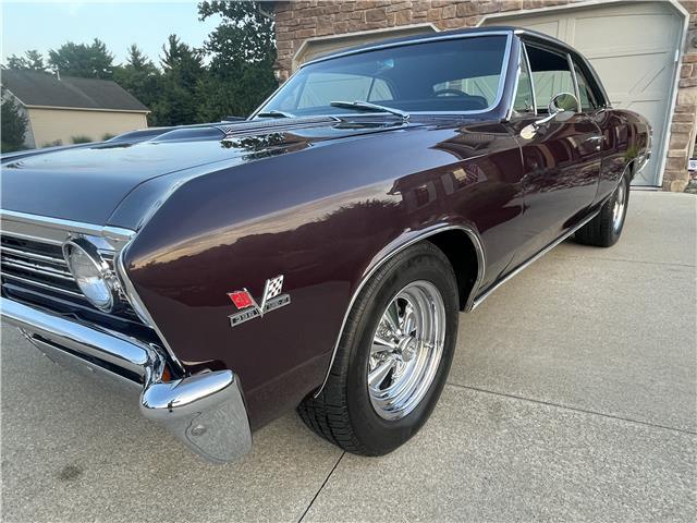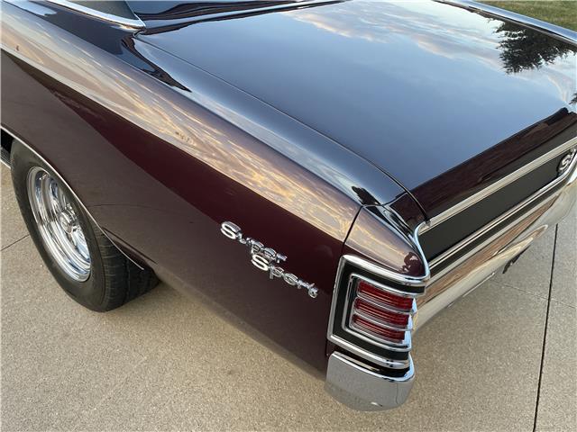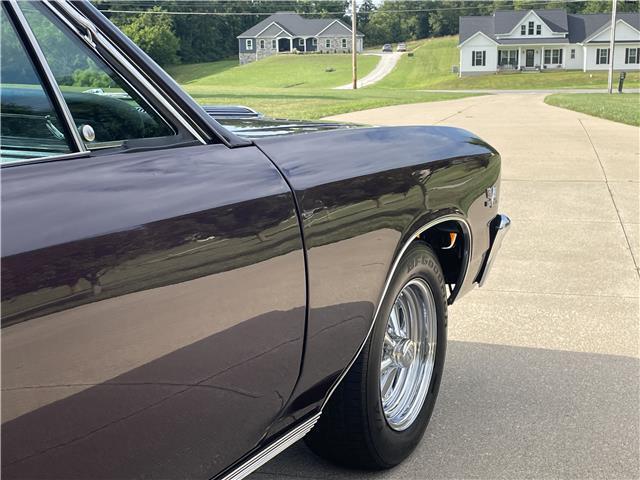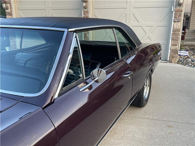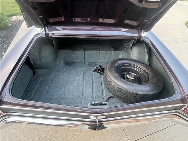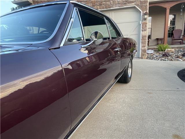 This Kansas built car is in its rare factory color, code M, Royal Plum. It really pops with its mirror-like finish, straight body panels and excellent fit and finish. All of the trim and emblems are like new. Front and rear bumpers are shiny. All weather stripping and window seals have been replaced. It sits on a set of 15X7 Cragar SS wheels with a set of BF Goodrich T/A radial tires, giving it a day two look!