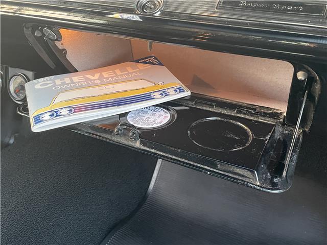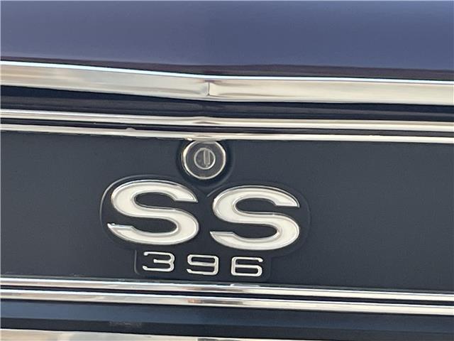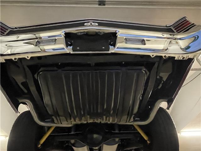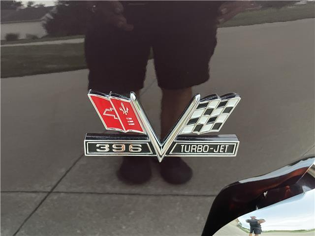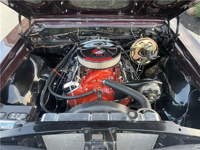 The engine compartment is nicely detailed with its rebuilt number matching 396 ci/ 325 hp engine bearing casting number 3902403 and suffix code ED. It has a dual feed Holley carburetor with correct fuel line, factory chrome valve covers and correct air cleaner, HEI ignition, factory exhaust manifolds and a newer cadmium plated power brake booster with dual master cylinder. It has power steering, 4-core aluminum radiator and correct fan shroud. The engine bay is painted and has a nice black finish. Everything is nice and tidy.