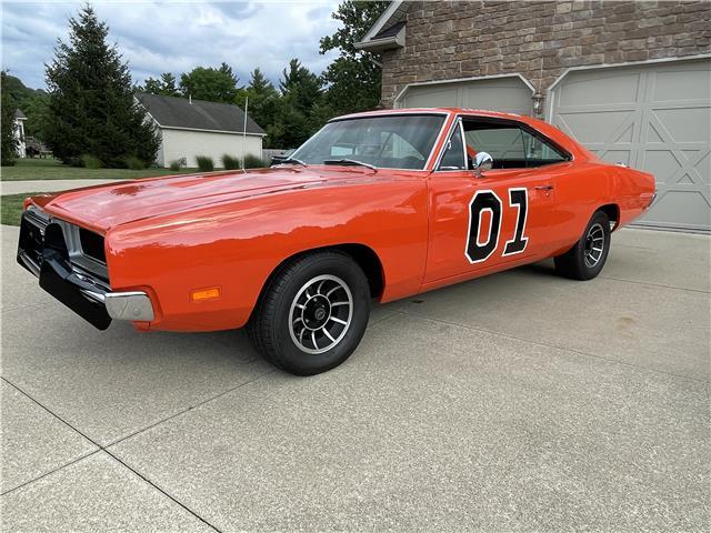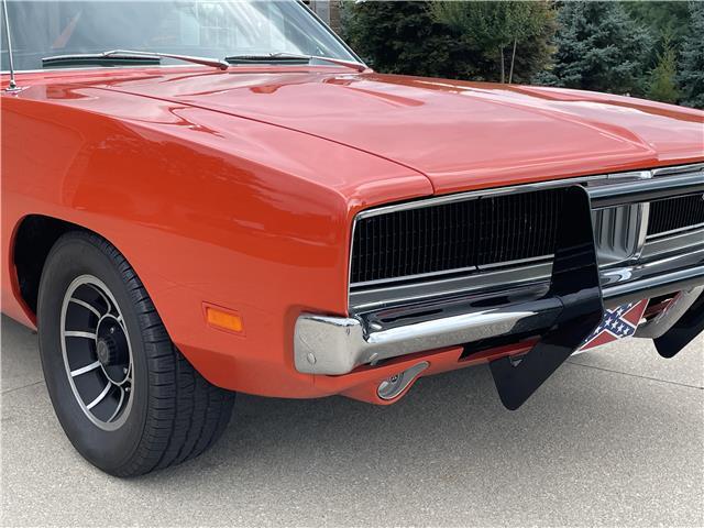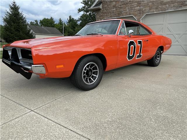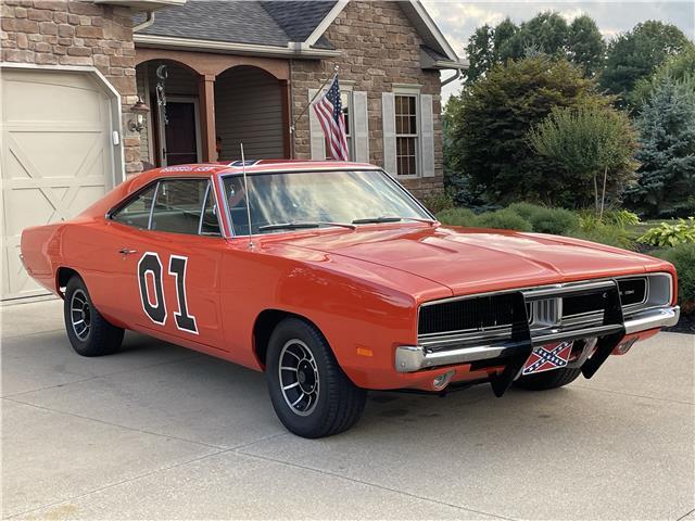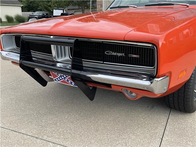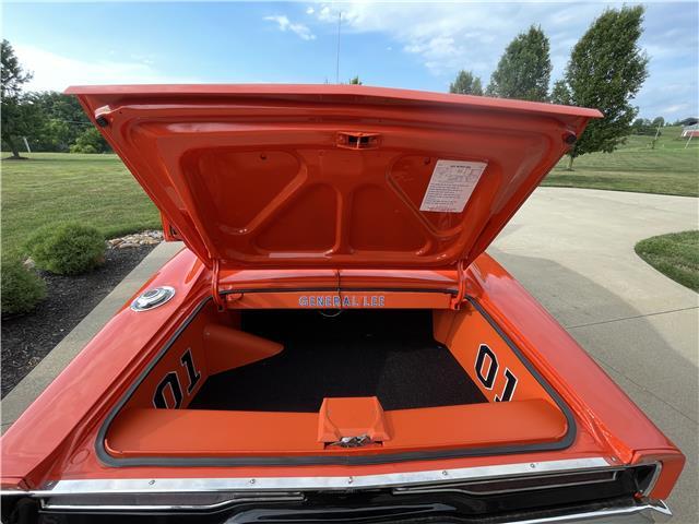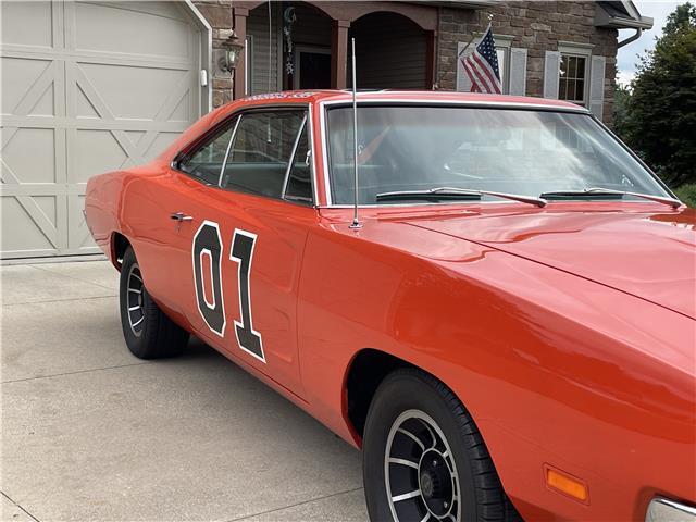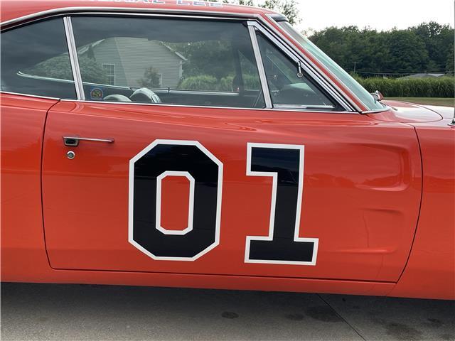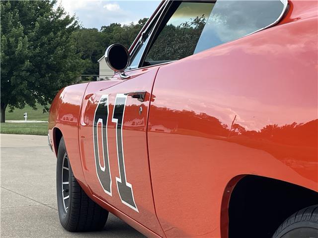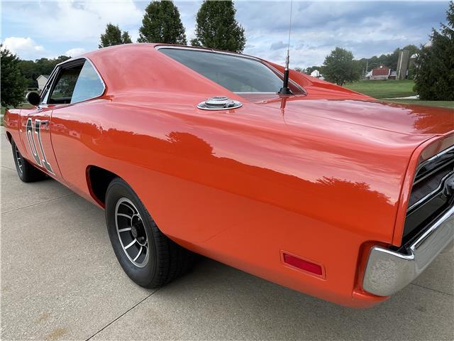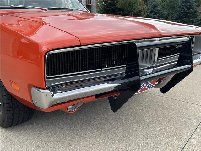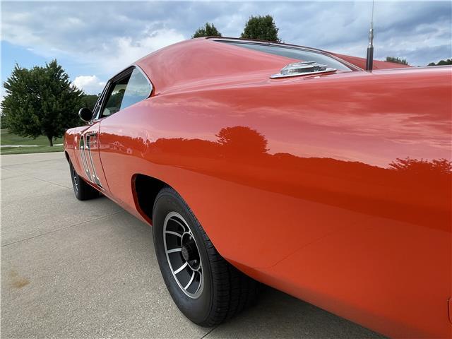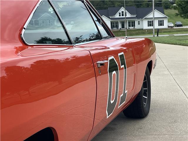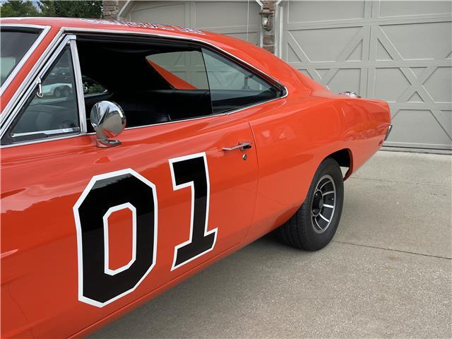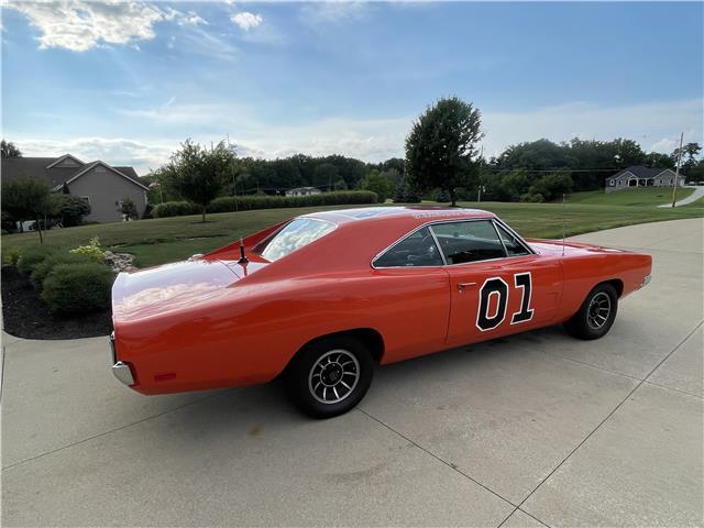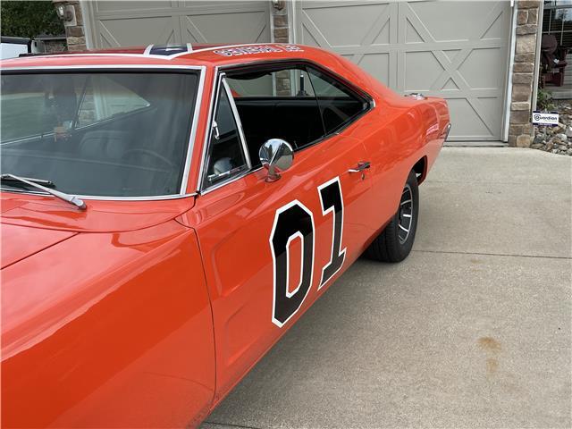 This is a gorgeous 1969 Dodge Charger General Lee replica. This car is definitely a conversation piece that was inspired by “The General Lee” from the television series, The Dukes of Hazzard. This Charger has a clean body, looking down both sides it is straight. There are no signs of rust or damage. The panels fit square and flush. It has the optional turn signals in the hood. All of the chrome and trim are in great shape. The original glass looks good. It sits on a set of American Racing Vector 10 spoke Turbine Dukes of Hazzard style wheels with radial tires.