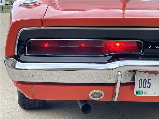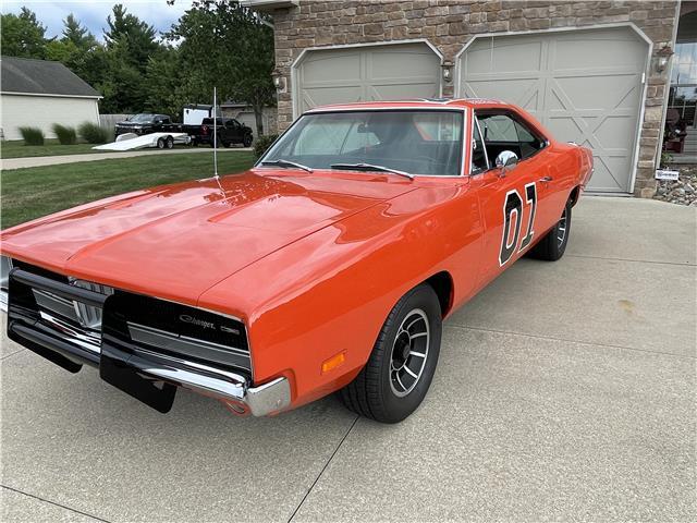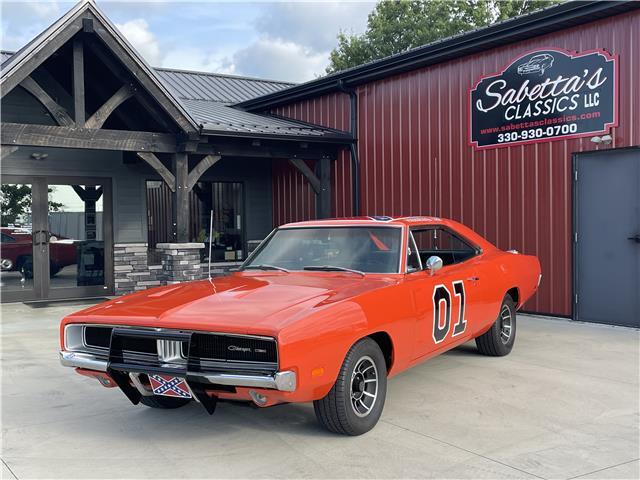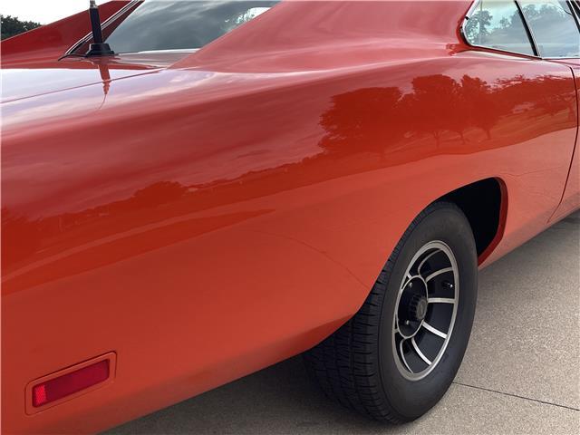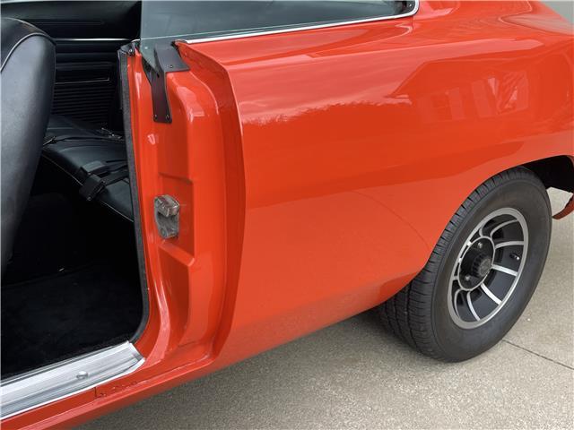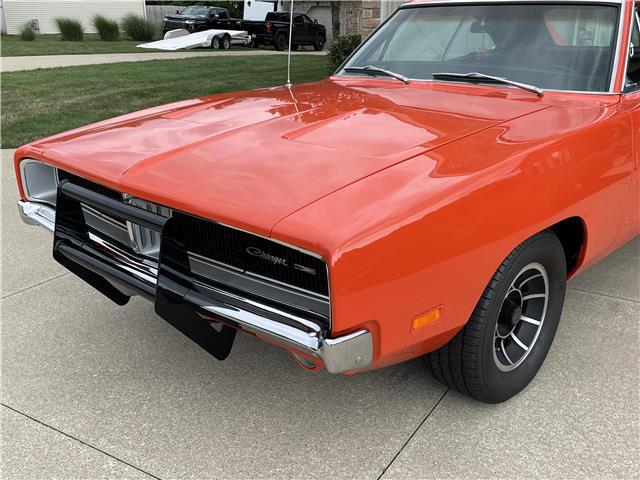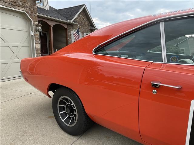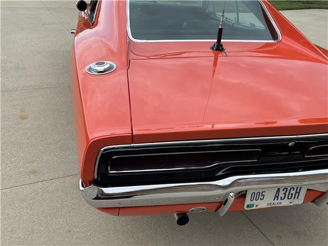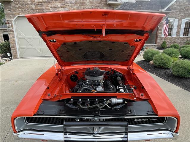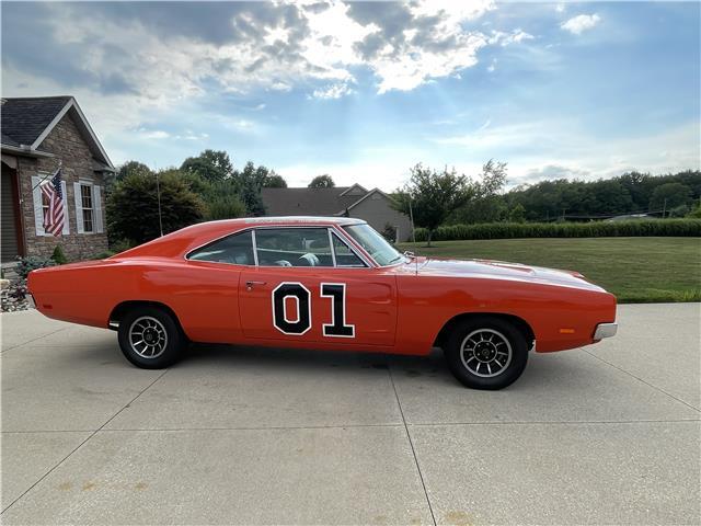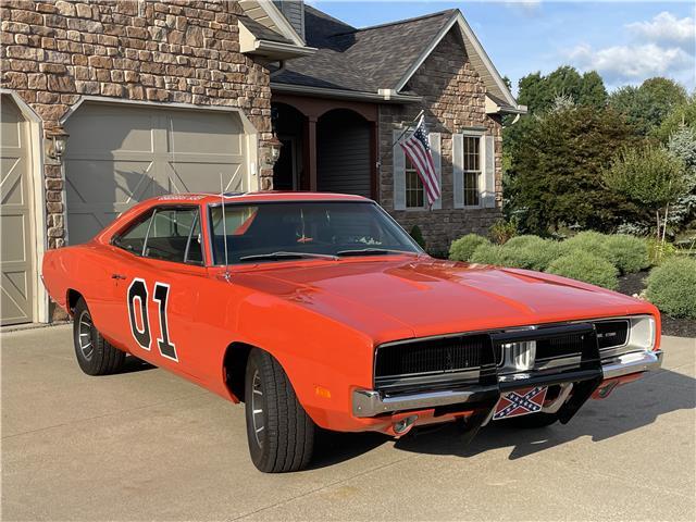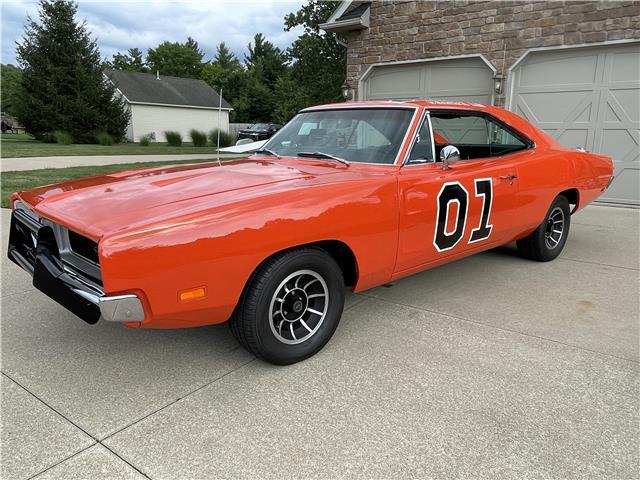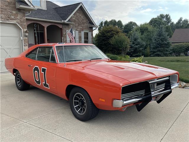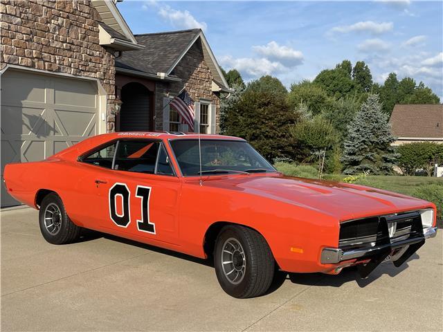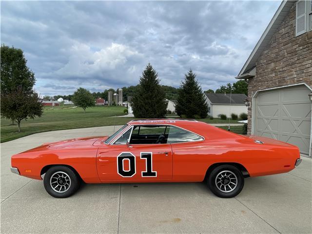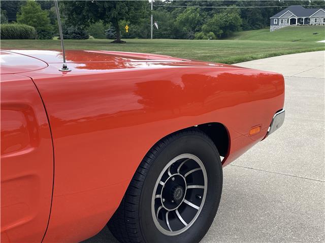 This is a gorgeous 1969 Dodge Charger General Lee replica. This car is definitely a conversation piece that was inspired by “The General Lee” from the television series, The Dukes of Hazzard. This Charger has a clean body, looking down both sides it is straight. There are no signs of rust or damage. The panels fit square and flush. It has the optional turn signals in the hood. All of the chrome and trim are in great shape. The original glass looks good. It sits on a set of American Racing Vector 10 spoke Turbine Dukes of Hazzard style wheels with radial tires.