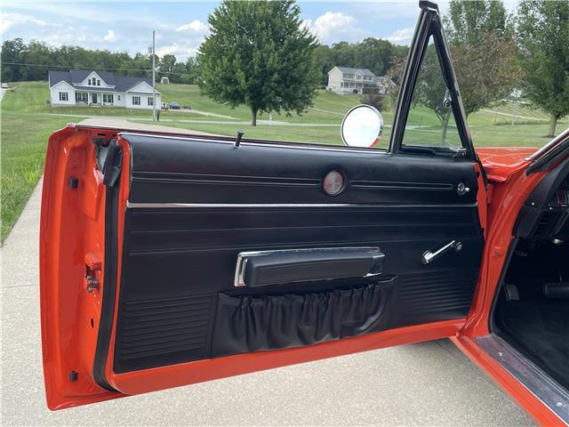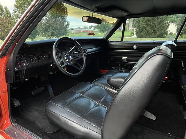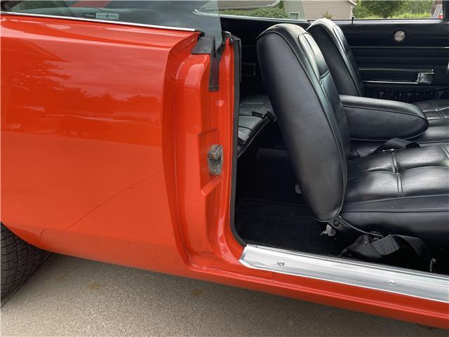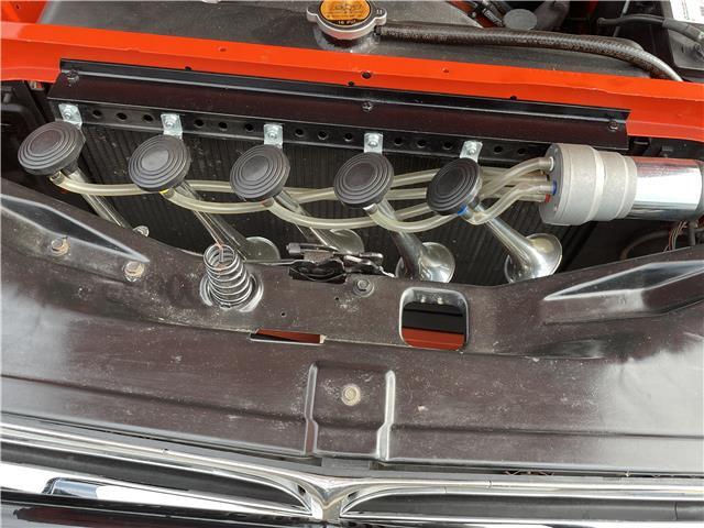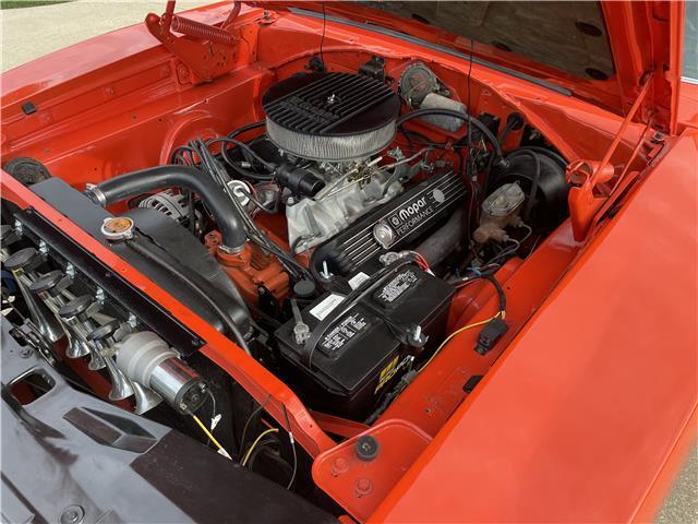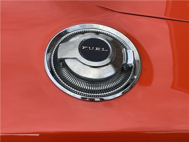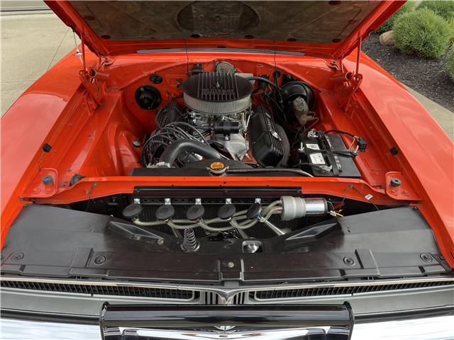 The engine compartment has its original 383 ci engine with a few performance upgrades. Upgrades include: HEI ignition, aluminum intake with an Edelbrock 4 barrel carburetor, a set of Mopar performance finned aluminum valve covers and air cleaner and an aluminum 4 core radiator. It features factory exhaust manifolds, newer power brake booster and master cylinder. It also retains its original fender tag. It also features the popular “Dixie Horns”, power steering and under hood insulation. The engine bay is nicely painted.