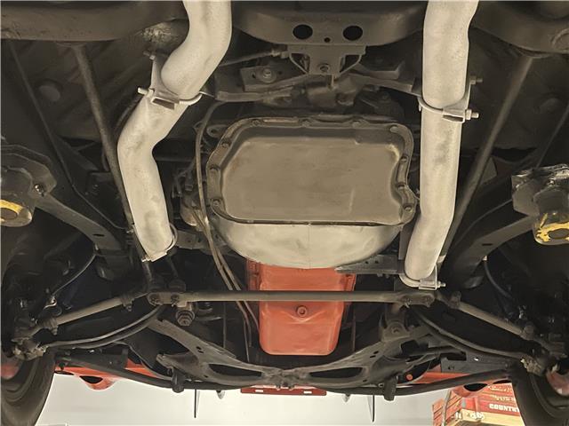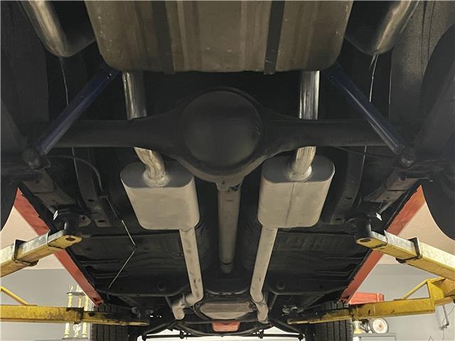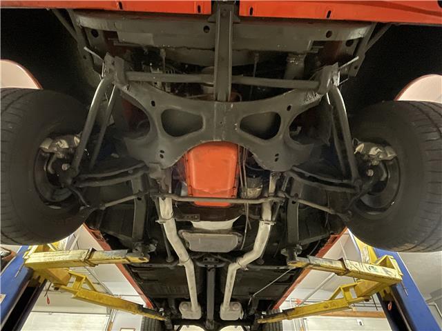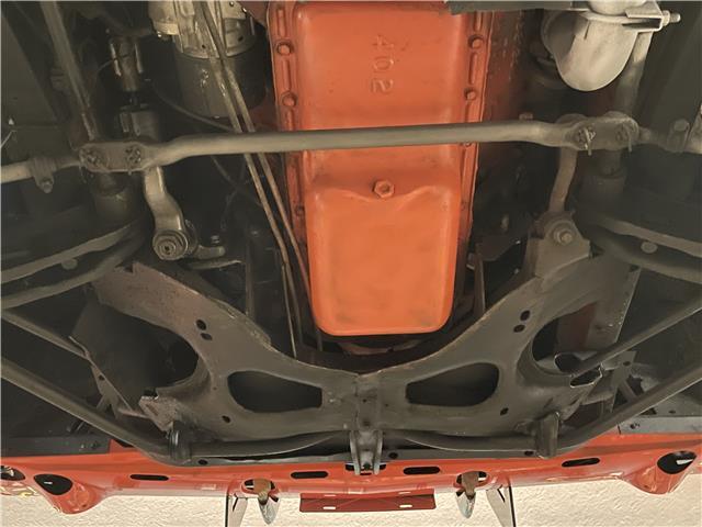 The undercarriage is all clean metal. Looking up at the motor it is clean as well as the 727 Torque Flite automatic transmission. There is a factory style exhaust and a 8 3/4 ” rear end. The floors and frame rails are all rock solid.