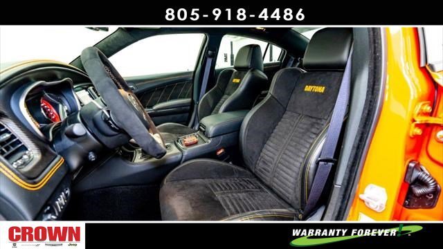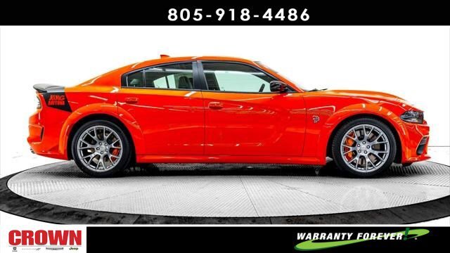 Go Mango 2023 Dodge Charger SRT Hellcat Redeye Widebody RWD 8-Speed Automatic 6.2L 8-Cylinder SMPI Supercharged OHV ** 1 Owner Clean CarFax **, Black w/Hellcat Logo Laguna Leather Seat or Alcantara/Laguna Seats w/Logo, 19 harman/kardon GreenEdge Speakers, 2-Piece Shark Fin Antenna, 220 MPH Primary Speedometer, 4G LTE Wi-Fi Hot Spot, 8.4 Touchscreen Display, Apple CarPlay, Automatic temperature control, Compass Gauge, Front dual zone A/C, Fully automatic headlights, Garage door transmitter: HomeLink, Google Android Auto, GPS Antenna Input, GPS Navigation, harman/kardon Audio Group, harman/kardon GreenEdge Amp, HD Radio, Heated Front Seats, Heated rear seats, Integrated Center Stack Radio, Integrated Voice Command w/Bluetooth, Media Hub (2 USB, AUX), Memory seat, Navigation & Travel Group, ParkView Rear Back-Up Camera, Power driver seat, Power passenger seat, Power Sunroof, Radio: Uconnect 4C Nav w/8.4 Display, Radio/Driver Seat/Mirrors Memory, Redeye Decklid Badge, Redeye Fender Badges, Redeye Grille Badge, Redeye I/P Badge, Remote keyless entry, Satin Black Charger Decklid Badge, Satin Black Dodge Tail Lamp Badge, Security system, SiriusXM Radio Service, SiriusXM Satellite Radio, SiriusXM Traffic Plus, SiriusXM Travel Link, Split folding rear seat, SRT Power Chiller, Steering wheel mounted audio controls, Surround Sound, USB Host Flip, Ventilated front seats, Wheels: 20 x 11 Carbon Black Lightweight.Here at Crown Dodge Chrysler Jeep RAM, we believe that great service means more than just offering our new Dodge, Chrysler, Jeep, and RAM lineup. We believe that great service also includes helpful advice, friendly car financing, and the highest quality parts and repairs for your car. Our staff works hard to make your full automotive experience at our car dealership in Ventura, CA enjoyable, and we look forward to helping you today! All vehicles at Crown Dodge have our SWAT security system $995,Clear Shield $395, Pulse $395, Wheel Locks $395, Windshield Protection $995, Nitro Fill $499, Screen Protector $395 and $1295 Paint/Fabric Protection pre-installed. Prices on the website do not include dealer-added equipment. Discounts include $2,000 Trade-In Dealer Assist Cash. Must trade in a 2015 or newer vehicle on a retail purchase. Trade-in must have less than 15,000 miles on average per year stated on Carfax Report, clean title, and Clean vehicle history report. Expires 02/19/2024. Expires 02/29/2024.