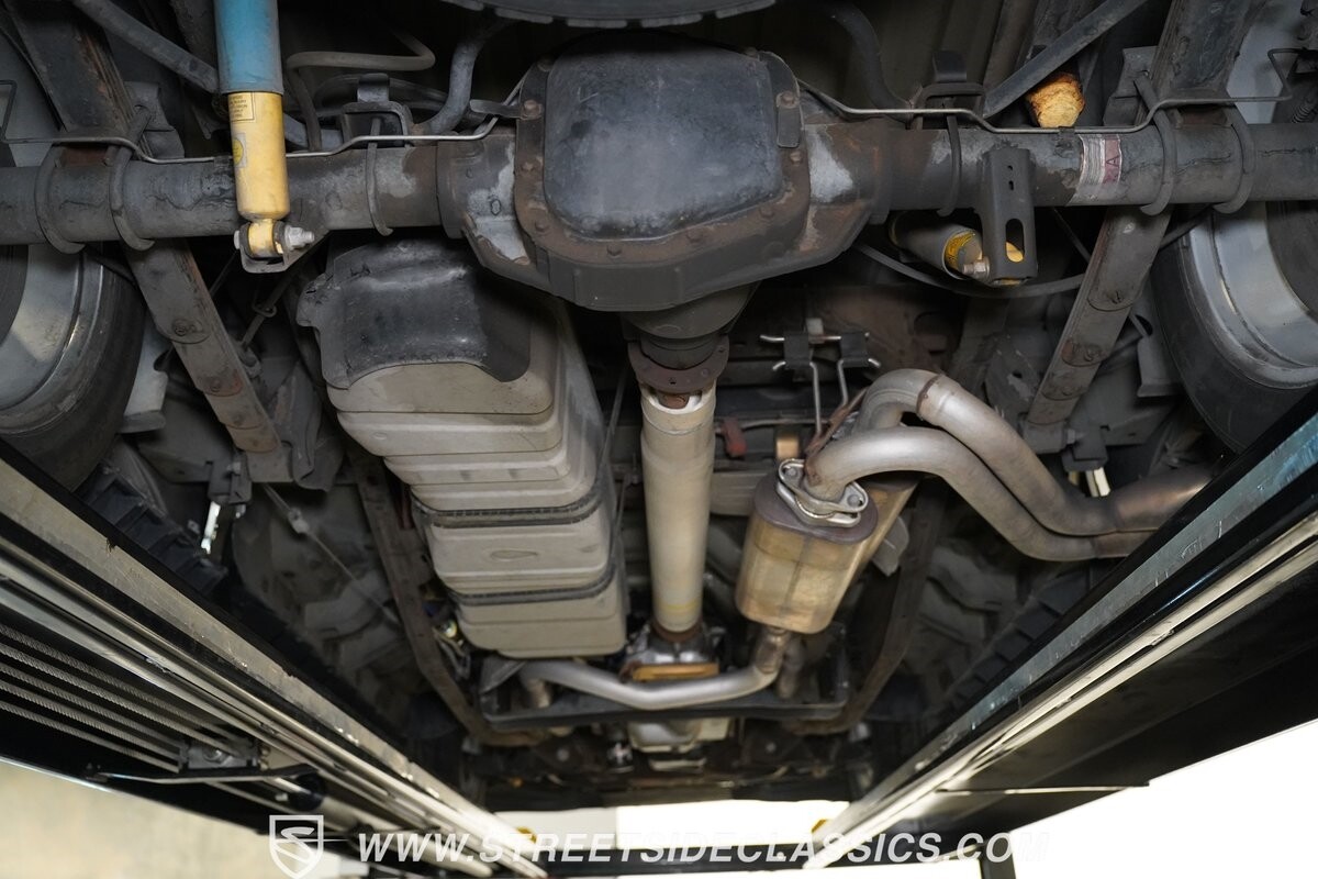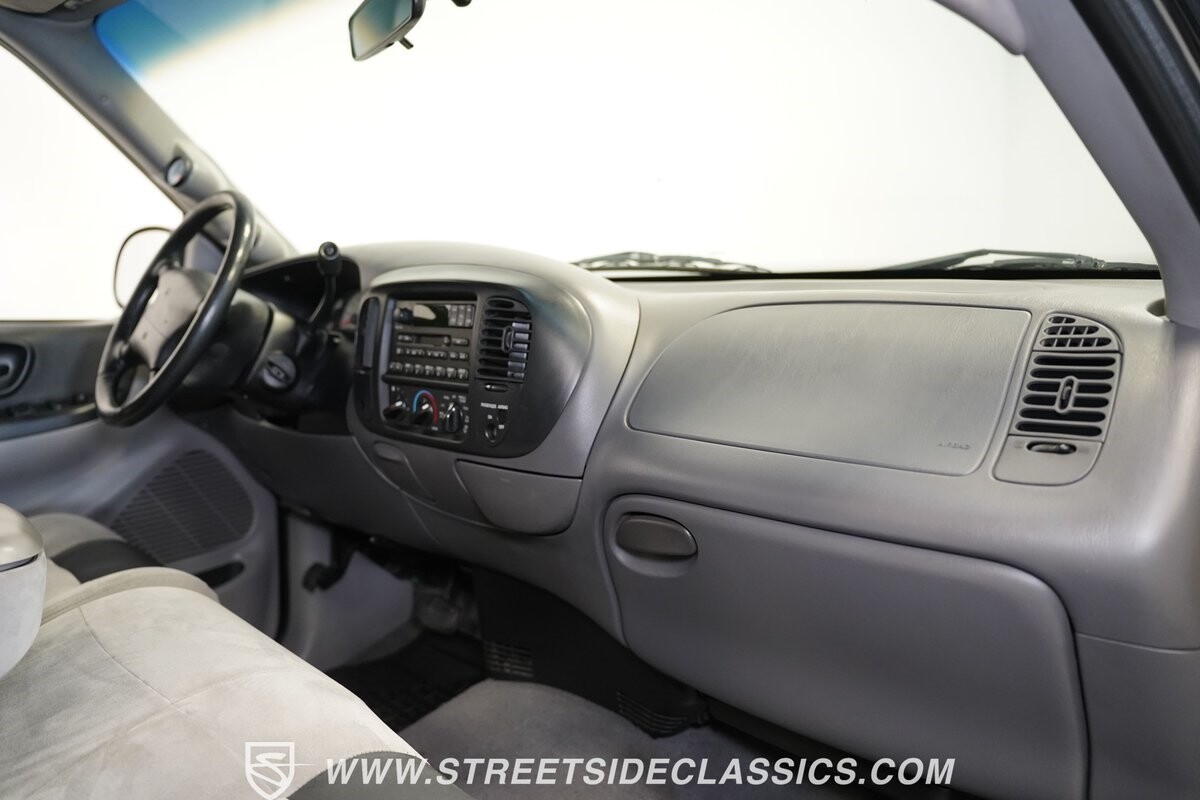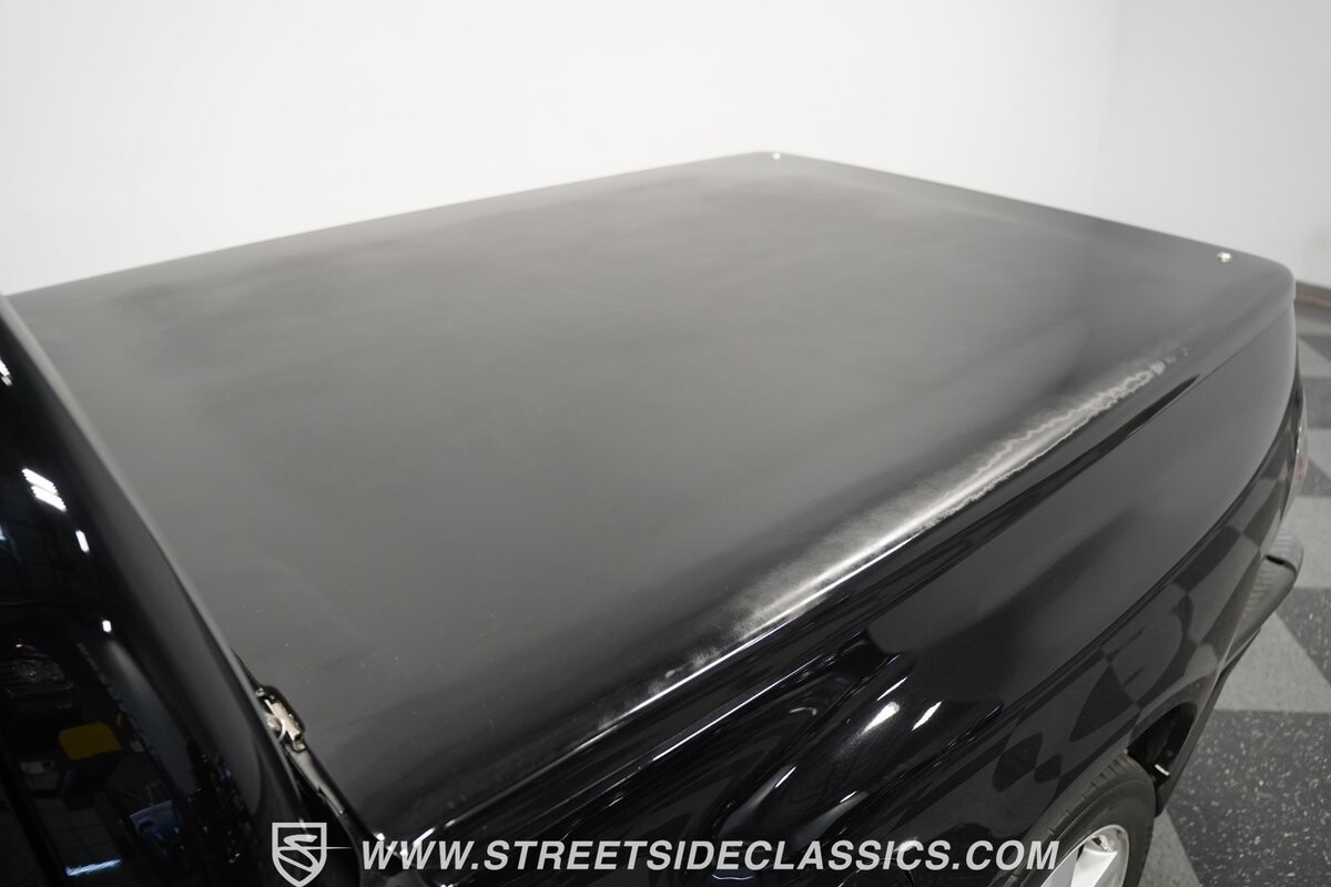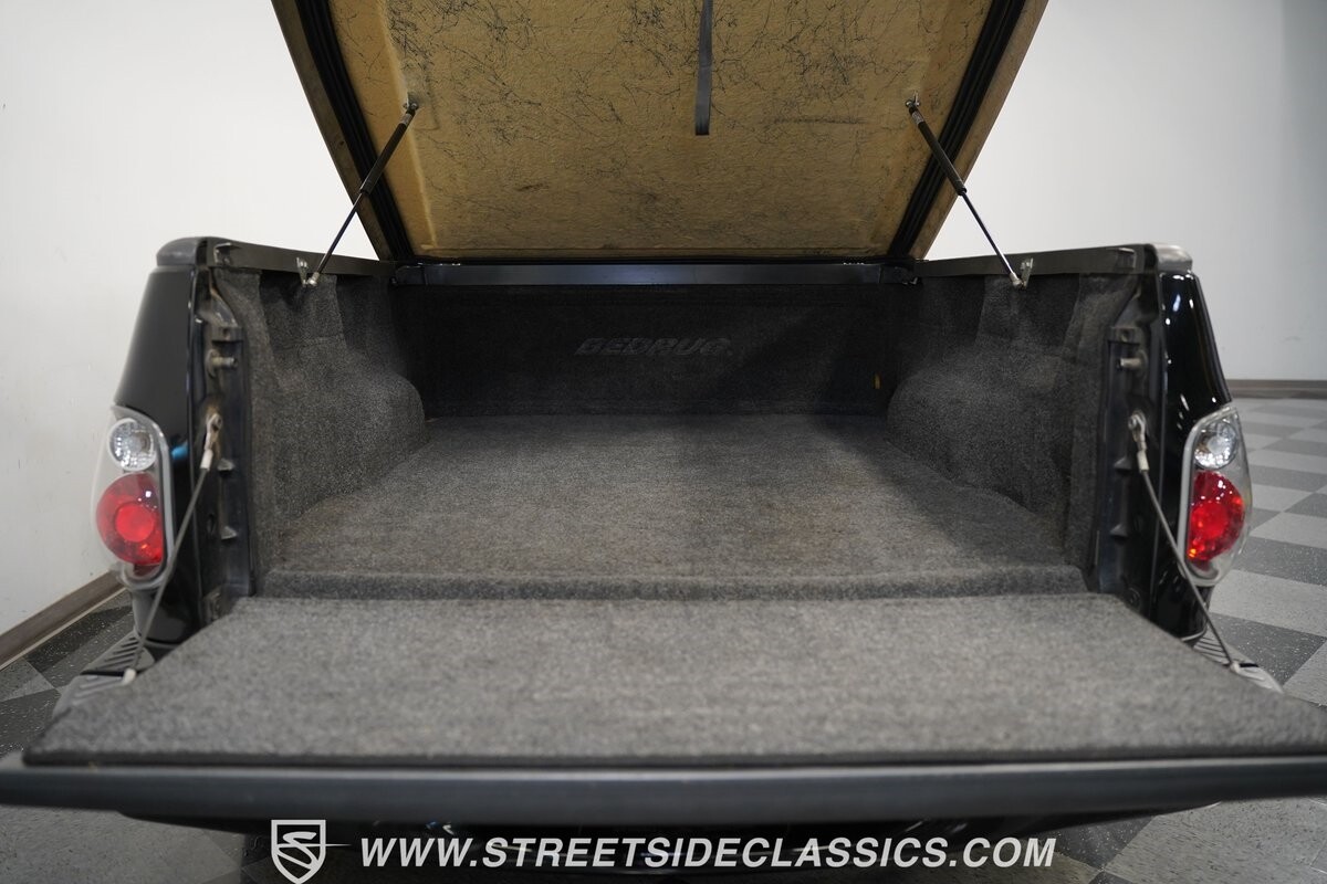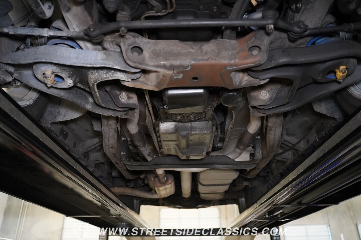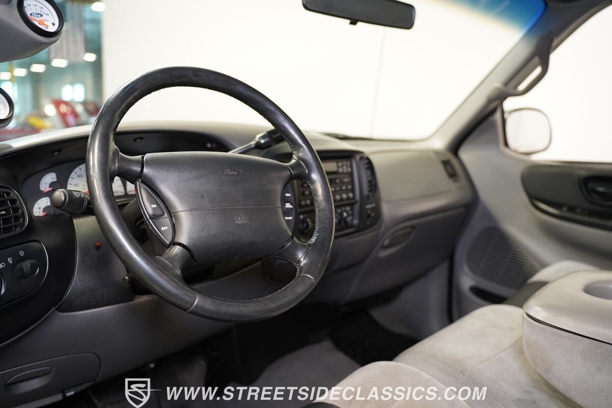 Inside the cab of this black beast, where the Medium Graphite cloth bucket seats beckon, offering a stark contrast to the ominous exterior. The well-preserved stock dash and headliner whisper tales of thrilling drives past and those yet to come. Every detail, from the AM/FM stereo and CD Changer to the air conditioning and cruise control, and A-pillar aux readouts, is meticulously designed for control and comfort. The power seats adjust to your will, while the anti-theft system stands guard, ensuring this Lightning strikes only when you command it.