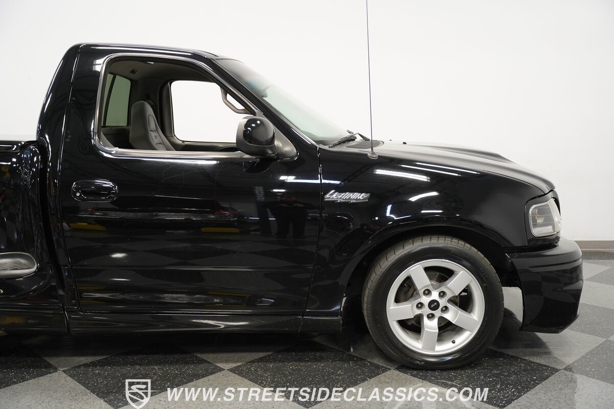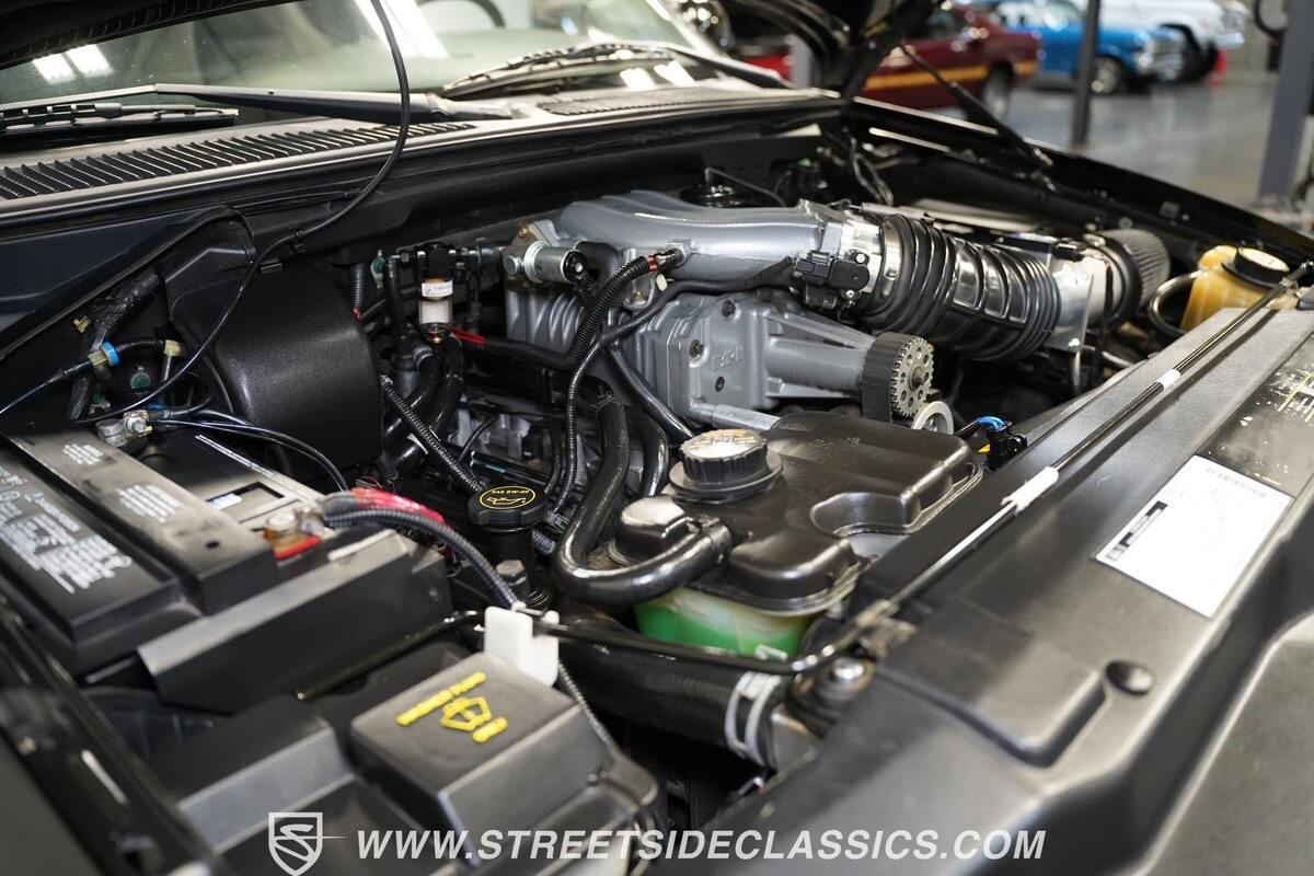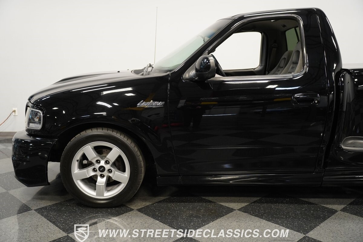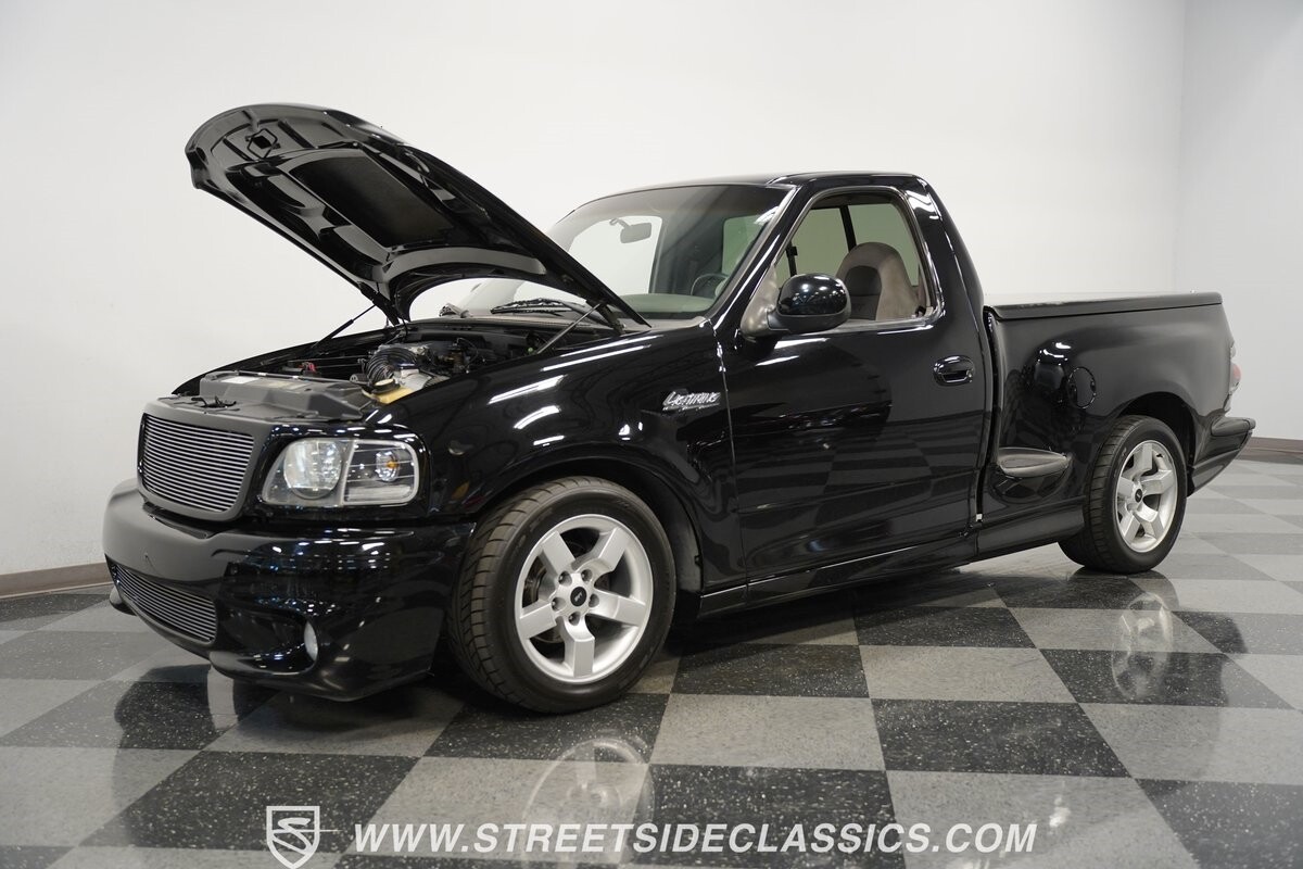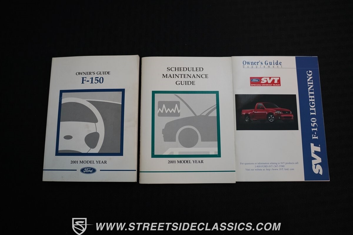 What makes this 2001 Ford F-150 SVT Lightning roar is the 5.4 Liter Supercharged V8 engine, a powerhouse upgraded with an Eaton supercharger and an aftermarket ribbed serpentine belt system. The engine's growl is amplified by long tube headers and the side-exiting dual Bassani exhaust. The 4-speed automatic transmission shifts with precision, while a suspension system and power disc brakes stand ready to handle whatever the road throws its way.