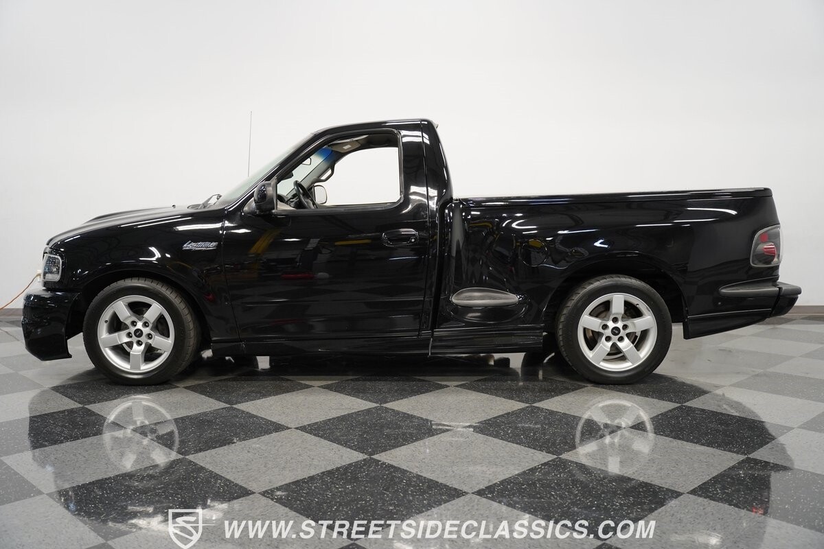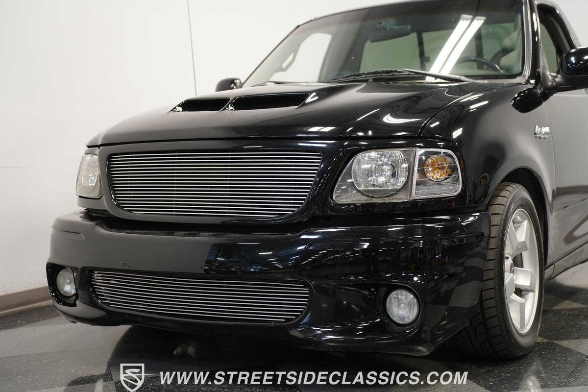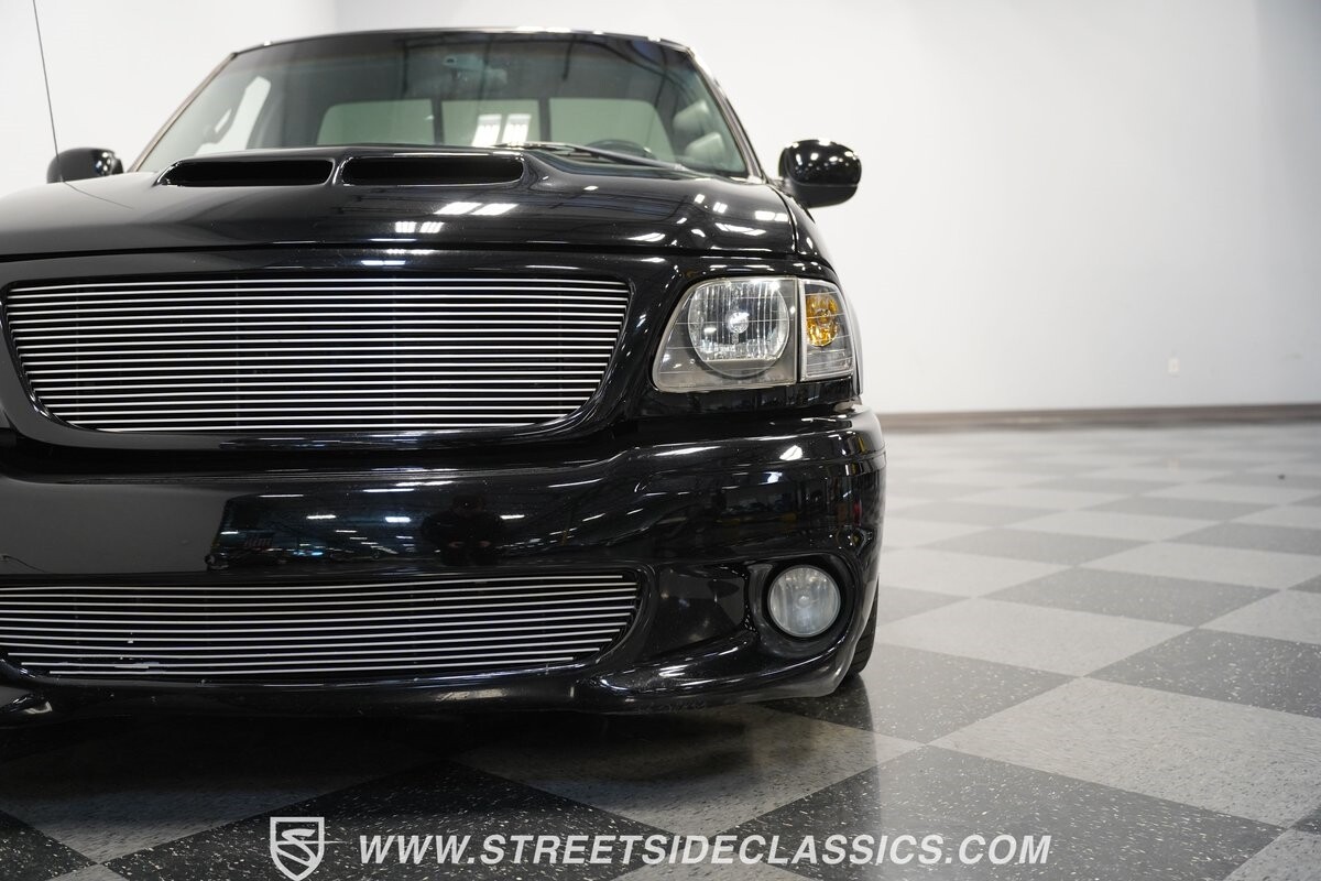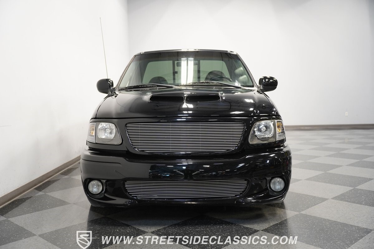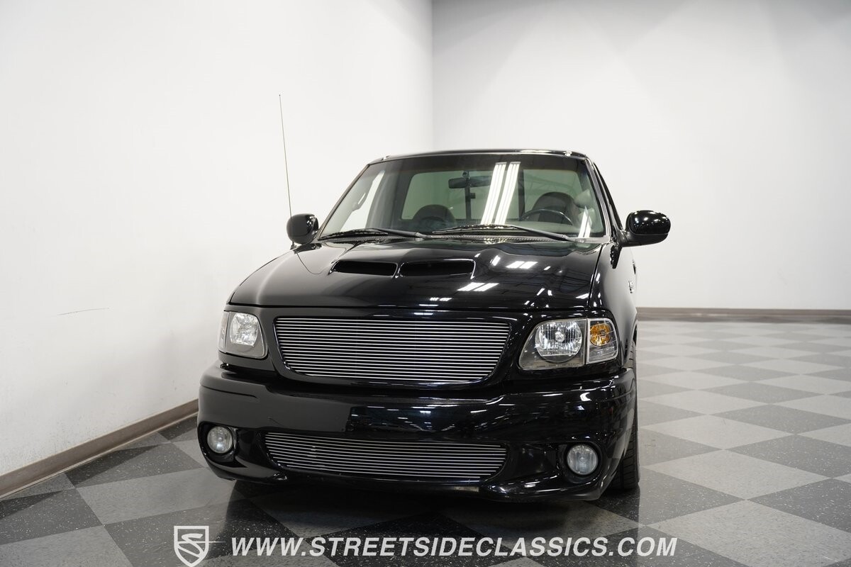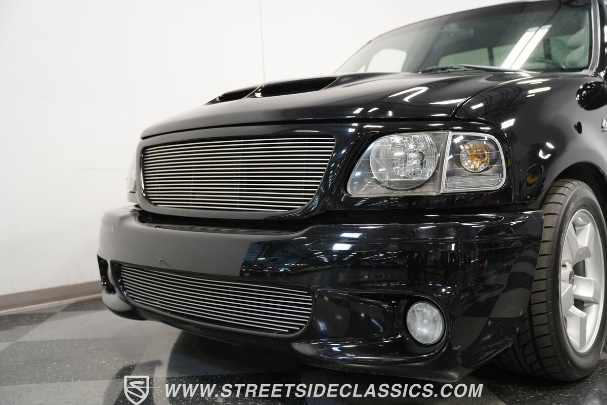 What makes this 2001 Ford F-150 SVT Lightning roar is the 5.4 Liter Supercharged V8 engine, a powerhouse upgraded with an Eaton supercharger and an aftermarket ribbed serpentine belt system. The engine's growl is amplified by long tube headers and the side-exiting dual Bassani exhaust. The 4-speed automatic transmission shifts with precision, while a suspension system and power disc brakes stand ready to handle whatever the road throws its way.