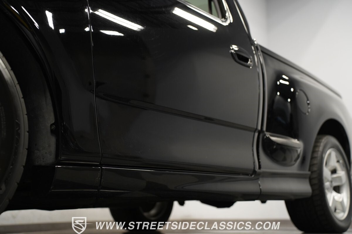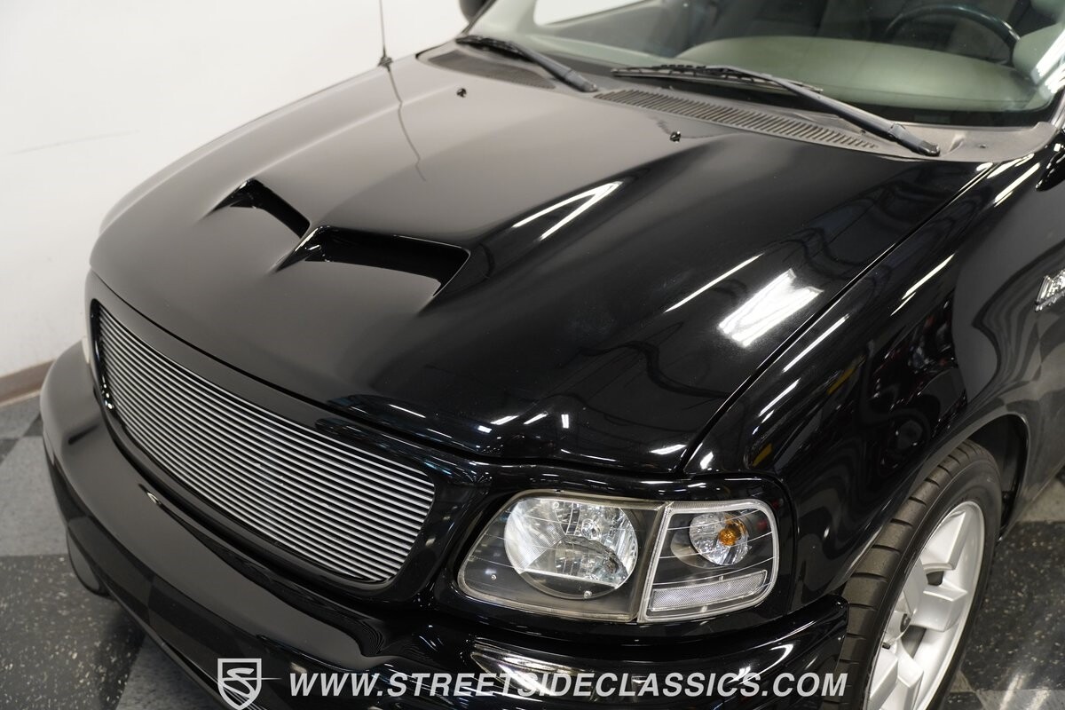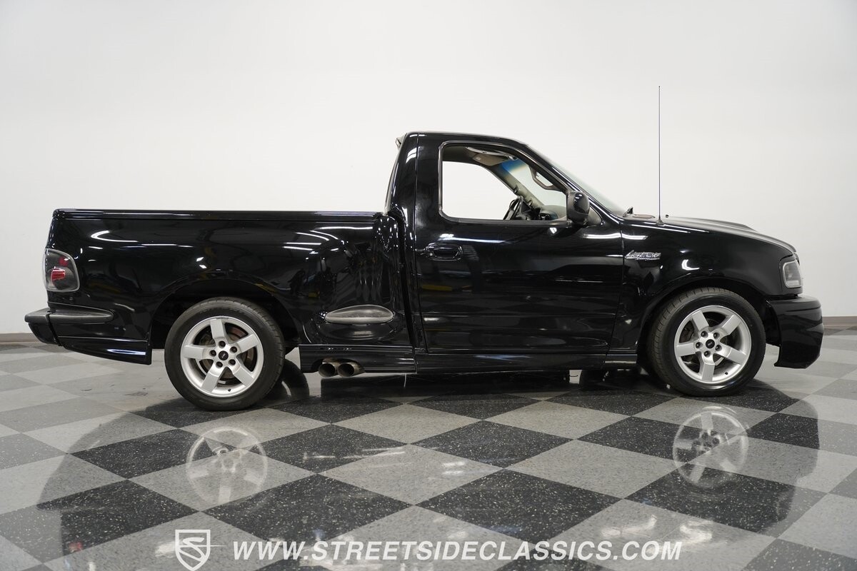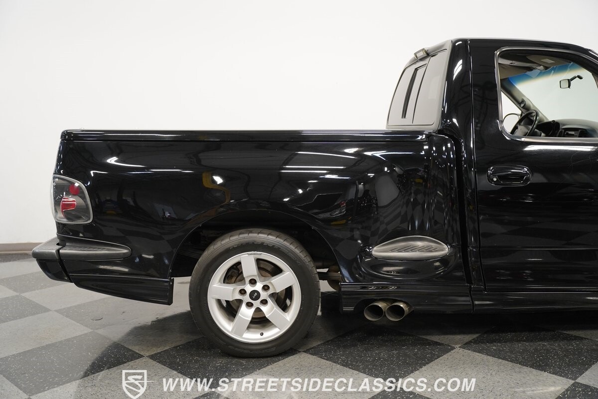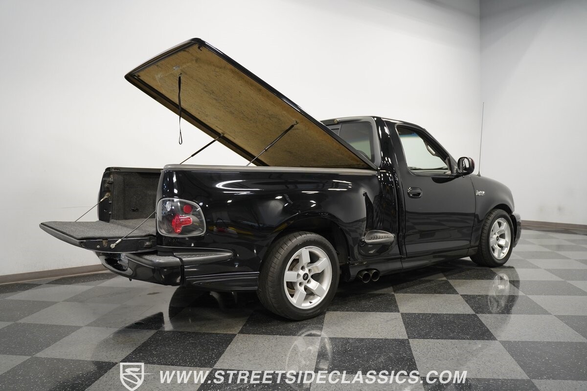What makes this 2001 Ford F-150 SVT Lightning roar is the 5.4 Liter Supercharged V8 engine, a powerhouse upgraded with an Eaton supercharger and an aftermarket ribbed serpentine belt system. The engine's growl is amplified by long tube headers and the side-exiting dual Bassani exhaust. The 4-speed automatic transmission shifts with precision, while a suspension system and power disc brakes stand ready to handle whatever the road throws its way.