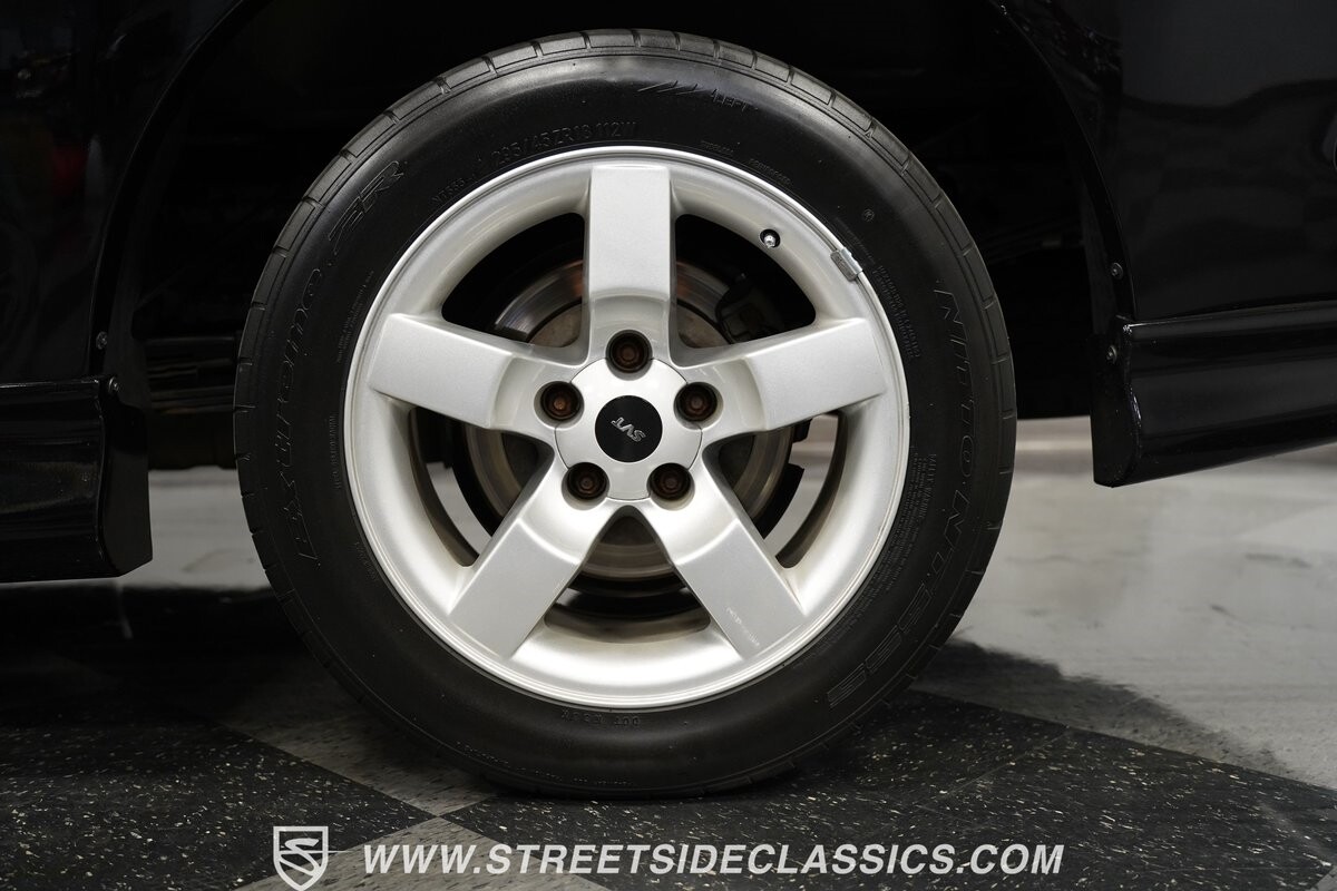 Like a thunderclap in a clear sky, the 2001 Ford F-150 SVT Lightning storms onto the scene, embodying the raw power and intensity of a classic rock anthem. Cloaked in its Ebony Black paint, its aggressive stance and Bilstein-shocked suspension, fiberglass hood, and side-exiting dual exhaust, courtesy of long tube headers, speak to the power lurking beneath. The tonneau cover complements the truck's intimidating presence, and those 18-inch wheels, wrapped in Nitto 555 tires, promise the lightning-strike performance this SVT is known for.