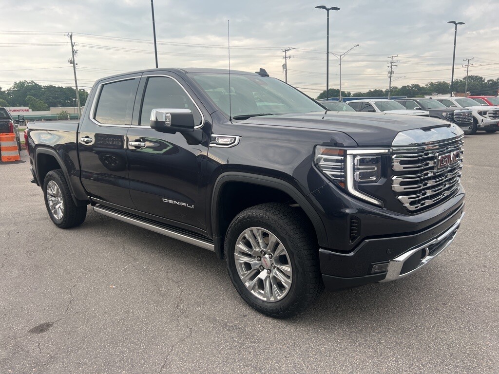 CARFAX One-Owner. Clean CARFAX. Certified. Titanium Rush Metallic 2023 GMC Sierra 1500 Denali 4WD 10-Speed Automatic 3.0L I6 AWD/4WD, ALUMINUM WHEELS, BACKUP CAMERA, BLUETOOTH, LEATHER SEATS, MOONROOF, NAVIGATION SYSTEM, PREMIUM WHEELS, SUNROOF/MOONROOF, KEYLESS ENTRY, APPLE ANDROID CARPLAY, PUSH BUTTON START, 10-Way Power Driver Seat Adjuster w/Lumbar, 10-Way Power Passenger Seat Adjuster w/Lumbar, 120-Volt Instrument Panel Power Outlet, 170 Amp Alternator, 2 Charge/Data USB Ports Inside Center Console, 2 Type-C Charge-Only Rear USB Ports, 2 USB Ports, 4-Wheel Disc Brakes, 7 Speakers, ABS brakes, Air Conditioning, AM/FM radio, Auto High-beam Headlights, Auto-Locking Rear Differential, Automatic temperature control, Auxiliary External Transmission Oil Cooler, Bed View Camera, Chrome Header w/Signature Denali Chrome Grille, Chrome Recovery Hooks, Chrome Wheel To Wheel Assist Steps, Color-Keyed Carpeting Floor Covering, Compass, Deep-Tinted Glass, Delay-off headlights, Driver Memory, Dual front impact airbags, Electric Rear-Window Defogger, Electrical Steering Column Lock, Floor-Mounted Center Console, Following Distance Indicator, Forge Perforated Leather Seat Trim, Forward Collision Alert, Front Center Armrest, Front dual zone A/C, Front fog lights, Front Pedestrian Braking, Front Rainsensing Wipers, Front reading lights, Garage door transmitter, GMC Connected Access Capable, HD Surround Vision, Heated 2nd Row Outboard Seats, Heated Driver & Front Outboard Passenger Seating, Heated front seats, Heated rear seats, Heavy-Duty Air Filter, Hill Descent Control, Hitch Guidance, Hitch Guidance w/Hitch View, Integrated Trailer Brake Controller, In-Vehicle Trailering App, Keyless Open & Start, LED Cargo Area Lighting, Low tire pressure warning, Memory seat, Not Equipped w/Steering Column Lock, Occupant sensing airbag, OnStar & GMC Connected Services Capable, Perimeter Lighting, Power Door Locks, Power driver seat, Power Front Passenger Windows w/Express Up/Down, Power Front Windows w/Driver Express Up/Down, Power passenger seat, Power Rake & Telescoping Steering Column, Power Rear Windows w/Express Down, Power Sliding Rear Window w/Rear Defogger, Power steering, Power Sunroof, Power windows, Preferred Equipment Group 5SA, Premium audio system: GMC Infotainment System, Premium Bose 7-Speaker Sound System, Push Button Start, Radio data system, Rear Cross Traffic Braking, Rear Pedestrian Detection, Rear Wheelhouse Liners, Rear window defroster, Remote Vehicle Starter System, Safety Alert Seat, SiriusXM w/360L, Spray-On Pickup Bed Liner w/Denali Logo, Steering Wheel Audio Controls, Tachometer, Telescoping steering wheel, Theft Deterrent System (Unauthorized Entry), Tilt steering wheel, Trailer Camera Provisions, Trailer Side Blind Zone Alert, Trailering Package, Ultrasonic Front & Rear Park Assist, Universal Home Remote, Ventilated Driver & Front Passenger Seats, Wi-Fi Hotspot Capable, Wireless Charging, Wireless Phone Projection.