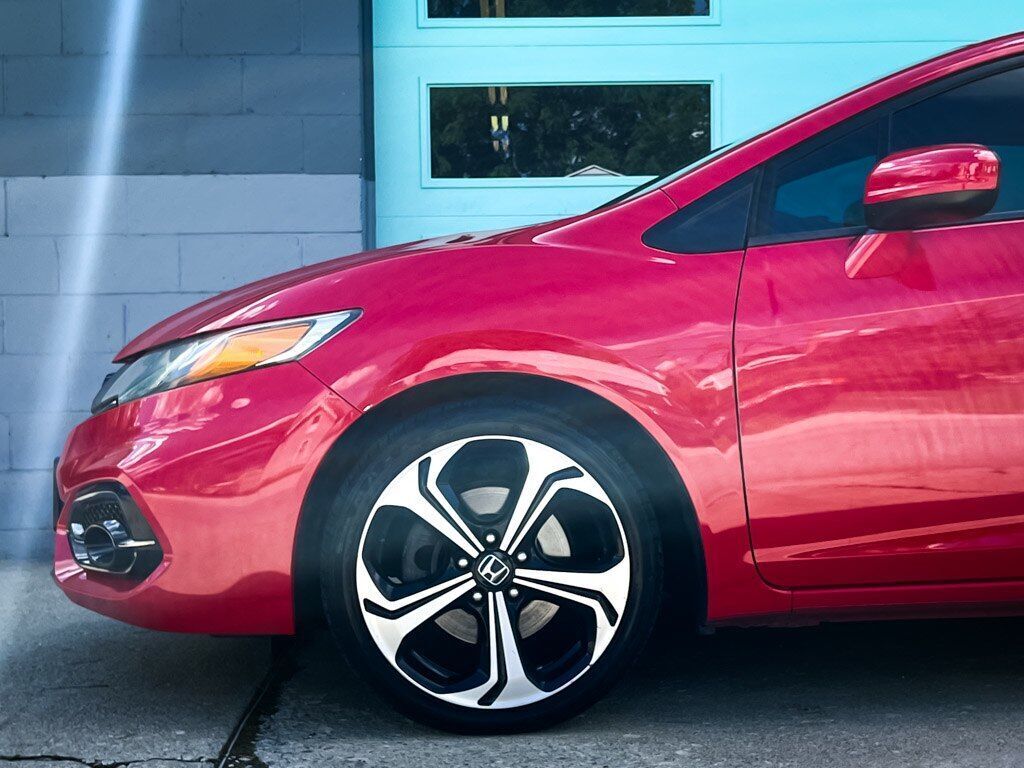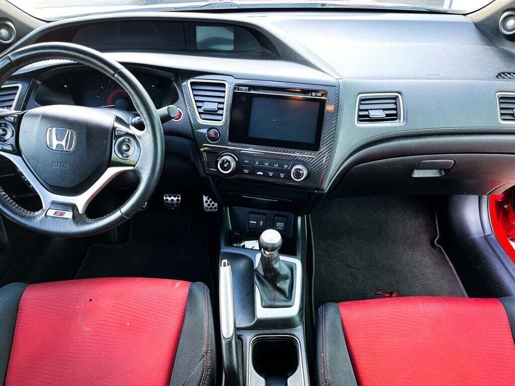 2015 Honda Civic Si coupe - 159k miles, clean Carfax, 6-speed manual transmission, sunroof, Rallye Red exterior over black/red fabric seats, backup camera, blind spot camera, hot heat, cold A/C, and enough pep to get ya where you need to go!