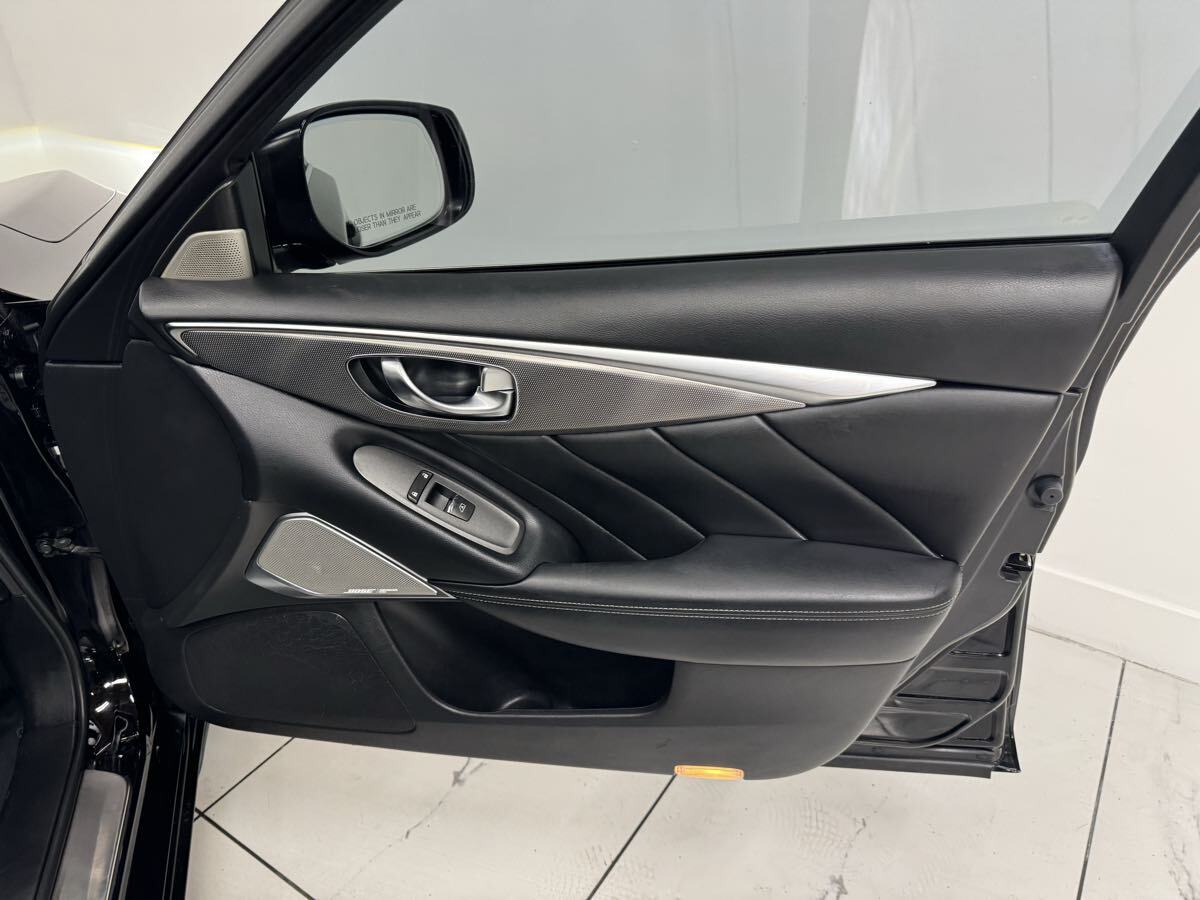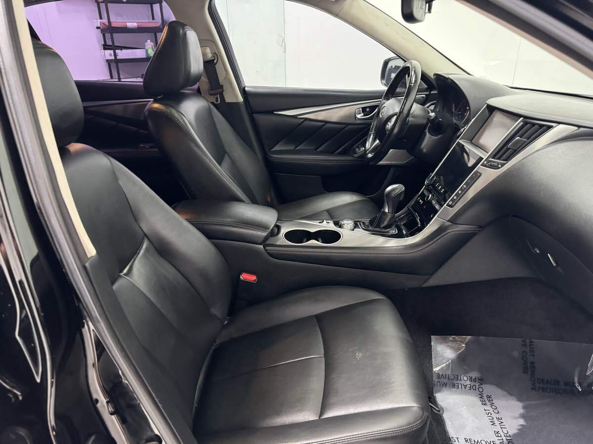 Embrace each exhilarating moment in our 2017 INFINITI Q50 3.0T Premium Sedan that looks bold and accomplished in Black Obsidian! Powered by a Twin TurboCharged 3.0 Liter V6 that offers 300hp connected to a responsive 7 Speed Automatic transmission for impressive acceleration. You'll go further with its brilliant Rear Wheel Drive design while scoring nearly 29mpg on the highway. This Q50 delivers high performance and responsive handling while the superb craftsmanship and striking contemporary style are apparent the moment you step up to our Premium with its sleek lines - sunroof - and alloy wheels. The Premium cabin will exceed your expectations with keyless entry - pushbutton start - advanced dual-zone automatic climate control - power accessories - eight-way power-adjustable heated front seats - and an auto-dimming rearview mirror. All of your favorite music is close at hand thanks to Bose audio system with high-definition AM/FM radio - CD with MP3 playback capability - radio data system - 2 USB ports - and available satellite radio. Customize your digital information with our INFINITI InTouch dual display screens and well INFINITI InTuition and use your voice to control it all! Fun to drive and highly competent - our INFINITI Q50 Premium has also been carefully crafted with safety features including a rear camera - ABS - advanced airbags - zone body construction - and vehicle dynamic control. We know you'll enjoy every second in this sedan - so get behind the wheel and reward yourself today. Save this Page and Call for Availability. We Know You Will Enjoy Your Test Drive Towards Ownership!