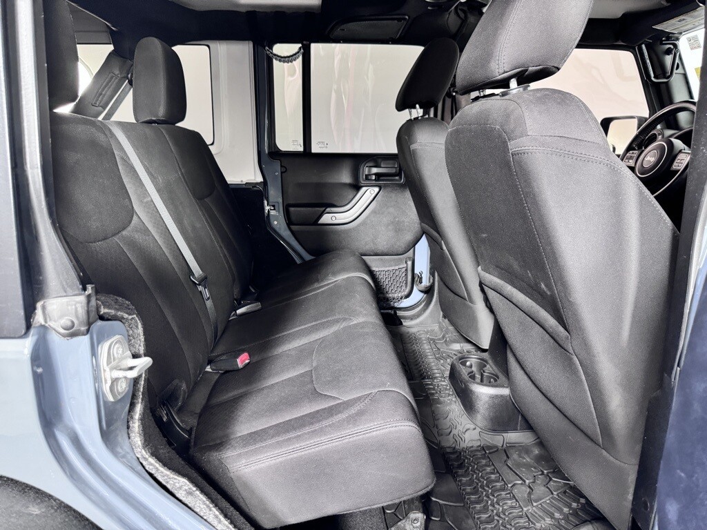 Clean CARFAX. Anvil Clear Coat 2015 Jeep Wrangler Unlimited Sport 4WD 5-Speed Automatic 3.6L V6 24V VVT Wrangler Unlimited Sport, 4D Sport Utility, 3.6L V6 24V VVT, 5-Speed Automatic, 4WD, Anvil Clear Coat, Black Cloth, 17 x 7.5 Aluminum Wheels, 3.73 Rear Axle Ratio, Auto-Dimming Mirror w/Reading Lamp, Chrome/Leather Wrapped Shift Knob, Class II Receiver Hitch, Connectivity Group, Deep Tint Sunscreen Windows, Leather Wrapped Steering Wheel, Max Tow Package, Quick Order Package 24S, Tire Pressure Monitoring Display, Trailer Tow Group, Trailer Tow w/4-Pin Connector Wiring, Uconnect Voice Command w/Bluetooth, Vehicle Information Center.