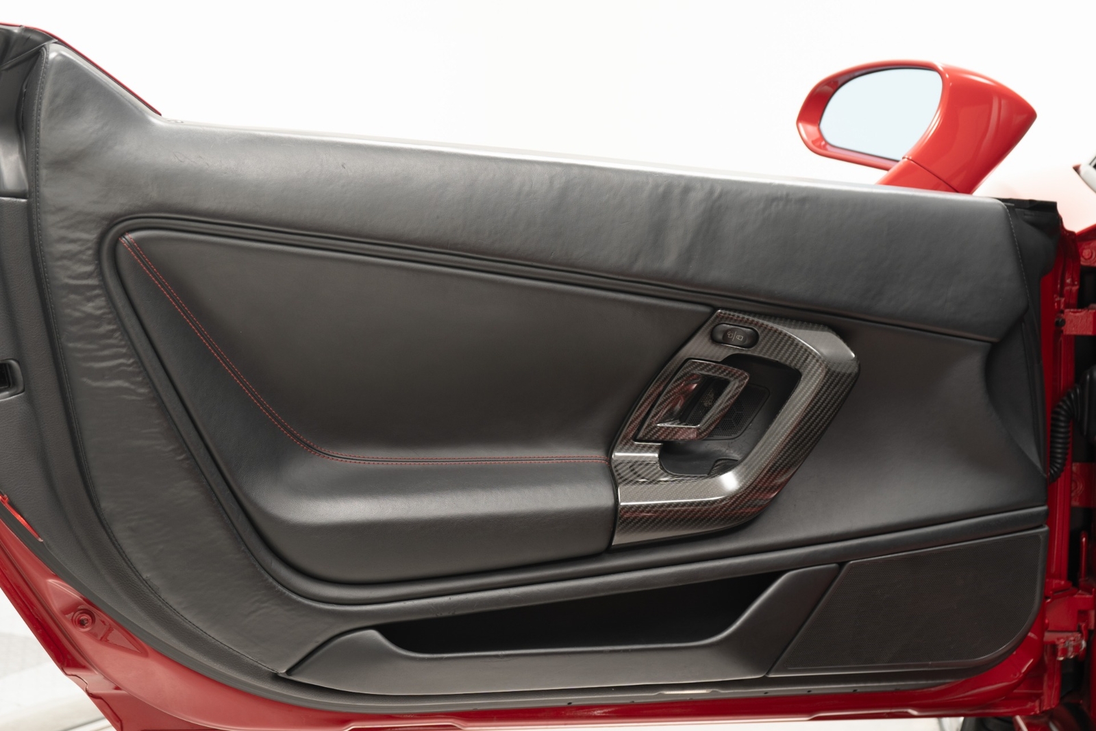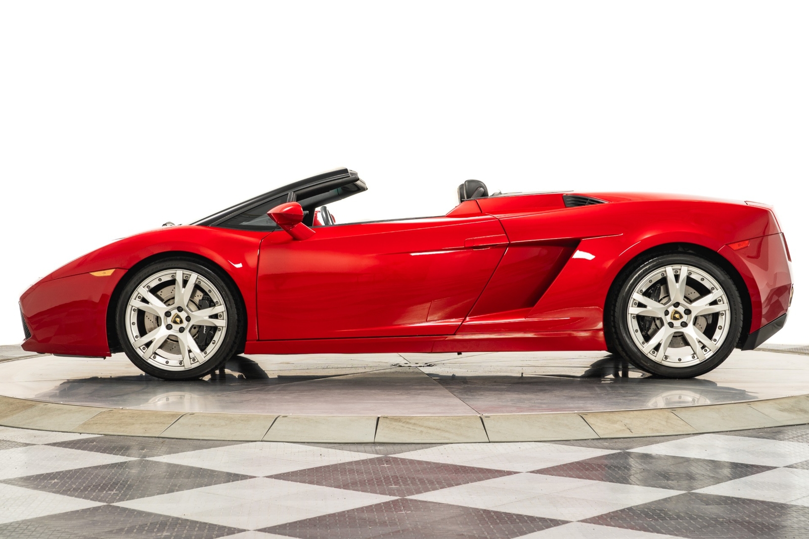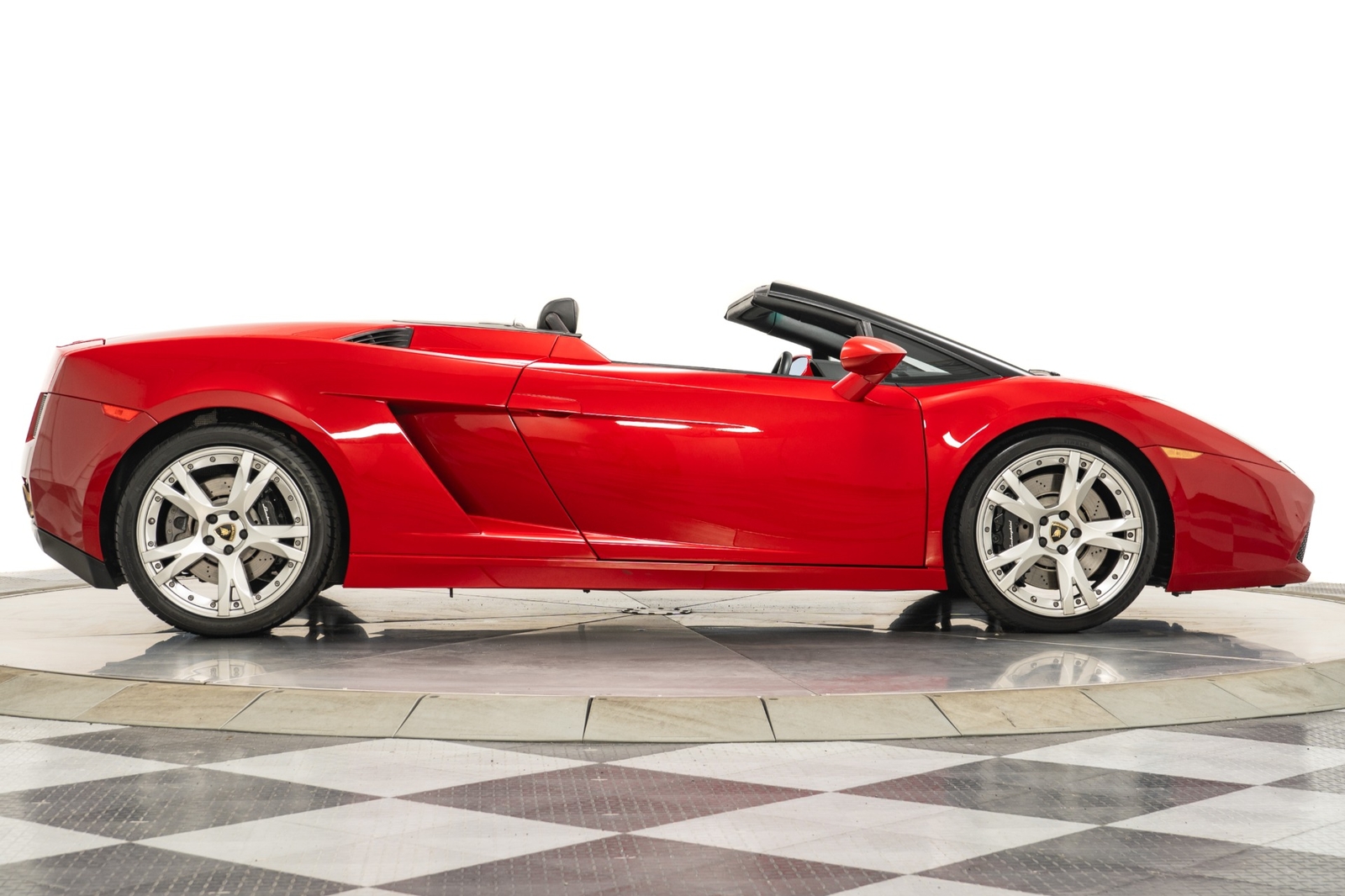 We have just added to our extensive exotic car inventory a beautiful 2007 Lamborghini Gallardo Spyder in Rosso Vik over Nero leather interior and only 12,590 original miles. This Gallardo is loaded with: 5.0 liter V10, 6 speed automatic transmission, 19 inch Callisto alloy wheels, black brake calipers, front axle lift, gloss black windshield surround, carbon fiber interior trim, heated seats, navigation, rear camera, black convertible top, logo floor mats, car cover and much more.