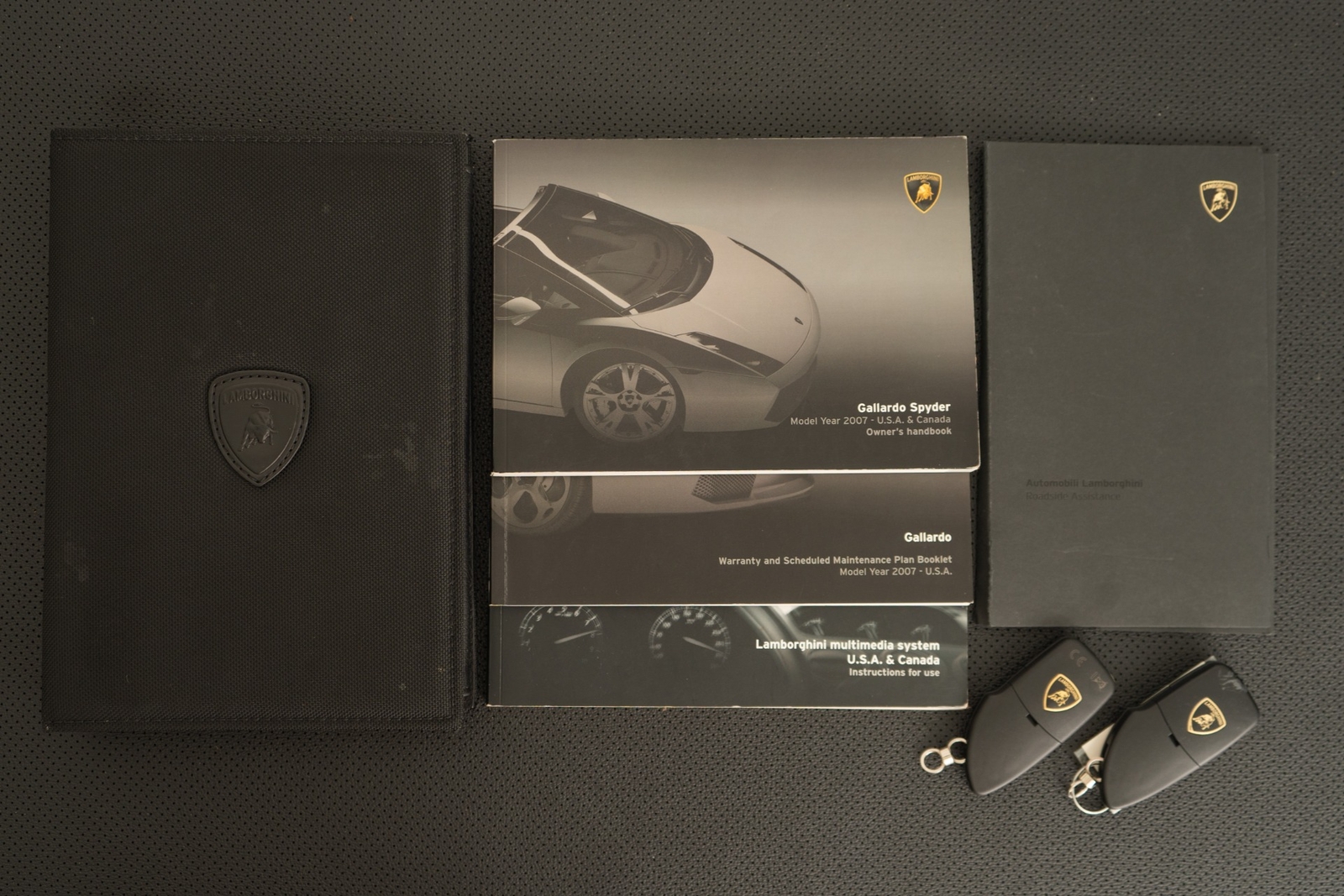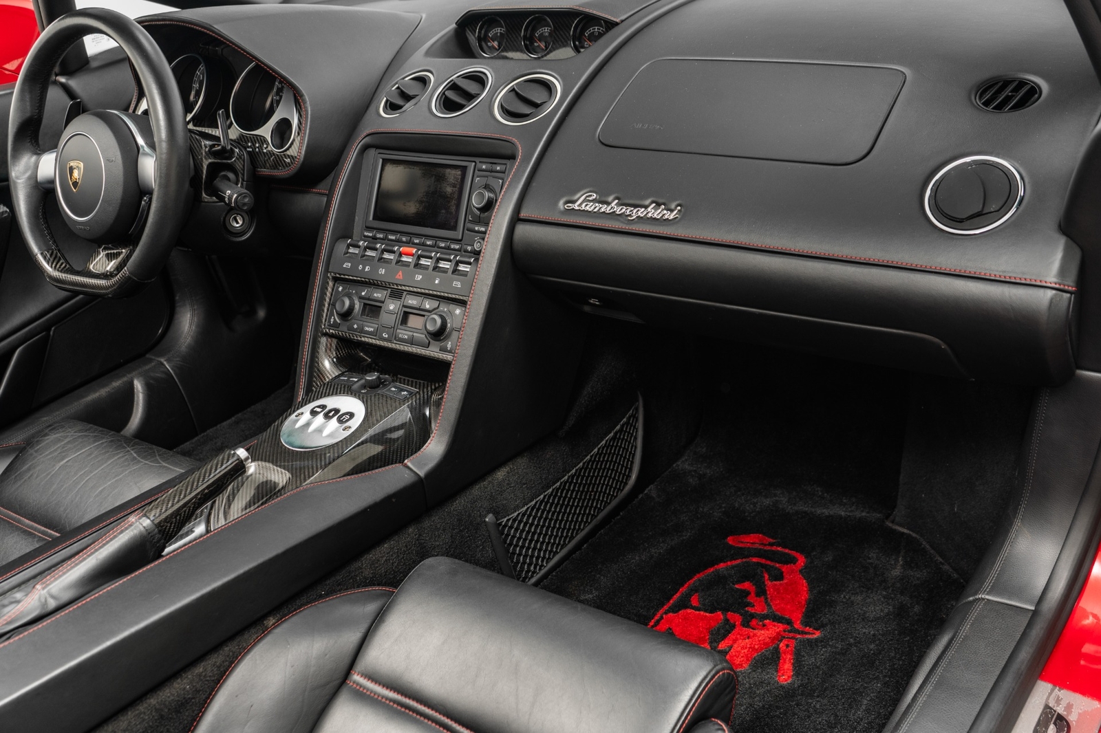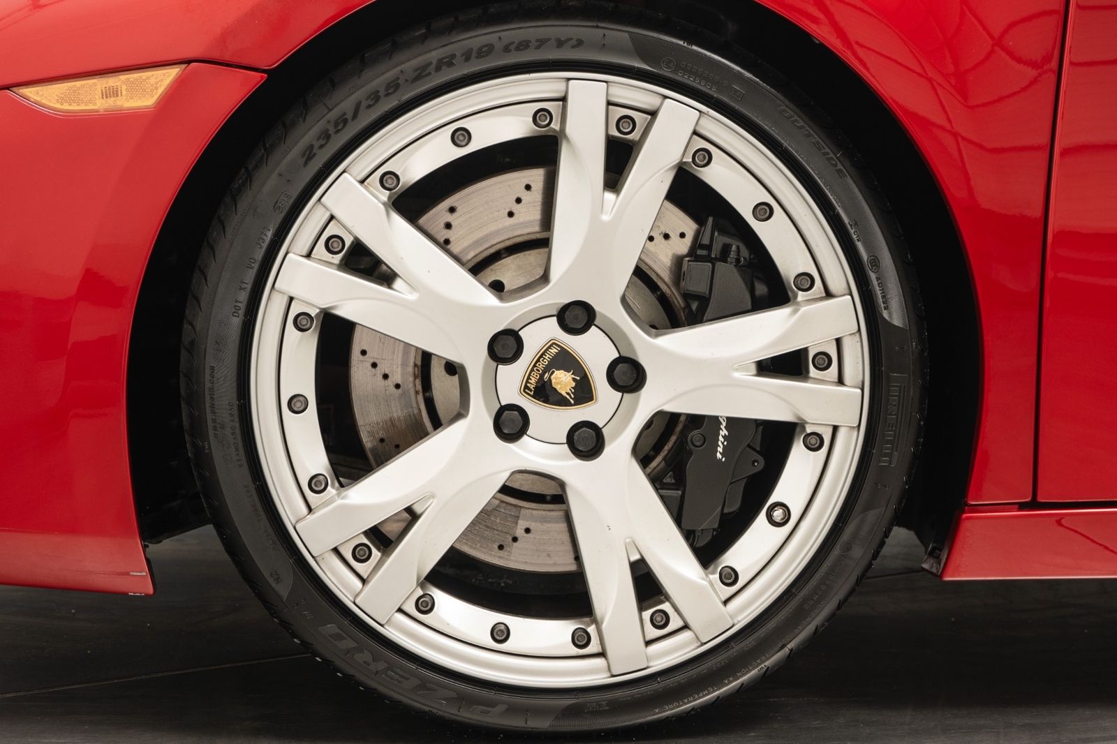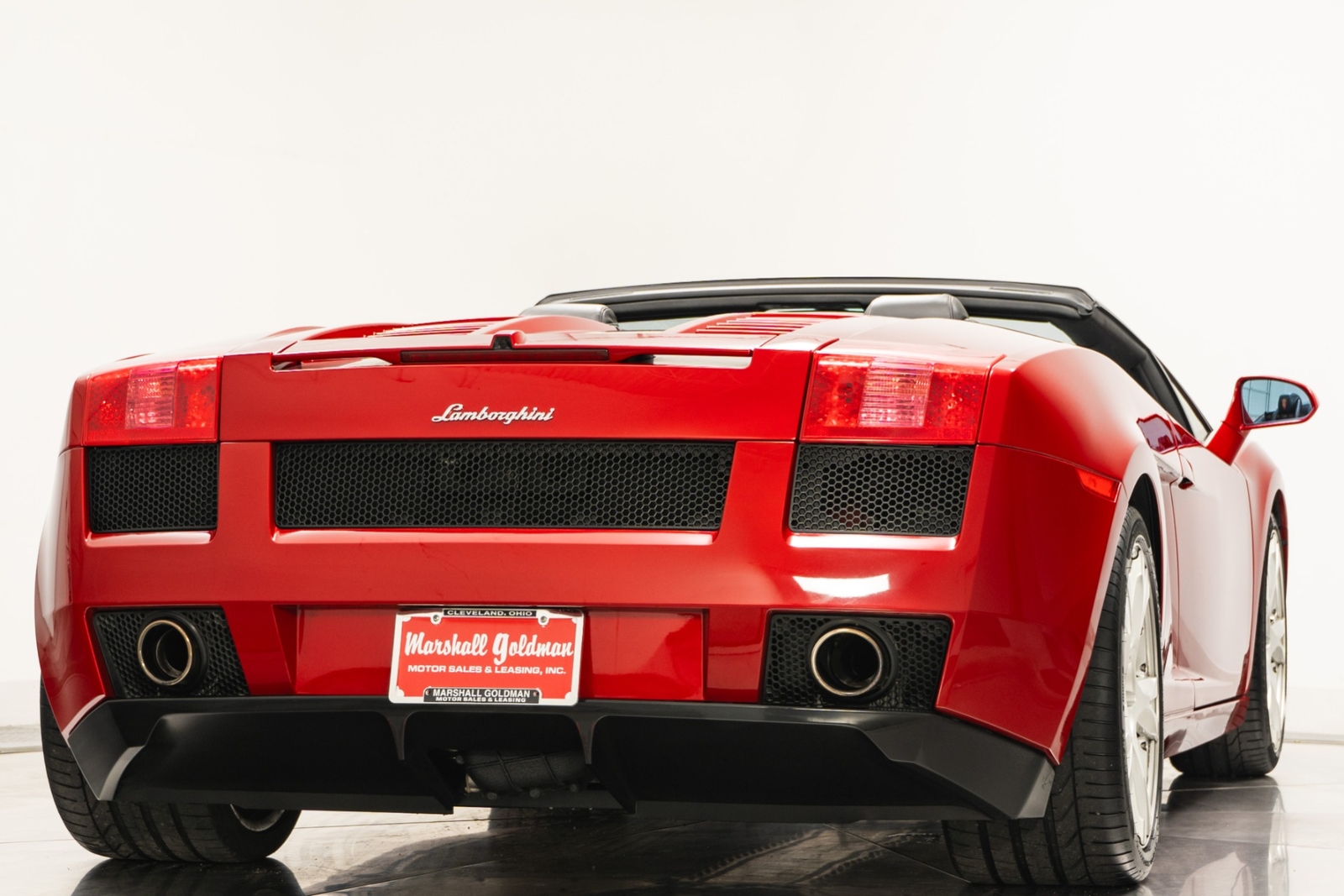 We have just added to our extensive exotic car inventory a beautiful 2007 Lamborghini Gallardo Spyder in Rosso Vik over Nero leather interior and only 12,590 original miles. This Gallardo is loaded with: 5.0 liter V10, 6 speed automatic transmission, 19 inch Callisto alloy wheels, black brake calipers, front axle lift, gloss black windshield surround, carbon fiber interior trim, heated seats, navigation, rear camera, black convertible top, logo floor mats, car cover and much more.