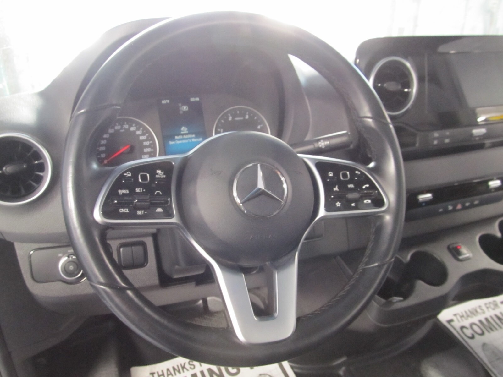 The Premium Plus Package adds luxury and comfort to your mobile kitchen experience, with Radio: MBUX Multimedia System w/10.25 Touchscreen, Remote keyless entry, Steering wheel mounted audio controls, Tachometer, and Tilt steering wheel. Stay informed and safe on the road with features like Traffic Sign Assist and Tray for Smartphones.