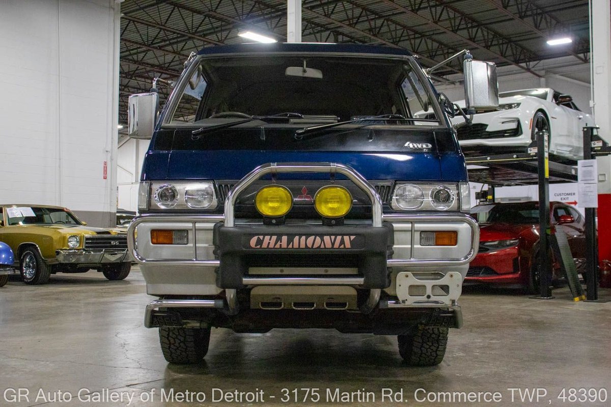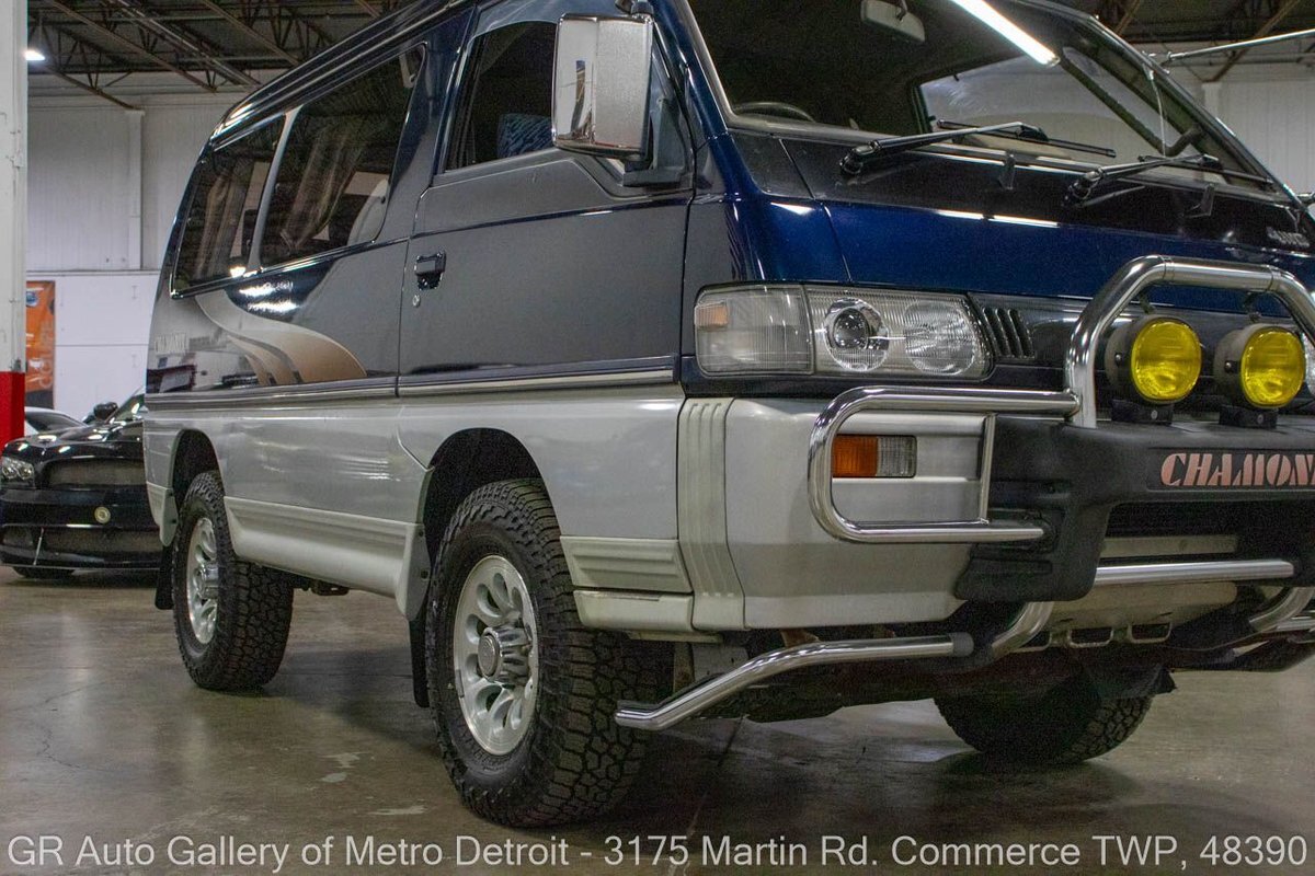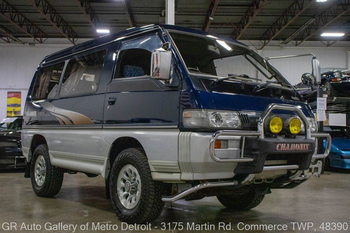 GR Auto Gallery is thrilled to present this imported 1993 Mitsubishi Delica L300 Chamonix Star Wagon for your consideration. This unique Chamonix comes in a striking Blue and silver exterior with a matching Blue interior. Powered by a 2.5 Liter turbocharged diesel 4-cylinder engine and paired with an automatic transmission, this Delica is not only reliable, but fun to drive. With only 57,364 KM on the odometer, this Chamonix has been meticulously maintained and imported from Japan in 2023. The interior is designed for comfort and convenience, with features such as altimeter gauges, powered windows, Chamonix embroidered seats, and a 4 speaker system. Some recent maintenance includes new wheels, windshield, fresh fluids, rear brake lights, and more. Drive this one out of our showroom or have us assist with shipping it to you anywhere in the United States! Don't hesitate to call us with any questions or for more information.