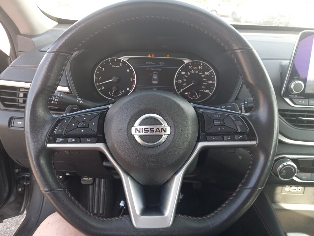 THIS VEHICLE INCLUDES THE FOLLOWING FEATURES AND OPTIONS: CVT with Xtronic, 19 Alloy Wheels, 4-Wheel Disc Brakes, 6 Speakers, ABS brakes, Air Conditioning, Alloy wheels, AM/FM radio: SiriusXM, Auto High-beam Headlights, Blind Spot Warning, Brake assist, Bumpers: body-color, Cruise Control, Delay-off headlights, Driver door bin, Driver vanity mirror, Dual front impact airbags, Dual front side impact airbags, Electronic Stability Control, Four wheel independent suspension, Front anti-roll bar, Front Bucket Seats, Front Center Armrest, Front reading lights, Front Sport Bucket Seats, Fully automatic headlights, Illuminated entry, Knee airbag, Leather Shift Knob, Low tire pressure warning, NissanConnect featuring Apple CarPlay and Android Auto, Occupant sensing airbag, Outside temperature display, Overhead airbag, Overhead console, Panic alarm, Passenger door bin, Passenger vanity mirror, Power door mirrors, Power driver seat, Power steering, Power windows, Radio data system, Radio: AM/FM Audio System, Rear anti-roll bar, Rear Parking Sensors, Rear reading lights, Rear seat center armrest, Rear side impact airbag, Rear window defroster, Remote keyless entry, Security system, Speed-sensing steering, Speed-Sensitive Wipers, Split folding rear seat, Sport Seat Trim, Sport steering wheel, Steering wheel mounted audio controls, Tachometer, Telescoping steering wheel, Tilt steering wheel, Traction control, Trip computer, and Variably intermittent wipers.