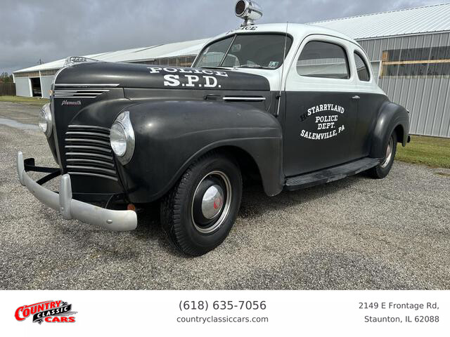 Available now is this classic 1940 Plymouth Business Coupe finished in the traditional black and white police colors with a working vintage siren mounted on the roof. The interior is in excellent condition and finished in all tan. this Plymouth is powered by an inline 6-cylinder engine mated to a 3-speed manual transmission. This car was owned by a police department and utilized for parades and various promotional events. It runs and drives excellent and would make for a great attention grabbing classic car at any car show, cruise, or parade.