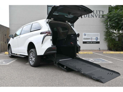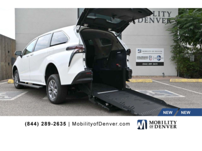 Door Opening Height: 57" and width: 39.5". IN-STOCK. *Qualifies for a $1,000 Toyota Mobility Rebate. New 2024 Toyota Sienna LE Vantage Mobility Hybrid Manual Fold-Out Ramp Rear Entry Ramp van for sale. Up to 120-month finance available, WAC. Built by Vantage Mobility, this feat of engineering is a sight to behold. A true disability equipped handicap wheelchair accessible ramp van that was designed with simple & easy to use in mind with a large ramp and tons of interior room. ADA compliant 57 inch height clearance rear entry, low maintenance durable no-skid ramp, long channel cut lowered floor for up to 2 wheelchairs for 3+2 seating with a fixed bucket seats in the middle row. Q'Straint wheelchair tie-down straps and floor rails throughout. This brand new Sienna LE also comes packed with great features from Toyota: beautiful white exterior, gray cloth interior, Toyota Safety Sense 2.0 w/Pre-Collision Sys w/Pedestrian Detection, Full-Speed Range Dynamic Radar Cruise Control, Lane Departure Alert w/Steering Assist, Lane Tracing Assist, Automatic High Beams, Road Sign Assist STAR Safety System LATCH-Lower Anchor & Tether for Children Blind Spot Monitor w/ RCTA Remote Keyless Entry & Push Button Start Connected Services Capable. 4G network dependent, LED Headlights with Auto On/Off Feature Dual Power Sliding Side Doors Color-Keyed Power Outside Heated Mirrors with Integrated Blind Spot Warning 17-in Wheels, Audio- 9-in. Touchscreen w/6-Speakers, Apple CarPlay & Android Auto Compatible SiriusXM w/3-Month Platinum Plan Trial USB Media Port, 6 USB Charge Ports Three Zone Auto Climate Control w/ Rear Cabin Controls Fabric-Trimmed Seats, Power Driver Seat, smooth and efficient 2.5L 6-cylinder Hybrid Toyota powertrain with front wheel drive, and much more. This vehicle is currently available for sale at Mobility of Denver, located at: 2311 S Platte River Drive, Denver CO 80223. We don't charge a Dealer Handling Fee and are now your mobility one-stop-shop. Just give us a call as we offer it all: sales, service, parts, and rentals. Open M-F 9am - 6pm. Sat by appt. Call 303-351-7904