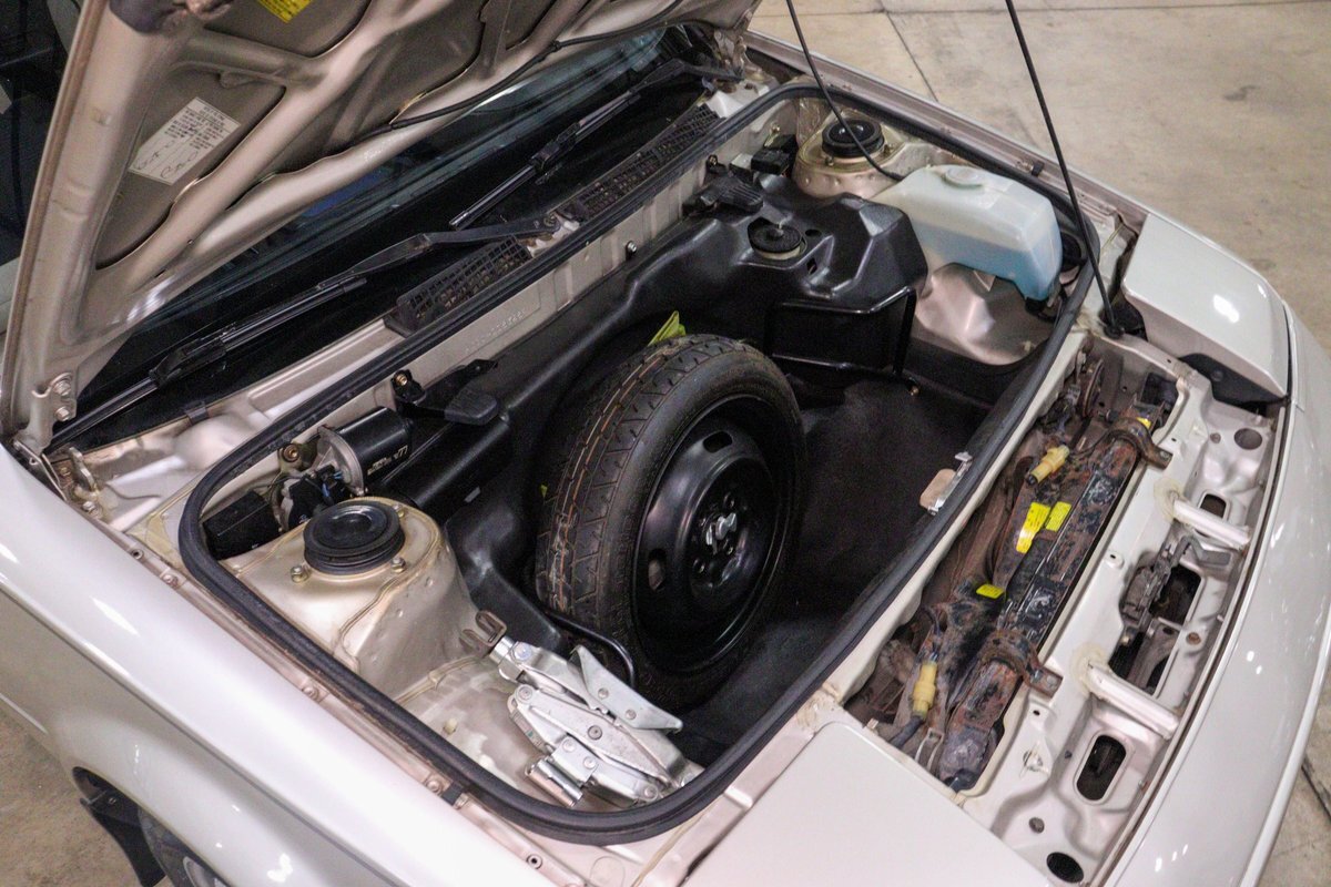 The exterior of this MR2 is finished in a stunning Light Beige Metallic paint, accentuating its sharp, angular lines and sporty stance. The pop-up headlights add a distinctive touch, while the wedge-shaped profile and side air intakes highlight its aerodynamic efficiency. The compact dimensions and low stance not only contribute to its striking appearance but also improve stability at higher speeds. Every design element serves a purpose, making the MR2 a perfect blend of form and function.