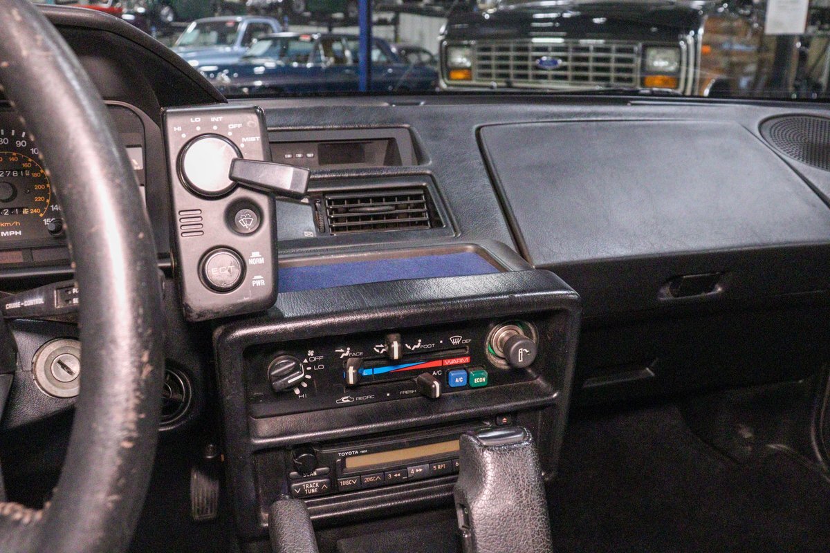Inside, the 1986 MR2 offers a driver-focused cockpit with a layout as intuitive as a well-orchestrated symphony. The clean dashboard features easy-to-read gauges, ensuring all vital information is accessible at a glance. The green backlit gauges add a touch of nostalgia, casting a warm, inviting glow that enhances the driving experience during nighttime journeys. Bucket seats provide excellent support, essential for spirited driving, while maintaining comfort for everyday use. Despite its compact size, the MR2's interior is surprisingly spacious, offering ample legroom and headroom for both occupants. Quality materials and a thoughtful layout contribute to a pleasant and engaging driving experience.