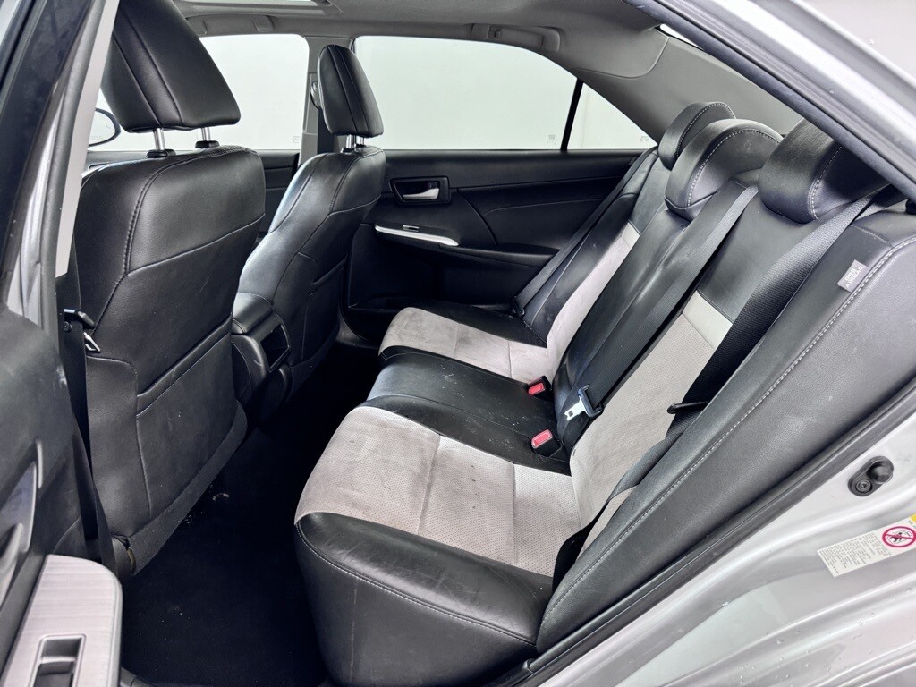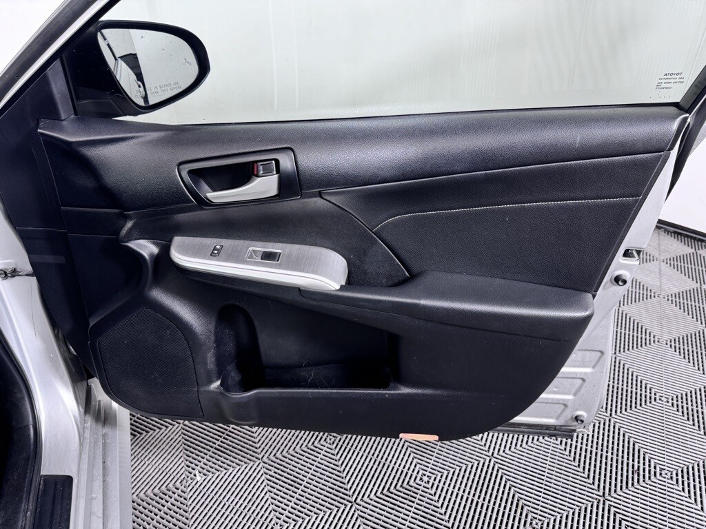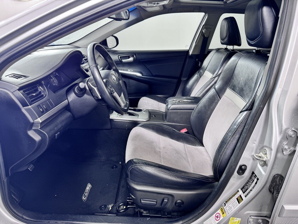 Classic Silver Metallic 2014 Toyota Camry SE 2014.5 FWD 6-Speed Automatic 3.5L V6 SMPI DOHC Moonroof, Camry SE 2014.5, 4D Sedan, 3.5L V6 SMPI DOHC, 6-Speed Automatic, FWD, Classic Silver Metallic, Black/Ash 2-Tone w/SofTex Seat Trim, ABS brakes, Alarm & Immobilizer Anti-Theft System, Alloy wheels, Convenience Package, EC Auto-Dimming Rearview Mirror w/ Compass, Electronic Stability Control, Heated door mirrors, HomeLink Universal Transceiver, Illuminated entry, Low tire pressure warning, Remote keyless entry, Traction control.