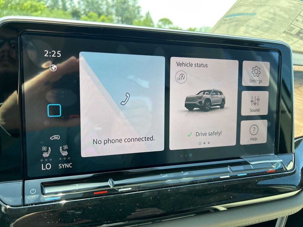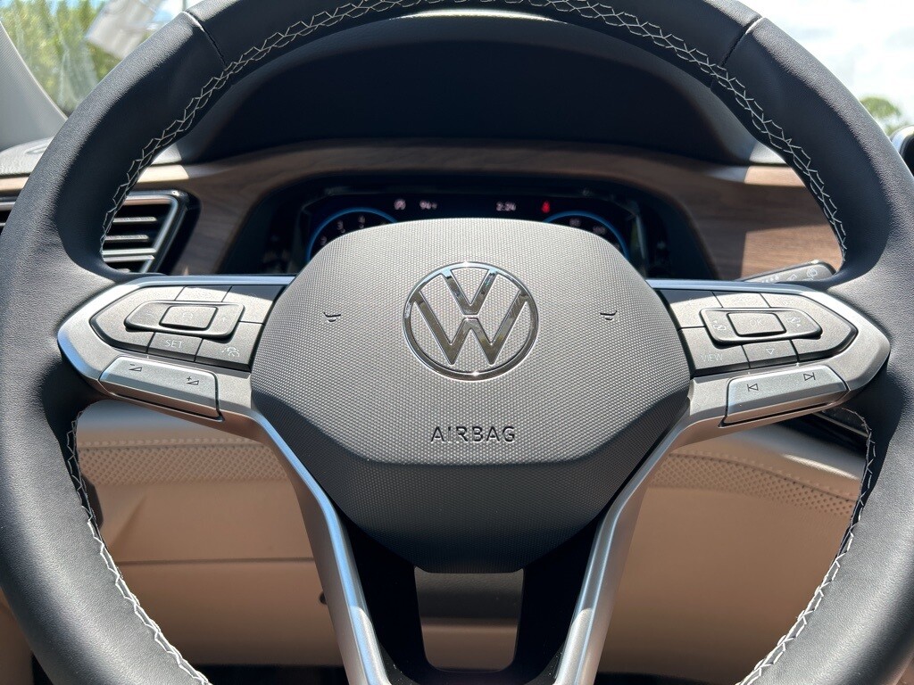 Bluetooth, Backup Camera, 3.60 Axle Ratio, 3rd row seats: split-bench, 4-Wheel Disc Brakes, 6 Speakers, ABS brakes, Air Conditioning, Alloy wheels, AM/FM radio: SiriusXM with 360L, Auto-dimming Rear-View mirror, Automatic temperature control, Brake assist, Bumpers: body-color, Compass, Delay-off headlights, Driver door bin, Driver vanity mirror, Dual front impact airbags, Dual front side impact airbags, Electronic Stability Control, Emergency communication system: VW Car-Net Safe & Secure 5-year, Exterior Parking Camera Rear, Four wheel independent suspension, Front anti-roll bar, Front Bucket Seats, Front Center Armrest, Front dual zone A/C, Front fog lights, Front reading lights, Fully automatic headlights, Heated door mirrors, Heated front seats, Heated steering wheel, Heated/Actively Ventilated Front Bucket Seats, Illuminated entry, Low tire pressure warning, Occupant sensing airbag, Outside temperature display, Overhead airbag, Overhead console, Panic alarm, Passenger door bin, Passenger vanity mirror, Perforated V-Tex Leatherette Seating Surfaces, Power door mirrors, Power driver seat, Power steering, Power windows, Radio data system, Radio: MIB3 Composition Media, Rain sensing wipers, Rear air conditioning, Rear anti-roll bar, Rear reading lights, Rear seat center armrest, Rear window defroster, Rear window wiper, Remote keyless entry, Roof rack: rails only, Security system, Speed control, Speed-sensing steering, Split folding rear seat, Spoiler, Standard Suspension, Steering wheel mounted audio controls, Tachometer, Telescoping steering wheel, Tilt steering wheel, Traction control, Trip computer, Turn signal indicator mirrors, Variably intermittent wipers, Ventilated front seats, and Wheels: 18 2-Tone Machined Alloy. 20/27 City/Highway MPG