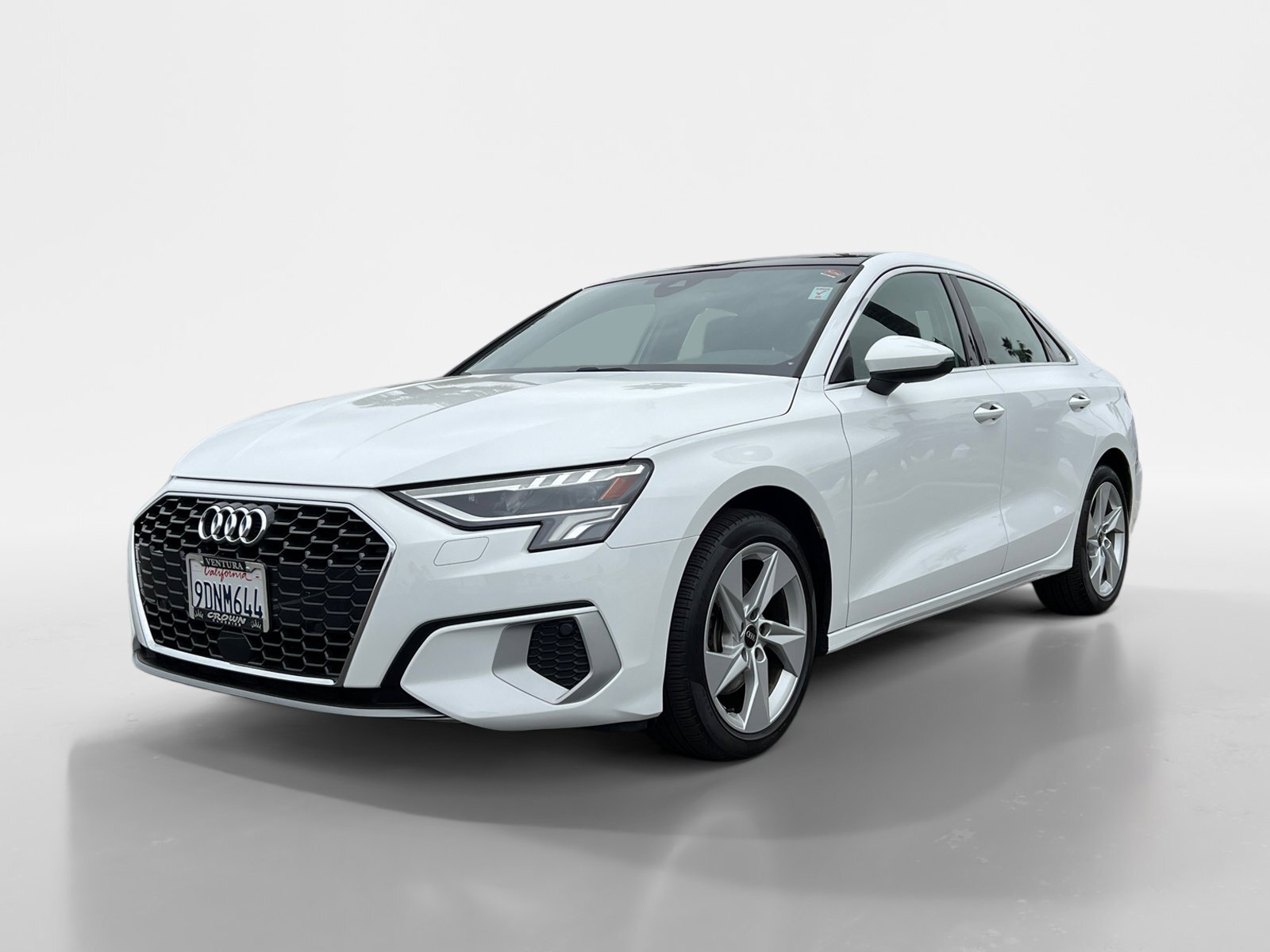 Ibis White 2023 Audi A3 40 Premium FrontTrak FrontTrak 7-Speed Automatic S tronic 2.0L 4-Cylinder TFSI Black/Rock Gray Stitching w/Leather Seating Surfaces, Alloy wheels, Audi Sound System, Automatic temperature control, Emergency communication system, Exterior Parking Camera Rear, Front dual zone A/C, Fully automatic headlights, Heated door mirrors, Heated front seats, Illuminated entry, Leather Seating Surfaces, Outside temperature display, Overhead console, Power door mirrors, Power driver seat, Power moonroof, Power passenger seat, Radio: Audi Sound System, Rear air conditioning, Rear fog lights, Rear window defroster, Remote keyless entry, Split folding rear seat, Steering wheel mounted audio controls, Turn signal indicator mirrors.Here at Crown Dodge Chrysler Jeep RAM, we believe that great service means more than just offering our new Dodge, Chrysler, Jeep, and RAM lineup. We believe that great service also includes helpful advice, friendly car financing, and the highest quality parts and repairs for your car. Our staff works hard to make your full automotive experience at our car dealership in Ventura, CA enjoyable, and we look forward to helping you today! All vehicles at Crown Dodge have our SWAT security system $995,Clear Shield $395, Pulse $395, Wheel Locks $395, Windshield Protection $995, Nitro Fill $499, Screen Protector $395 and $1295 Paint/Fabric Protection pre-installed. Prices on the website do not include dealer-added equipment. Discounts include $2,000 Trade-In Dealer Assist Cash. Must trade in a 2015 or newer vehicle on a retail purchase. Trade-in must have less than 15,000 miles on average per year stated on Carfax Report, clean title, and Clean vehicle history report. Expires 02/19/2024. Expires 02/29/2024.