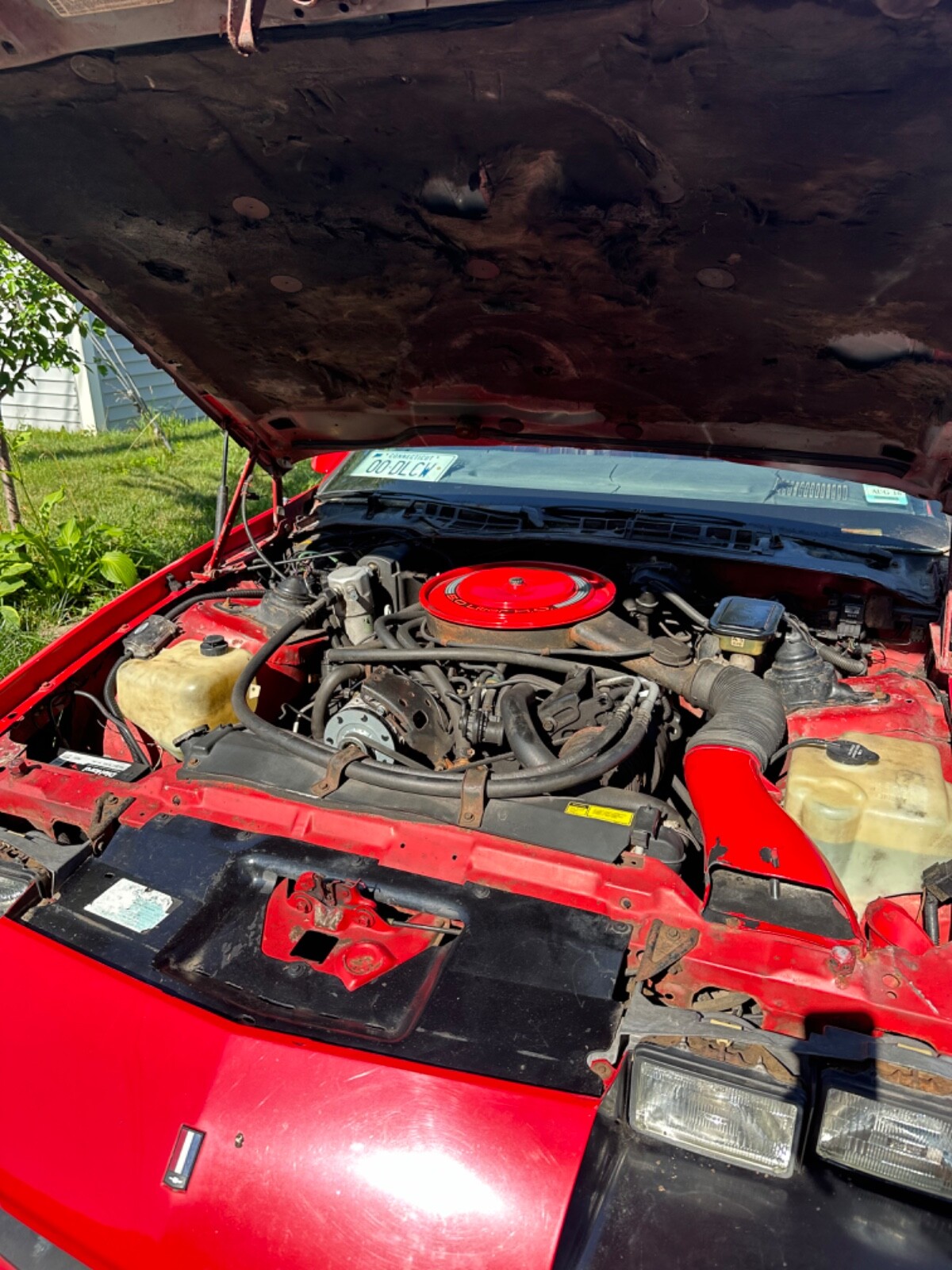 1986 iron z in red with a 350 mounted to a 700R4 transmission.