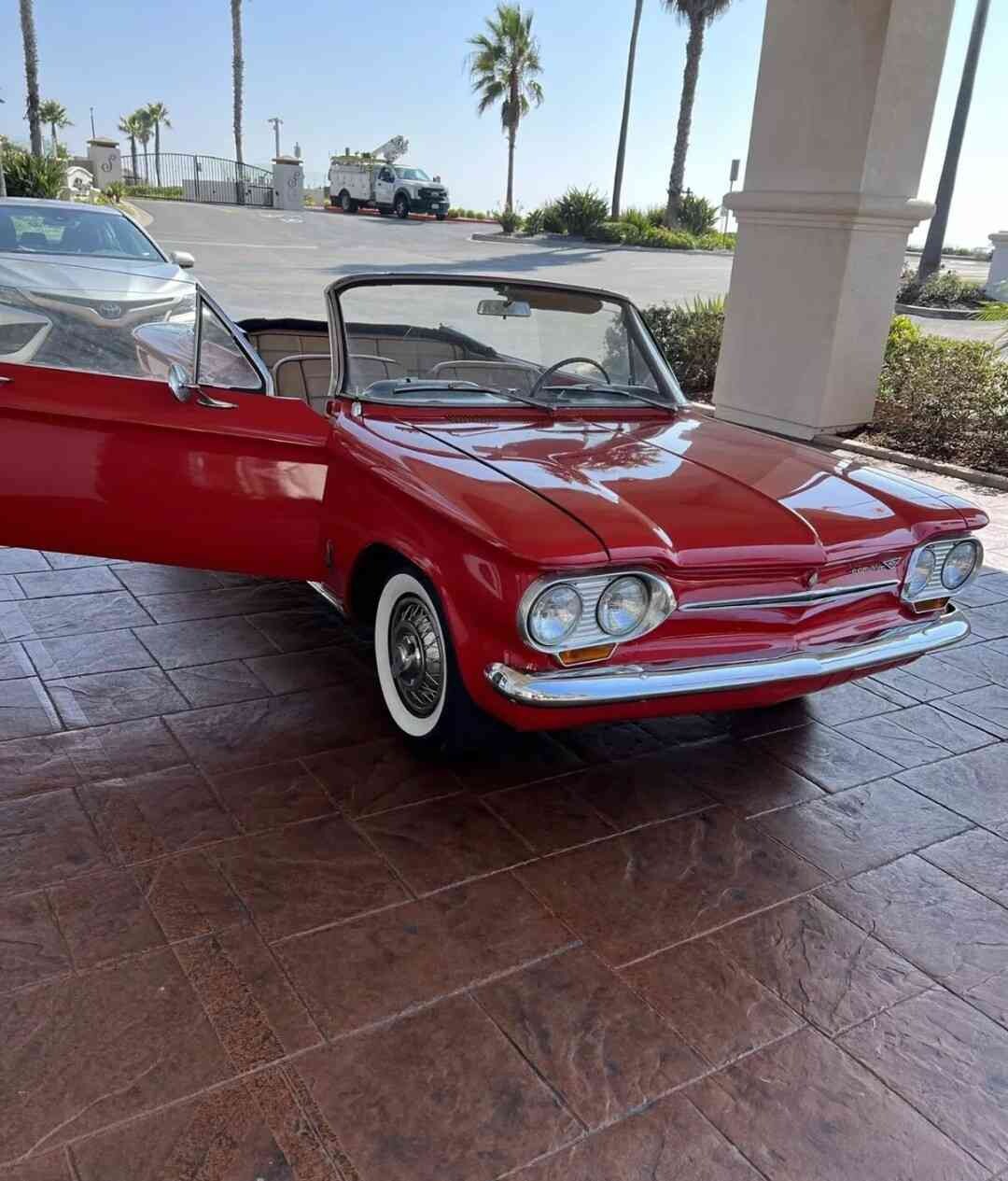Stunning Ember Red 1963 Chevrolet Corvair with a new Clarke's convertible top, a new custom interior and a fully rebuilt engine. The correct 102 hp engine is mated to a properly working 2 speed automatic “Power glide" transmission. This beautiful convertible is perfect for a summer full of wonderful memories by the beach or in the peaceful desert. The following has been done in the last 6 years of ownership; 1. Fully rebuilt engine by Mike's Corvair Parts including remanufactured heads by Engine Machine Services $6500 2. New Clarke's Corvair top $1600 3. Brakes job including new master cylinder. $900 4. New custom upholstery and door panels $2500 5. Correct two spinner wire wheel covers $250. 6. New vent window rubbers $600 7. New pitman arm bushing $100 8. New door felts (fuzzies) $300 9. Rebuilt '65 carburetors (best carbs) $500 10. Pertronix ignition $150 11. Upgraded to higher output self regulating alternator from old low output generator. $300 12. Rechomed front bumper $400 13. Repaint in Ember Red. Done by previous owner. . Very shiny and smooth base coat/clear coat paint with good blocking and adhesion after 6 plus years. Some chips that have been touched up and decent color sanding and blocking. $5000 paint iob. New Front brakes, hoses, and repaired brake line New Starter, Distributor, and Motor Notes on the rebuilt Corvair 1963 102 hp engine: New Egge cast pistons, Hastings cast rings, Cylinders bored and honed by Engine Machine Service (Inglewood, CA) New Main and Connecting Rod Bearings Heads remanufactured by Engine Machine Service Rebuilt Crankshaft by Castillo's Crankshaft (La Mirada / Santa Fe Springs) Isky 270 Camshaft Elgin Hydraulic Lifters Rebuilt 1965 carburetors (with power enrichment circuits) Clark's Corvair engine oil pump New seals and gaskets (viton pushrod tube seals, viton oil cooler seals, and copper head gaskets) Rebuilt crankcase cover with new bearing Rebuilt idler bearing Remanufactured torque converter All this is about $23k to get this car to its current state. Nothing needs to be done to drive and enjoy this car. If you don't have the asking price in cash, in person, kindly do not consider this car.Vehicle Details
