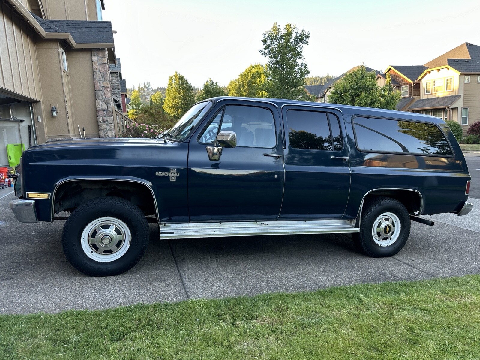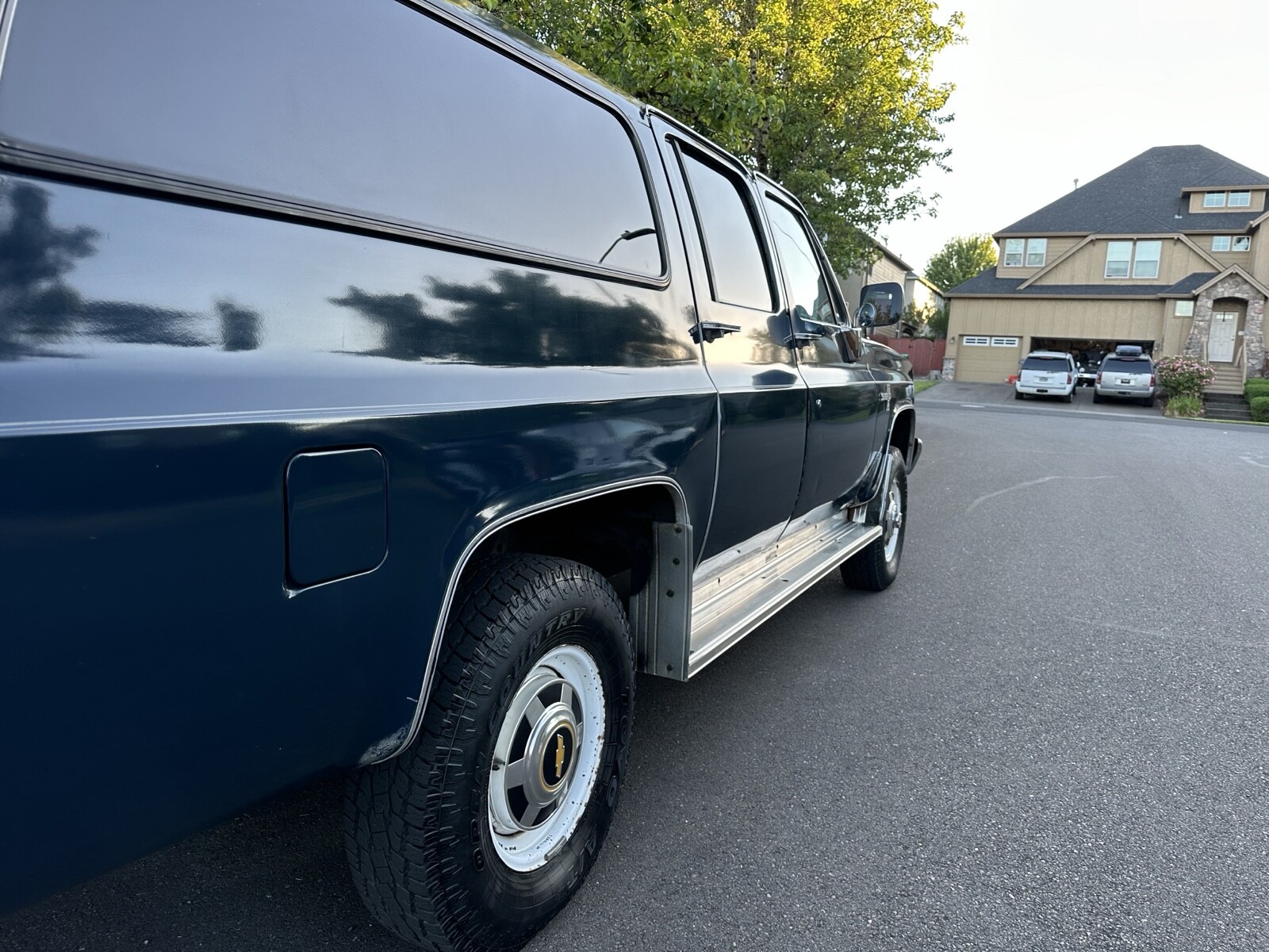 Window sticker on this burb was over 26k! Silverado package, Barn Doors, original spare tire still there and UN-TOUCHED! Best of all it’s about as rust free as they come! A small bubble starting in the lower rear quarter and the rest is clean enough to eat off of.