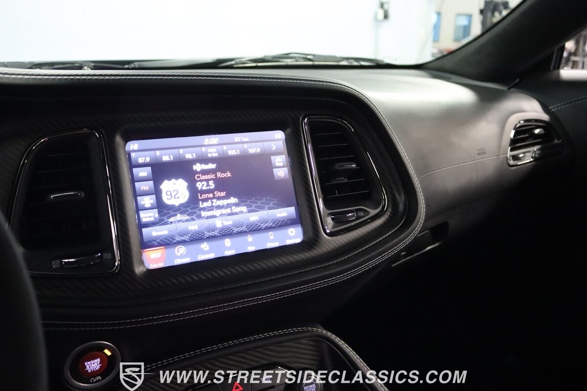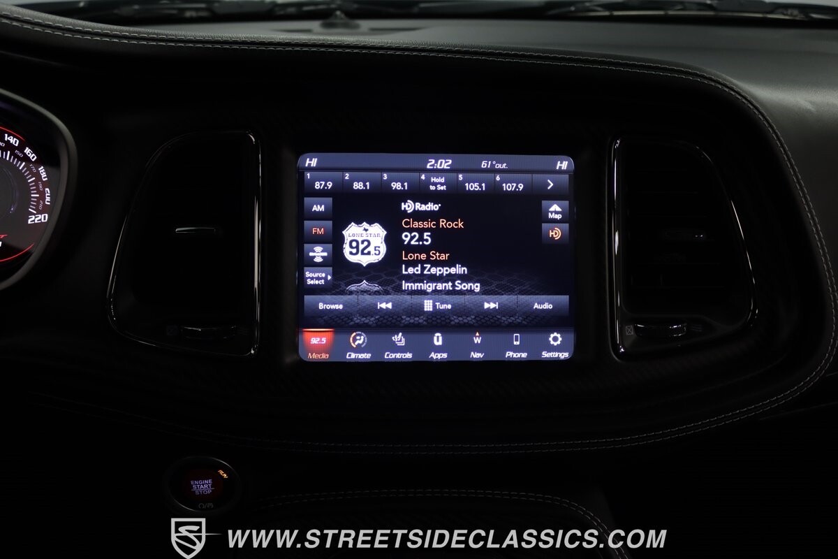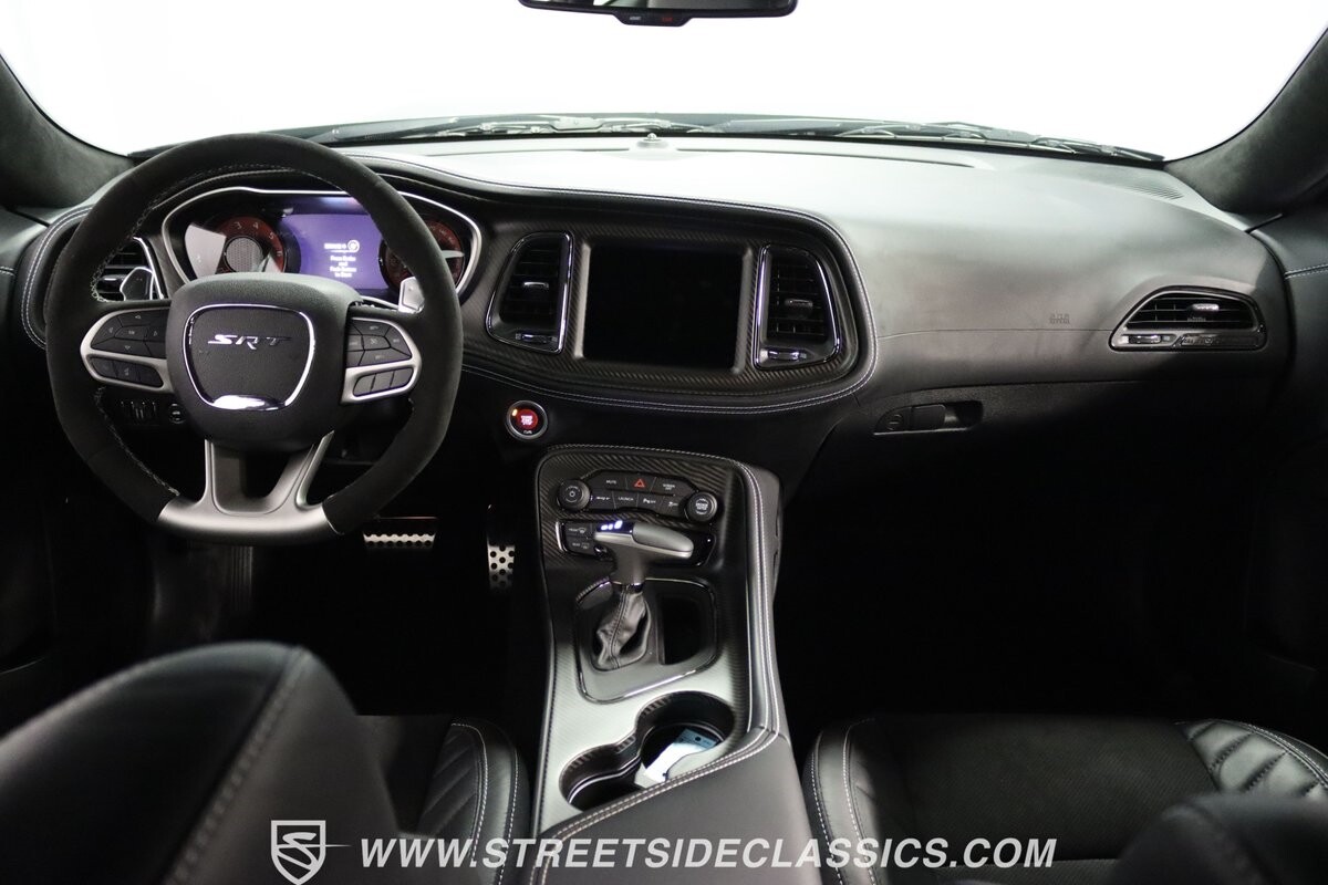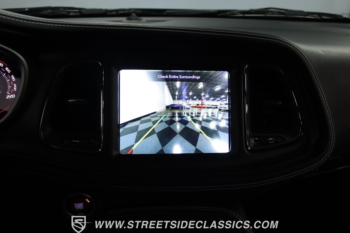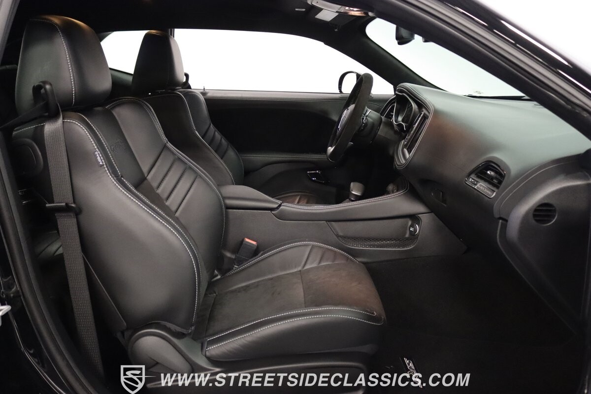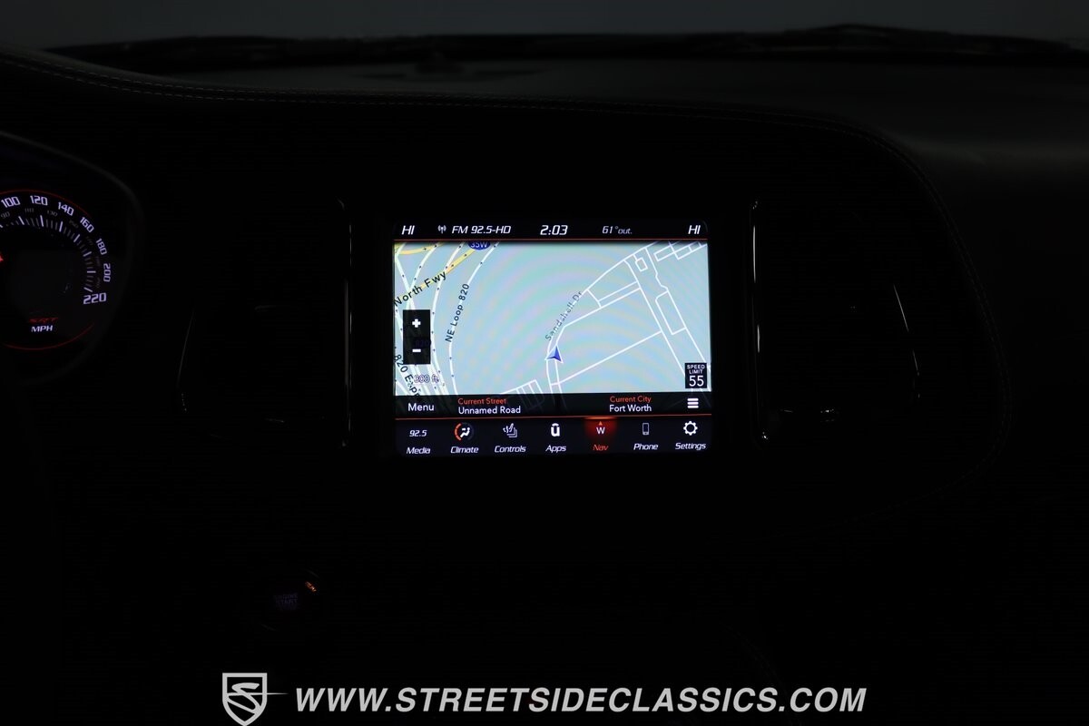 The cockpit of this Hellcat is a symphony of black, with seats clad in premium leather and suede, while the center console stands as a testament to ergonomics and style. Every touchpoint, from the suede steering wheel to the tactile floor shifter, speaks of a drive-focused experience. The driver is treated to modern conveniences like a state-of-the-art touch screen interface, ensuring all controls are at their fingertips. Push-button start ignites this Ghost with a simple press. This Dodge Challenger comes with comfort features like air conditioning, heated power seats, and an advanced navigation system enhancing the drive, with the added assurance of safety and convenience through features like anti-lock brakes, a backup camera, and an always secure Anti-theft system.
