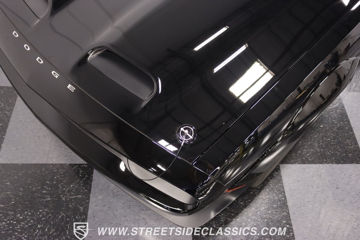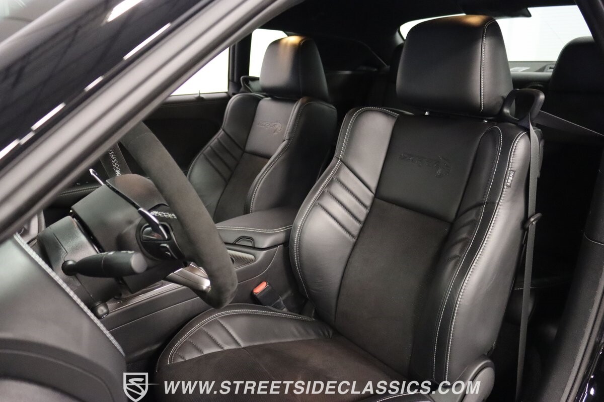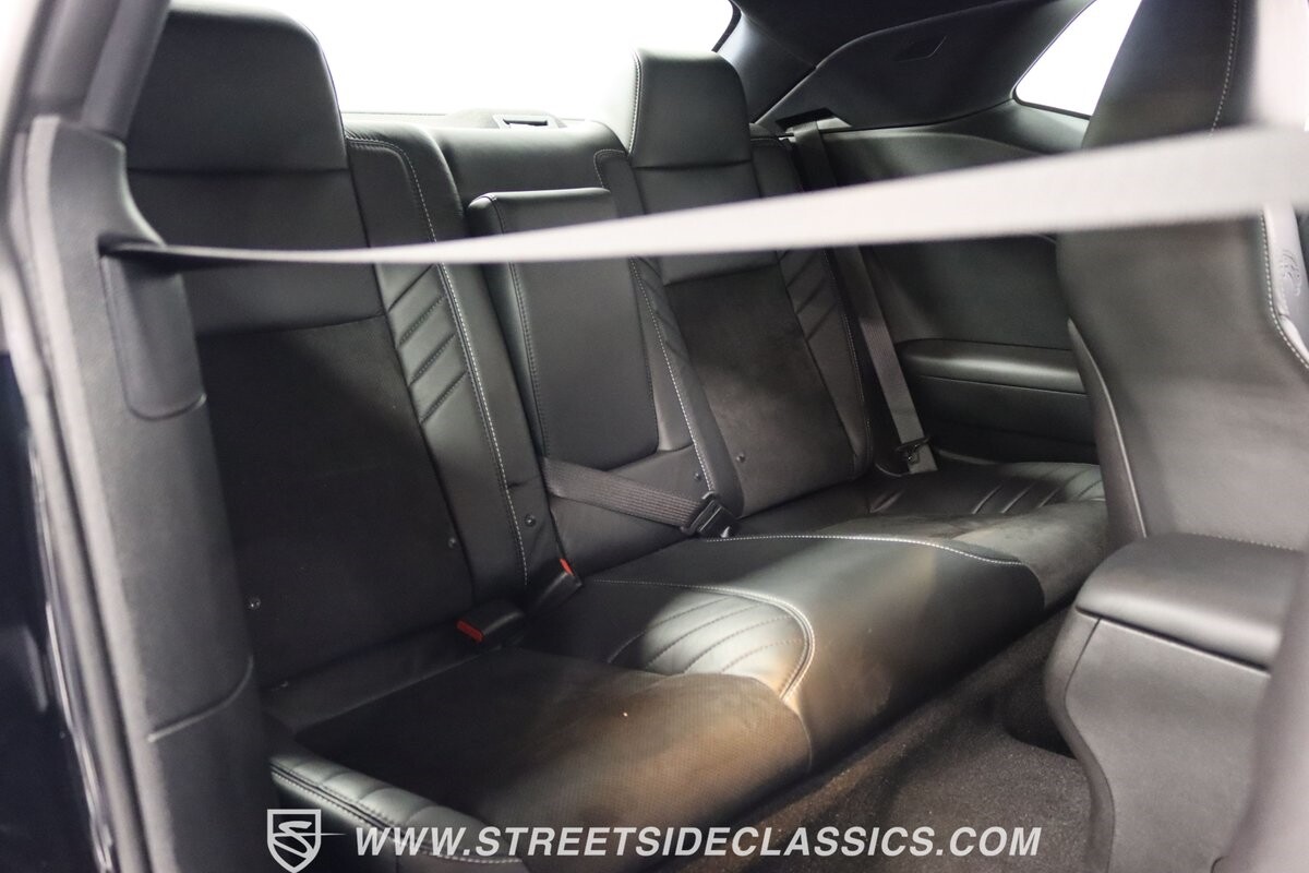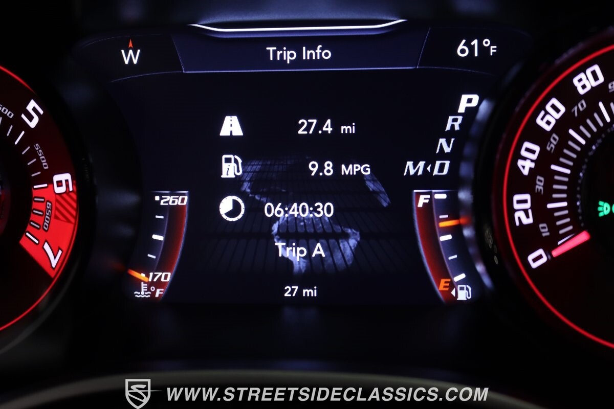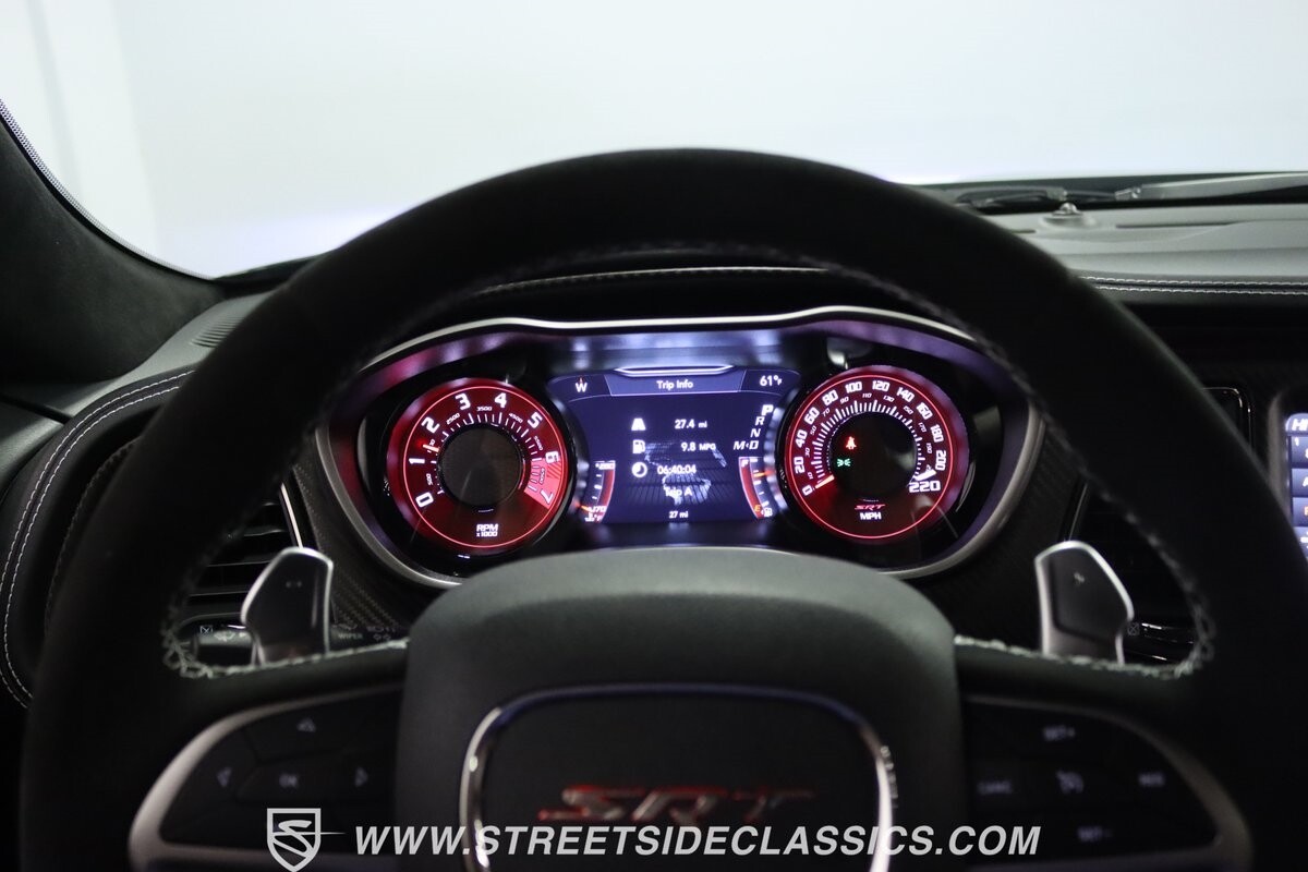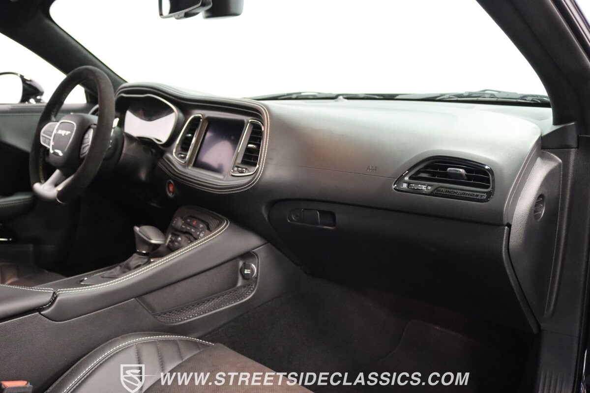 The cockpit of this Hellcat is a symphony of black, with seats clad in premium leather and suede, while the center console stands as a testament to ergonomics and style. Every touchpoint, from the suede steering wheel to the tactile floor shifter, speaks of a drive-focused experience. The driver is treated to modern conveniences like a state-of-the-art touch screen interface, ensuring all controls are at their fingertips. Push-button start ignites this Ghost with a simple press. This Dodge Challenger comes with comfort features like air conditioning, heated power seats, and an advanced navigation system enhancing the drive, with the added assurance of safety and convenience through features like anti-lock brakes, a backup camera, and an always secure Anti-theft system.
