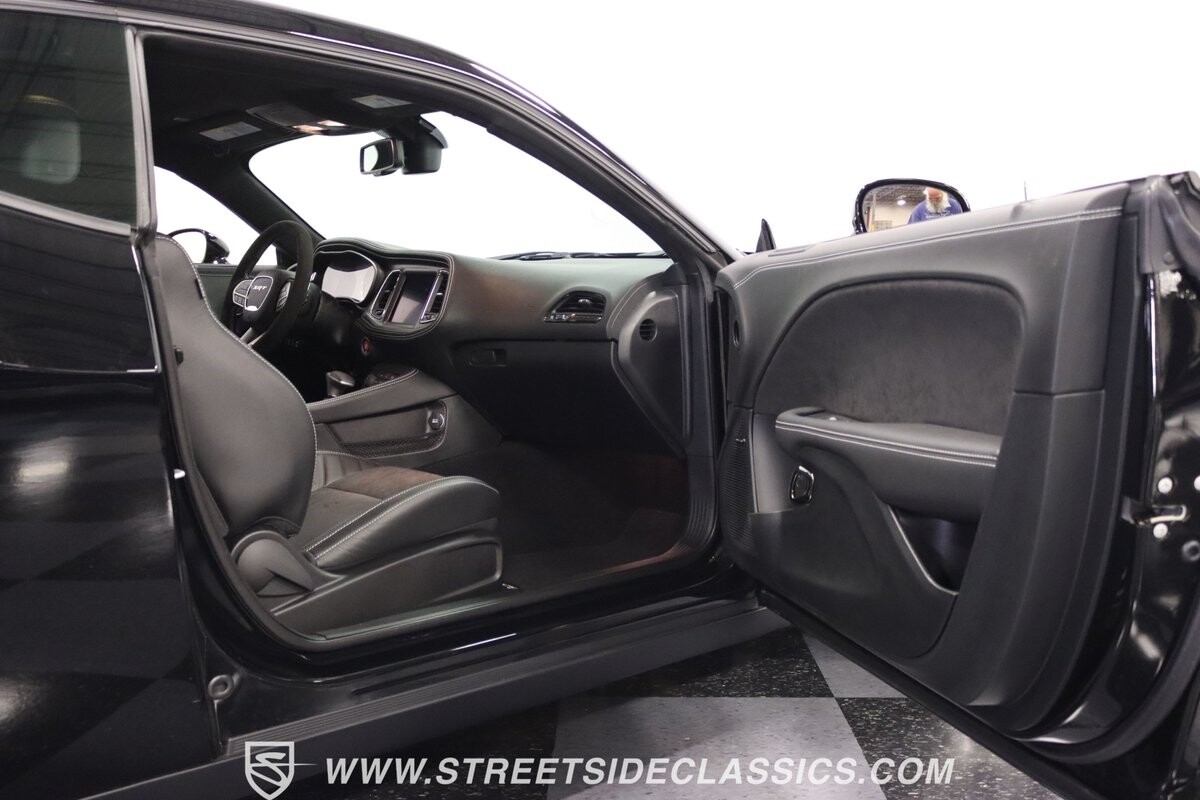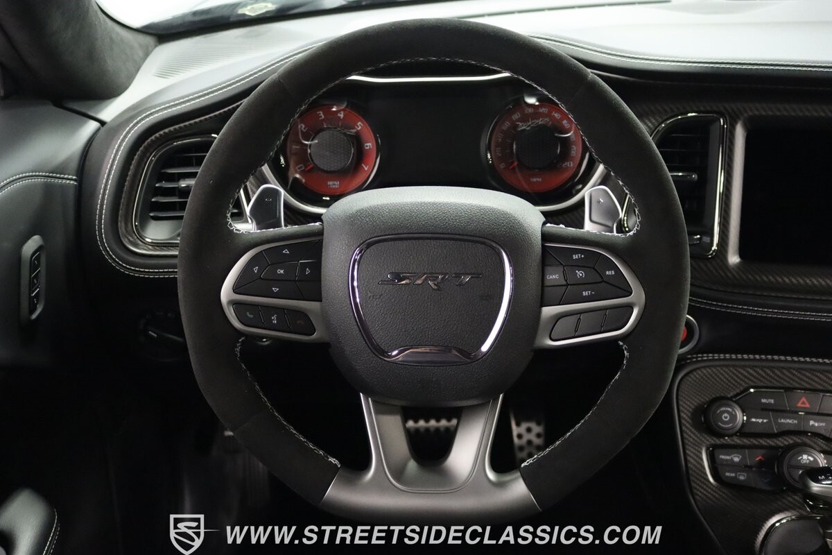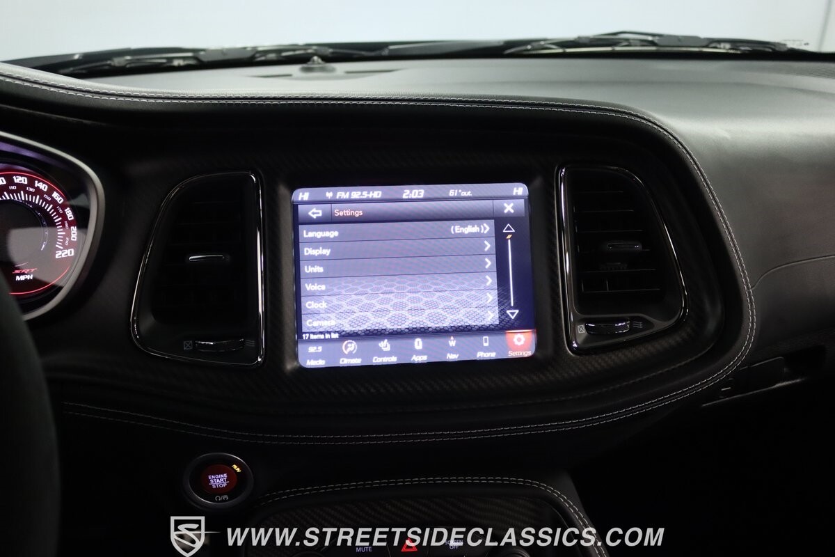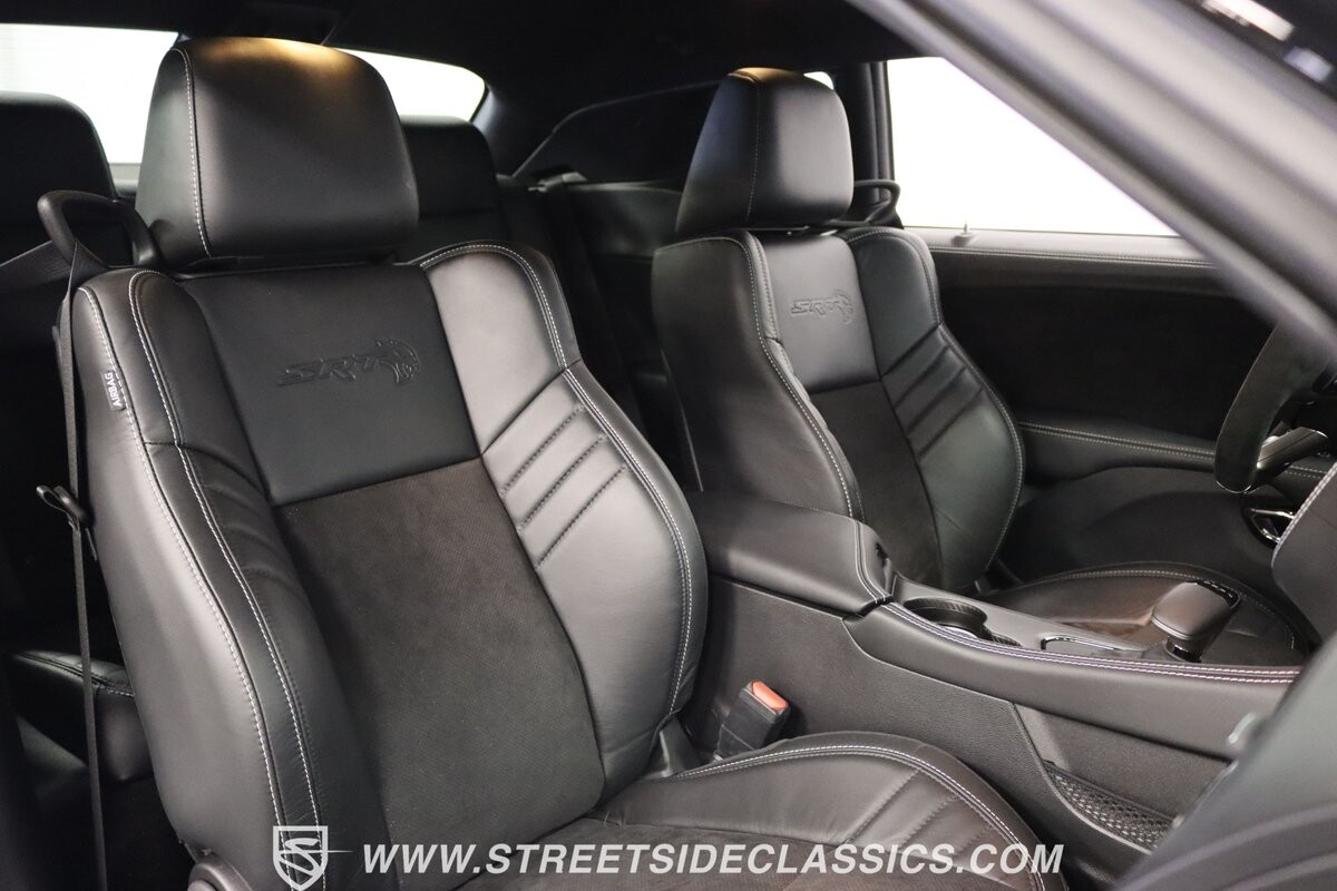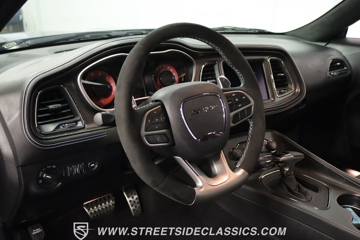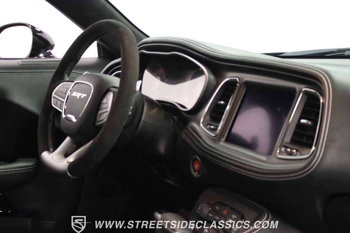 The cockpit of this Hellcat is a symphony of black, with seats clad in premium leather and suede, while the center console stands as a testament to ergonomics and style. Every touchpoint, from the suede steering wheel to the tactile floor shifter, speaks of a drive-focused experience. The driver is treated to modern conveniences like a state-of-the-art touch screen interface, ensuring all controls are at their fingertips. Push-button start ignites this Ghost with a simple press. This Dodge Challenger comes with comfort features like air conditioning, heated power seats, and an advanced navigation system enhancing the drive, with the added assurance of safety and convenience through features like anti-lock brakes, a backup camera, and an always secure Anti-theft system.