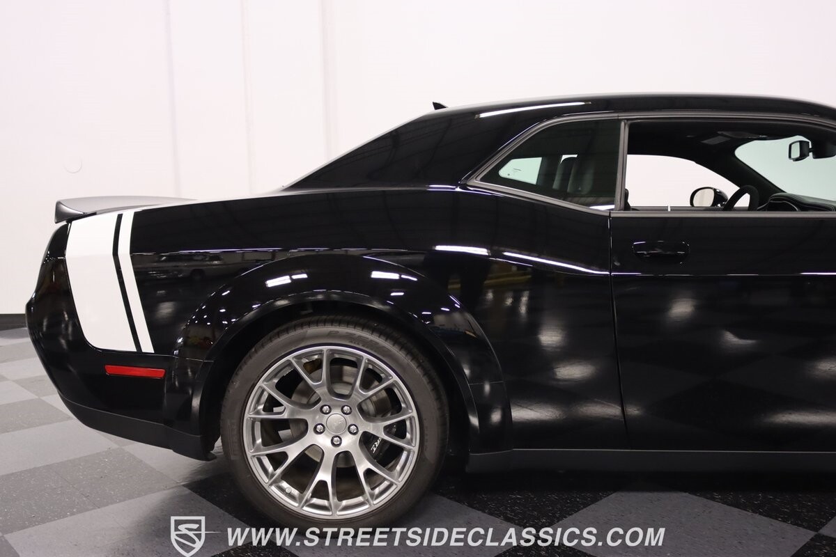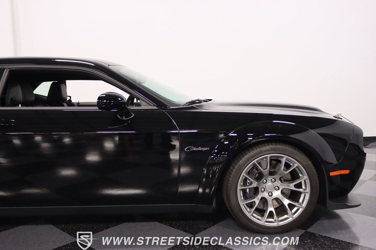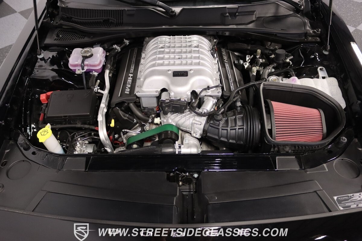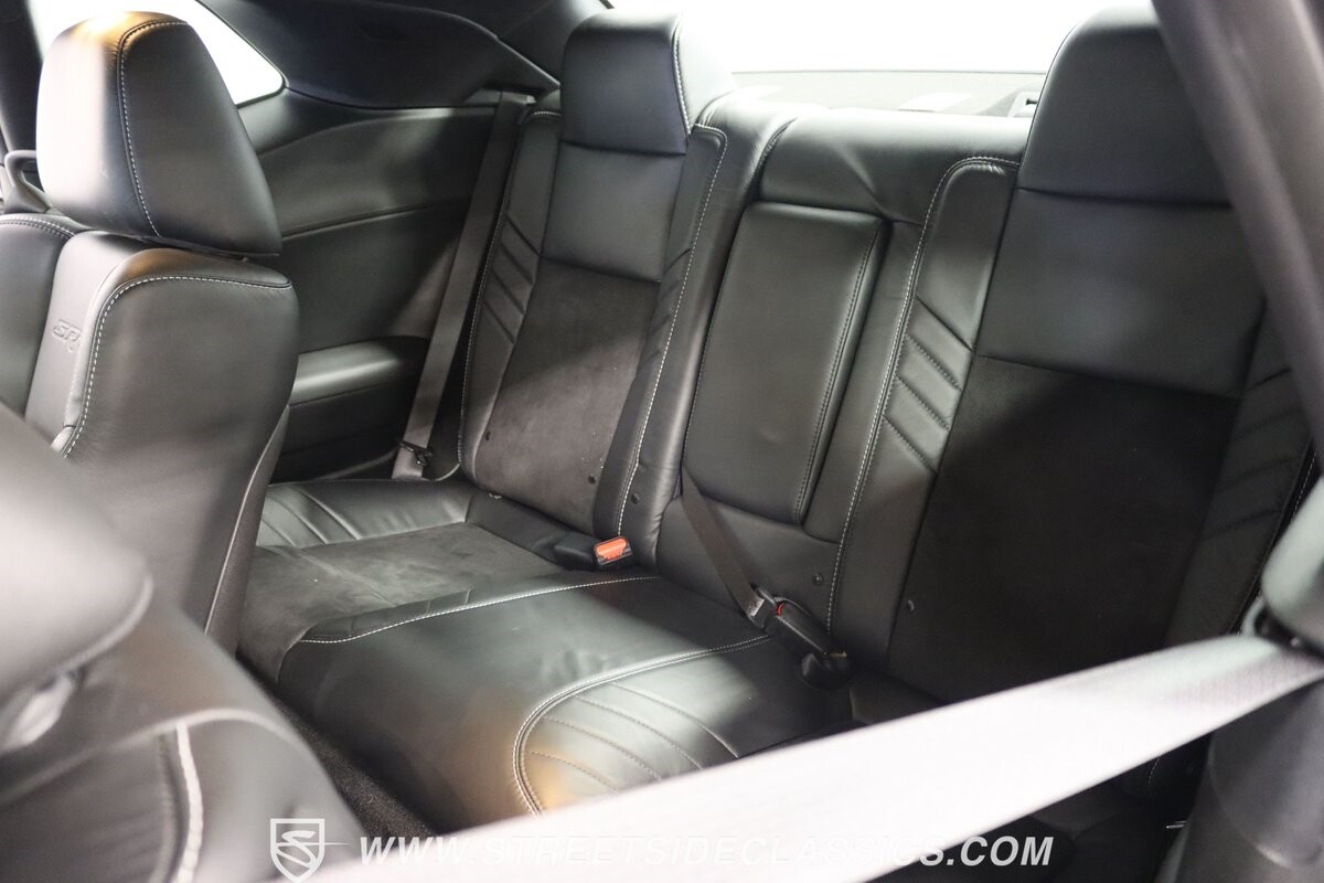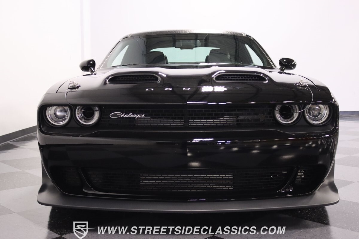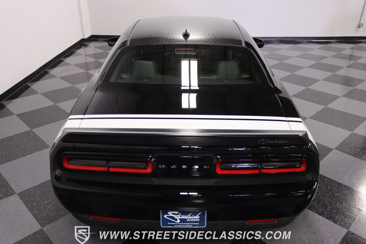 The cockpit of this Hellcat is a symphony of black, with seats clad in premium leather and suede, while the center console stands as a testament to ergonomics and style. Every touchpoint, from the suede steering wheel to the tactile floor shifter, speaks of a drive-focused experience. The driver is treated to modern conveniences like a state-of-the-art touch screen interface, ensuring all controls are at their fingertips. Push-button start ignites this Ghost with a simple press. This Dodge Challenger comes with comfort features like air conditioning, heated power seats, and an advanced navigation system enhancing the drive, with the added assurance of safety and convenience through features like anti-lock brakes, a backup camera, and an always secure Anti-theft system.