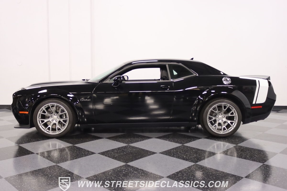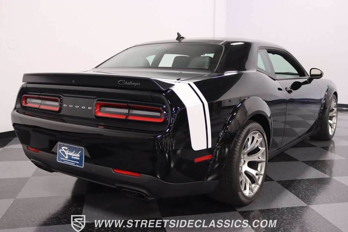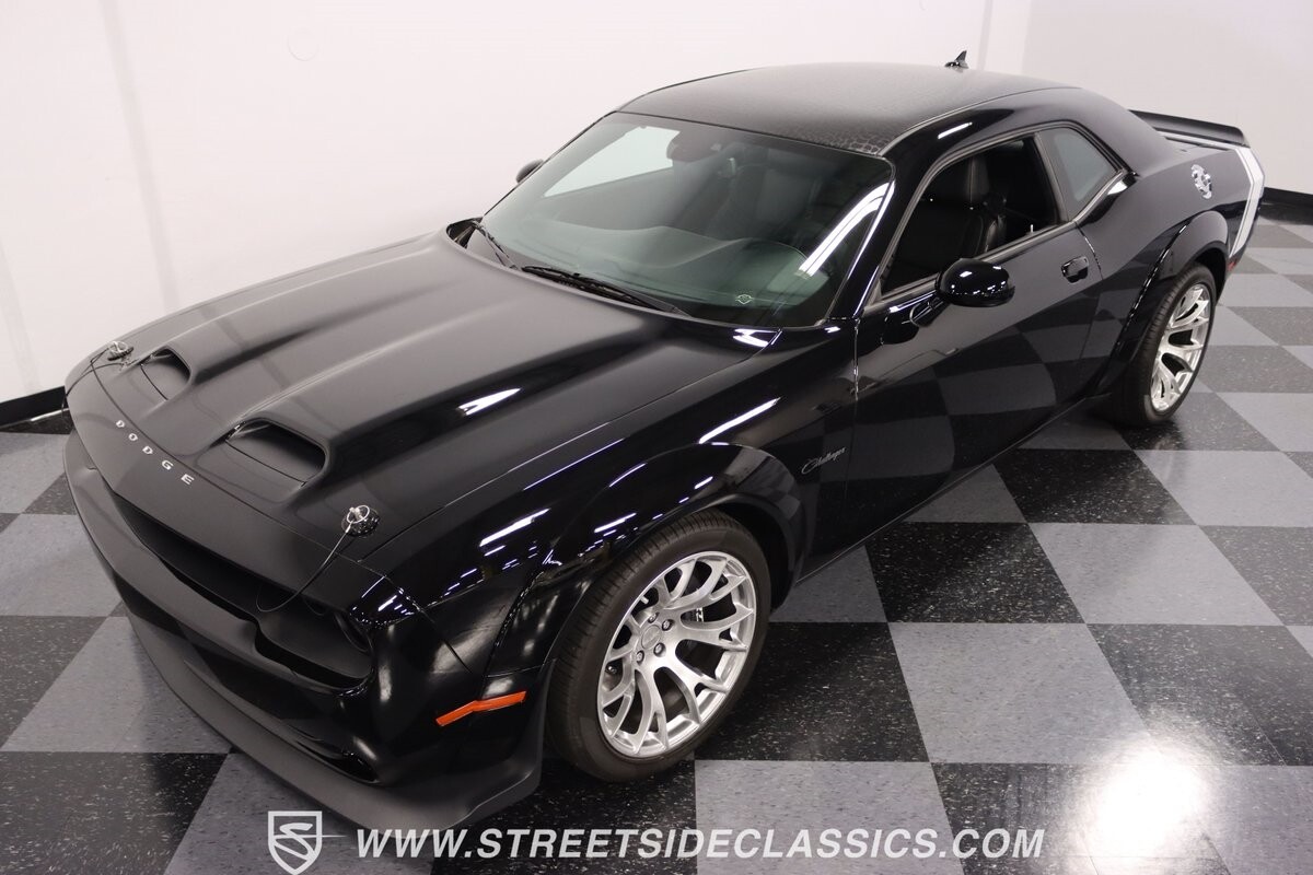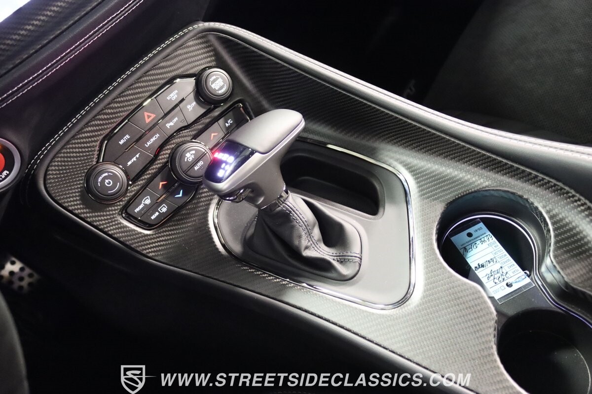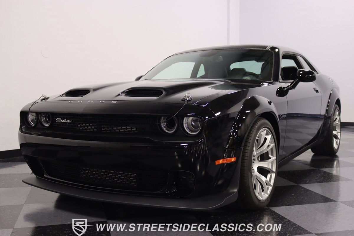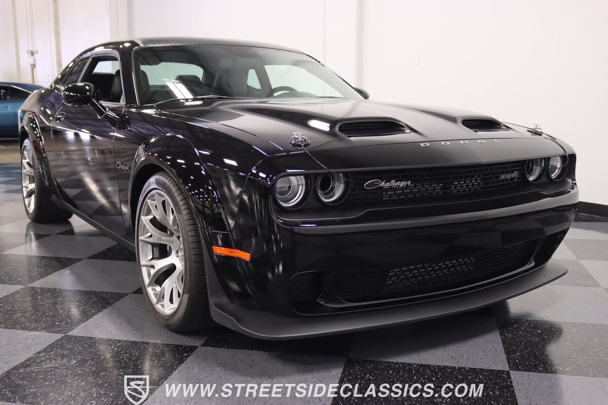 Whisper its name, and car enthusiasts everywhere feel a chill - the 1970 Dodge Challenger "Black Ghost," a legend that once haunted Detroit's streets. Echoing the legend of the original Black Ghost, this 2023 Dodge Challenger SRT Hellcat Redeye Last Call Black Ghost is a modern marvel cloaked in Pitch Black with a distinctive roof pattern that mimics the vinyl roof of the original '70 model. While the final count remains to be seen, Dodge initially announced that only 300 Black Ghosts where going to be produced for MY23, making this one, with only 27 actual miles on the odometer, a piece of automotive history. The aggressive stance features functional hood scoops, a chin spoiler, a rear spoiler, the iconic hood pins and is further enhanced by the Redeye Widebody Kit's fender flares. The SRT Brembo brakes, chrome gas cap, and tinted windows add to its mystique, while the 20-inch rims shod with fresh Pirelli tires assert its readiness to conquer the streets.