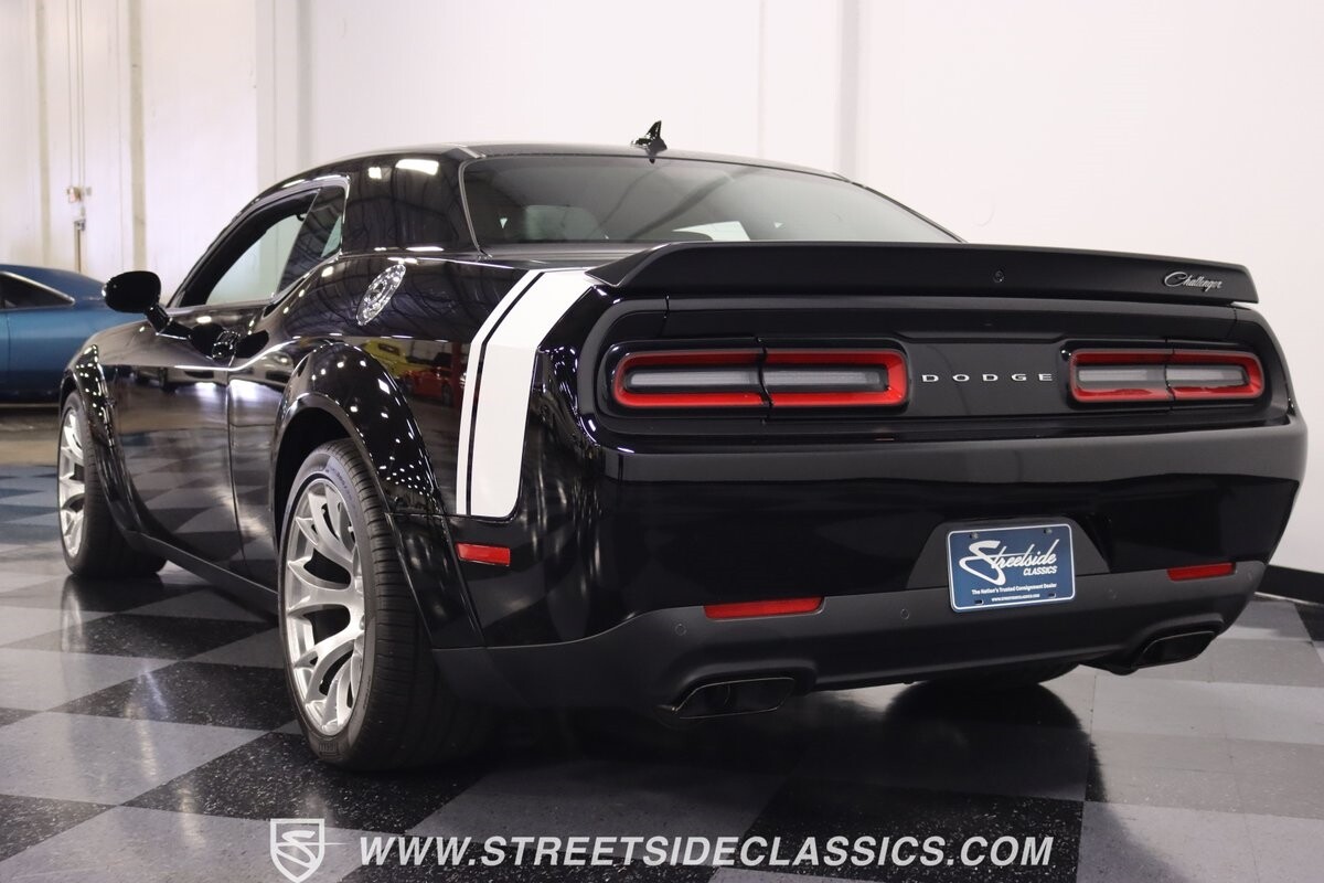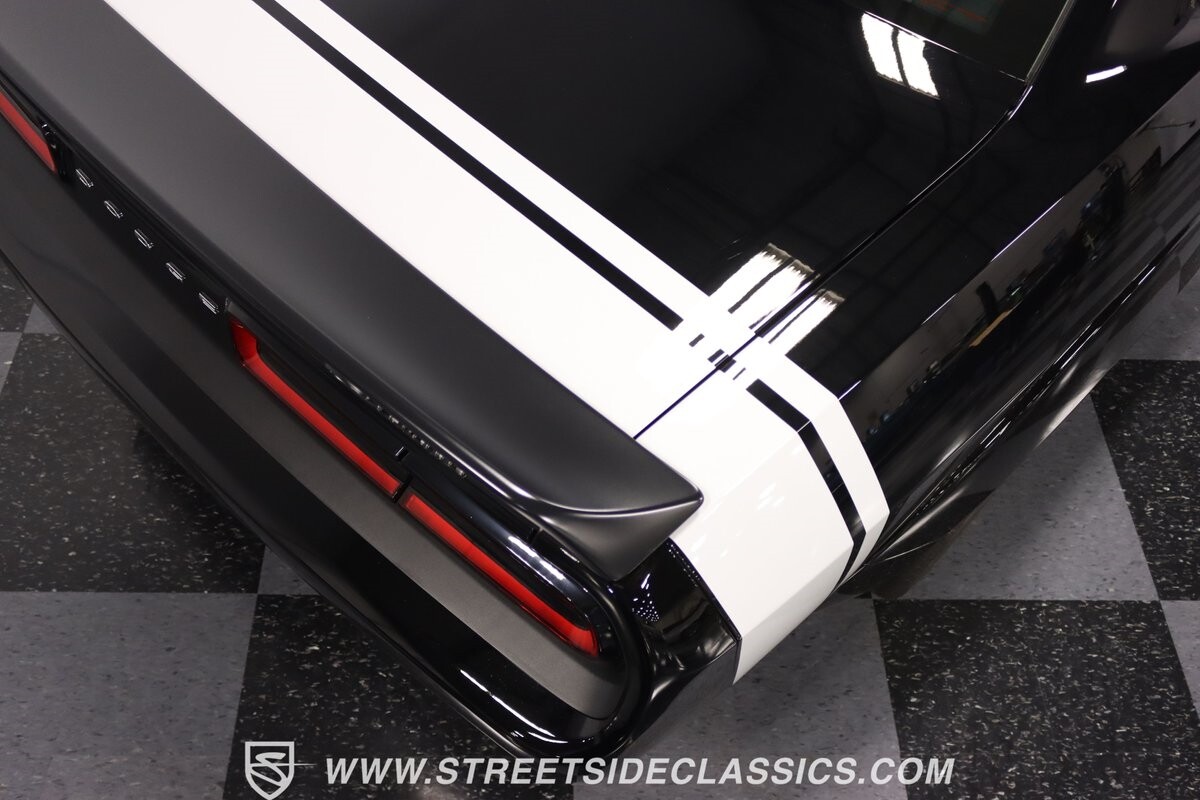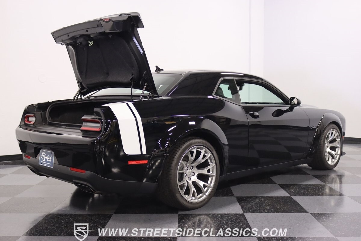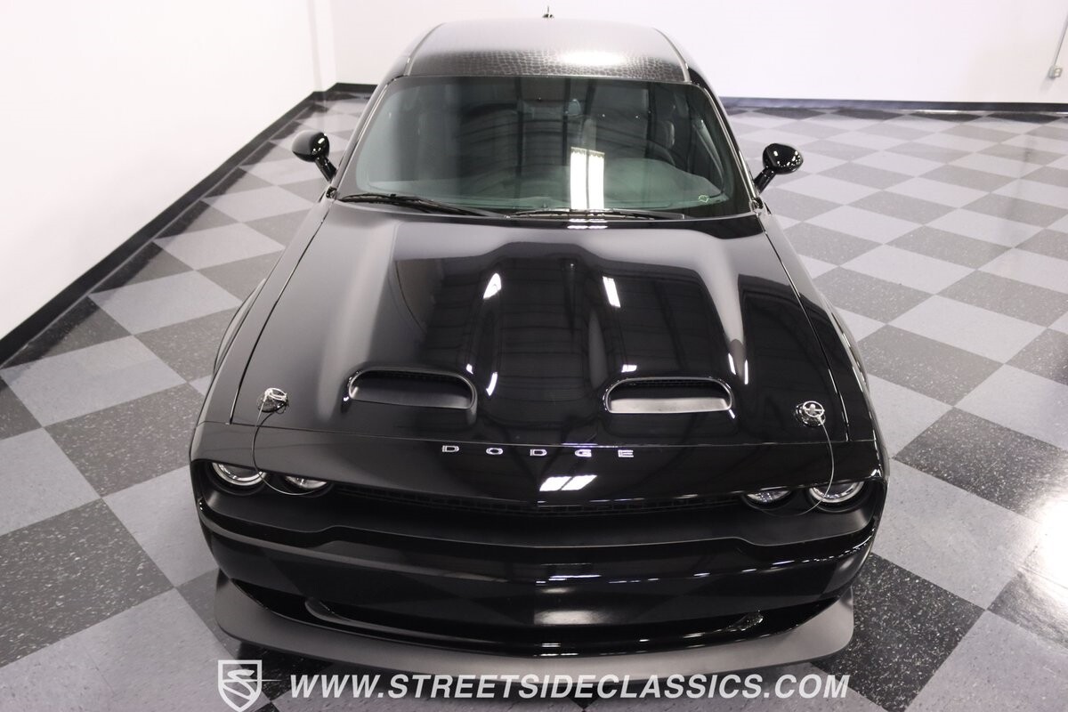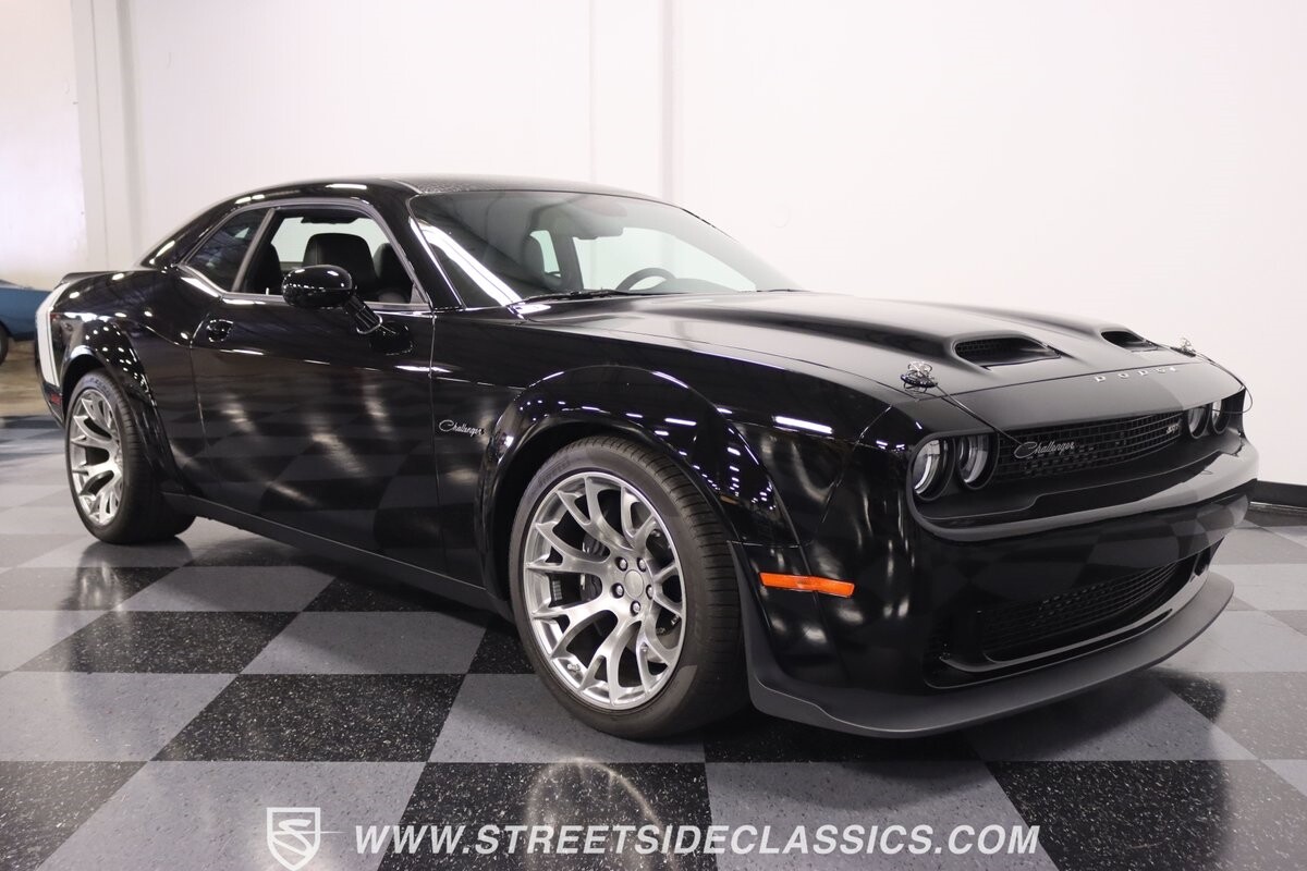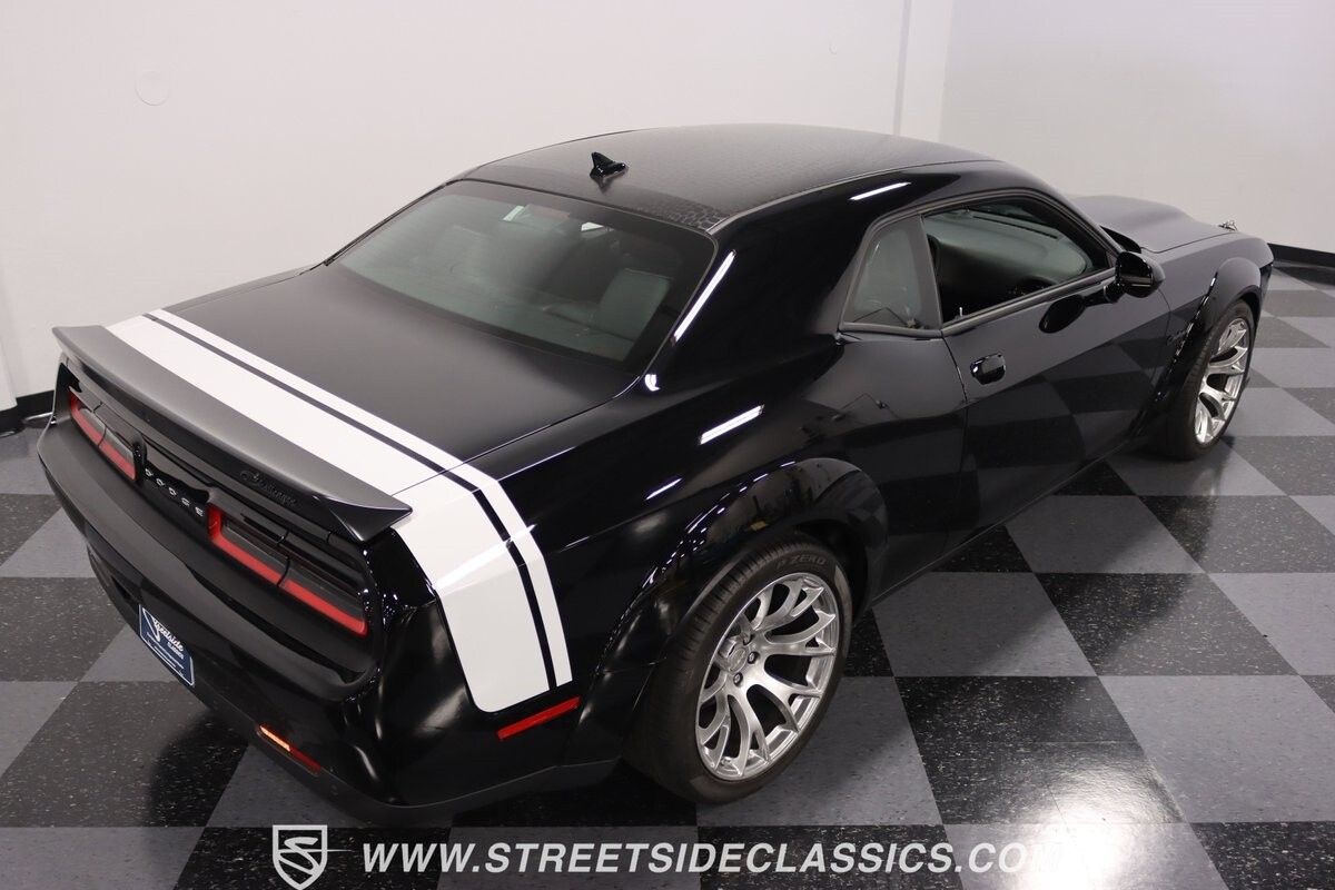 Whisper its name, and car enthusiasts everywhere feel a chill - the 1970 Dodge Challenger "Black Ghost," a legend that once haunted Detroit's streets. Echoing the legend of the original Black Ghost, this 2023 Dodge Challenger SRT Hellcat Redeye Last Call Black Ghost is a modern marvel cloaked in Pitch Black with a distinctive roof pattern that mimics the vinyl roof of the original '70 model. While the final count remains to be seen, Dodge initially announced that only 300 Black Ghosts where going to be produced for MY23, making this one, with only 27 actual miles on the odometer, a piece of automotive history. The aggressive stance features functional hood scoops, a chin spoiler, a rear spoiler, the iconic hood pins and is further enhanced by the Redeye Widebody Kit's fender flares. The SRT Brembo brakes, chrome gas cap, and tinted windows add to its mystique, while the 20-inch rims shod with fresh Pirelli tires assert its readiness to conquer the streets.