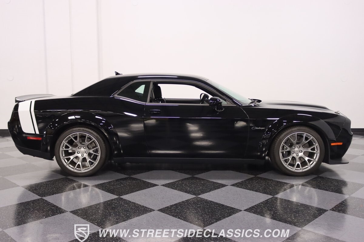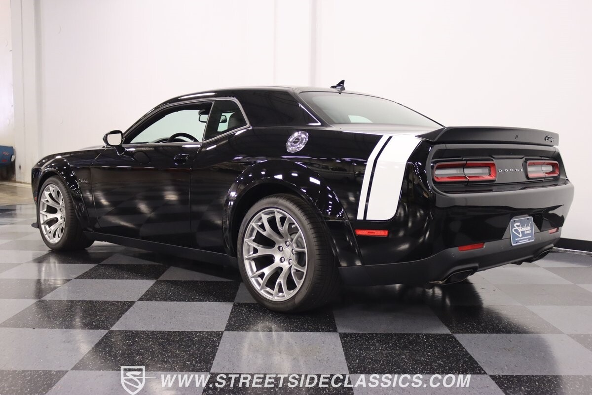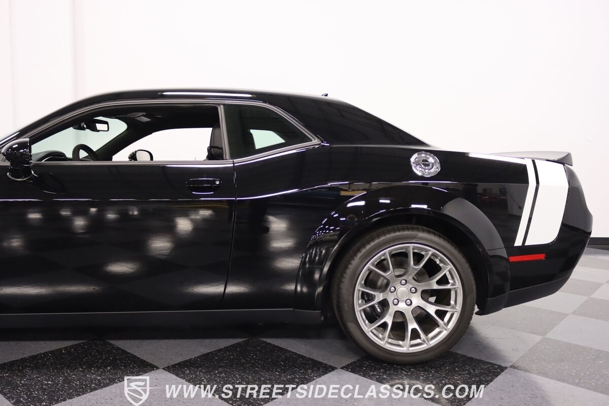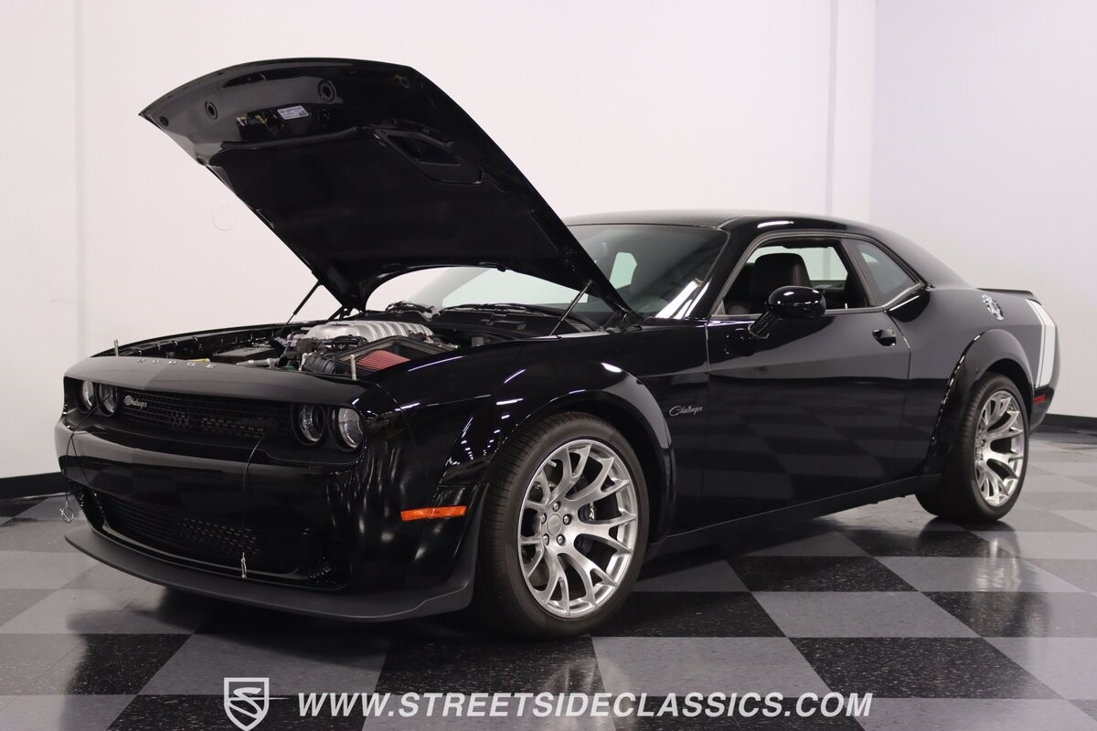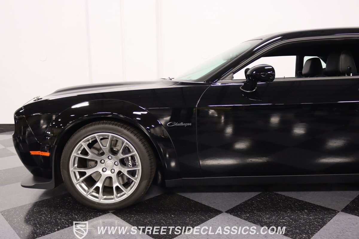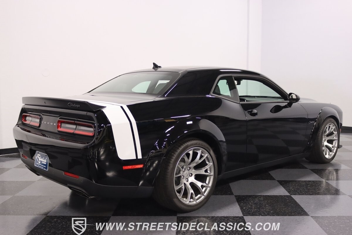 Whisper its name, and car enthusiasts everywhere feel a chill - the 1970 Dodge Challenger "Black Ghost," a legend that once haunted Detroit's streets. Echoing the legend of the original Black Ghost, this 2023 Dodge Challenger SRT Hellcat Redeye Last Call Black Ghost is a modern marvel cloaked in Pitch Black with a distinctive roof pattern that mimics the vinyl roof of the original '70 model. While the final count remains to be seen, Dodge initially announced that only 300 Black Ghosts where going to be produced for MY23, making this one, with only 27 actual miles on the odometer, a piece of automotive history. The aggressive stance features functional hood scoops, a chin spoiler, a rear spoiler, the iconic hood pins and is further enhanced by the Redeye Widebody Kit's fender flares. The SRT Brembo brakes, chrome gas cap, and tinted windows add to its mystique, while the 20-inch rims shod with fresh Pirelli tires assert its readiness to conquer the streets.