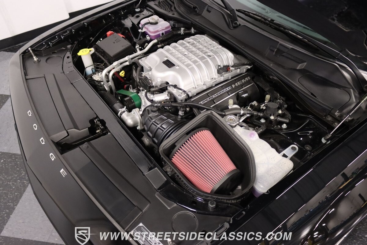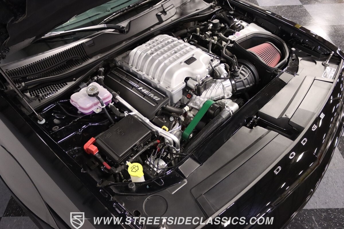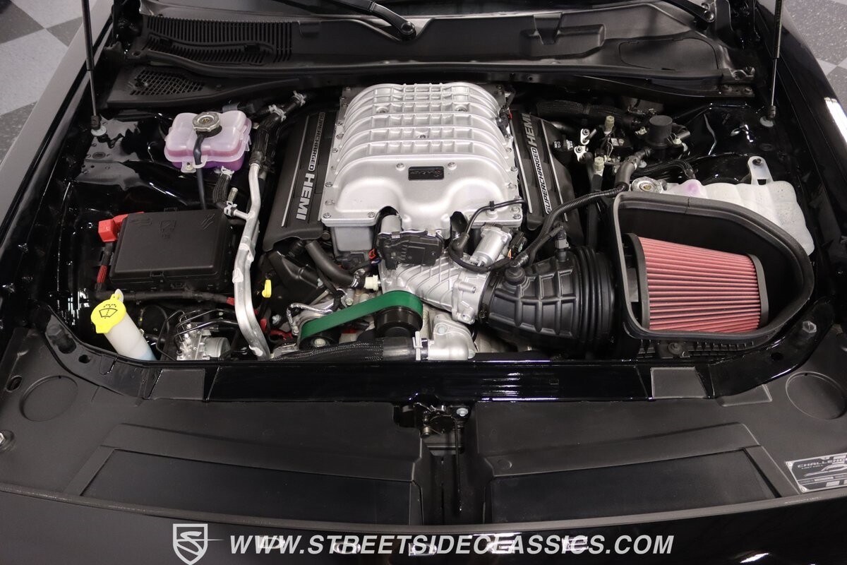 Under the hood of this 2023 SRT Hellcat lies a 6.2L Supercharged HEMI V8, enhanced to unleash 807 hp. Paired with an 8-speed automatic transmission, it delivers a seamless surge of power reminiscent of the untamed spirit of Detroit's golden era of muscle cars. The mechanical symphony doesn't end there. The strut suspension with a sway bar at the front and a coil spring, shock, and sway bar at the rear ensure a poised and responsive ride, with performance brakes at both ends. From the electronic fuel injection system to the meticulously calibrated transmission, it stands as a tribute to the legacy of the original street racer.